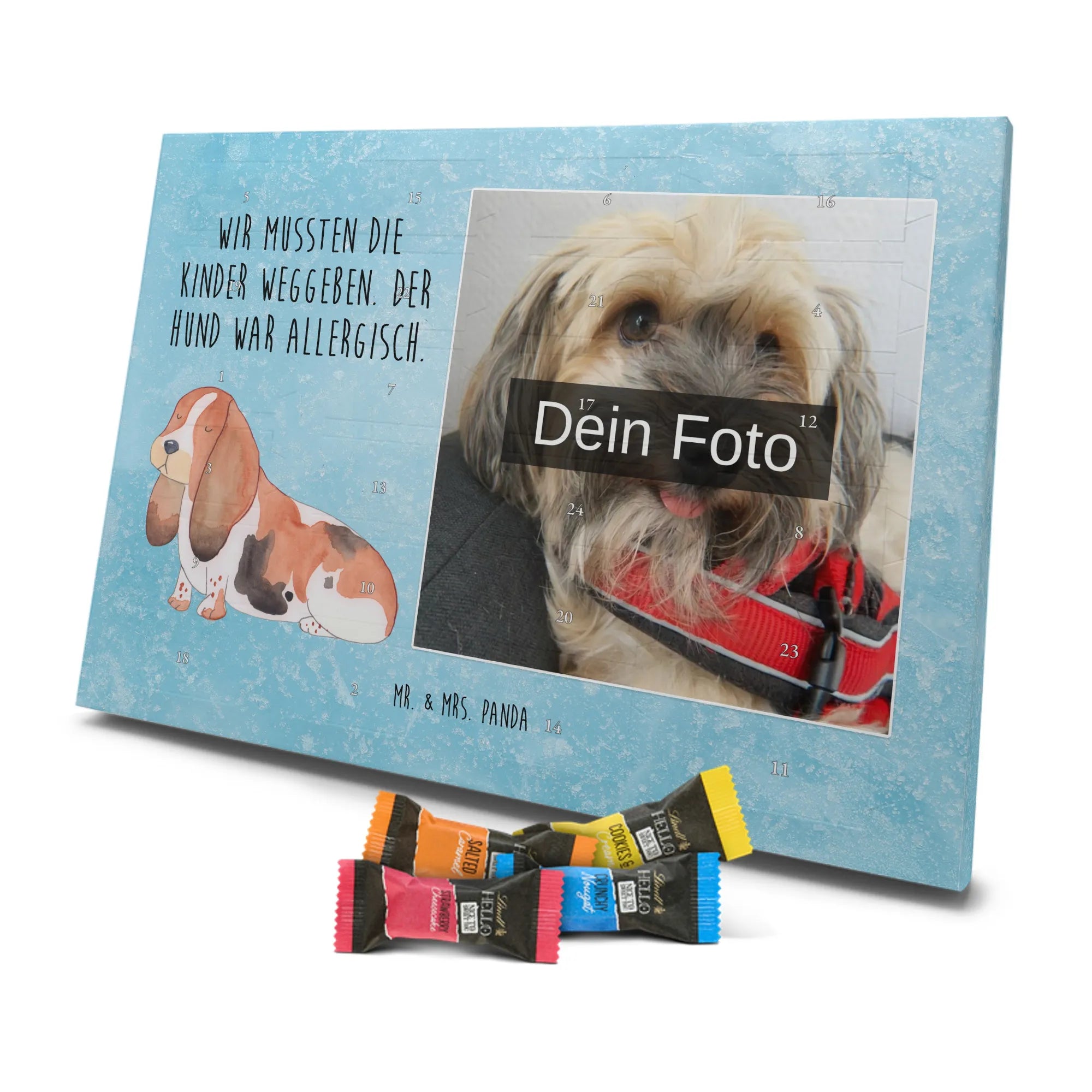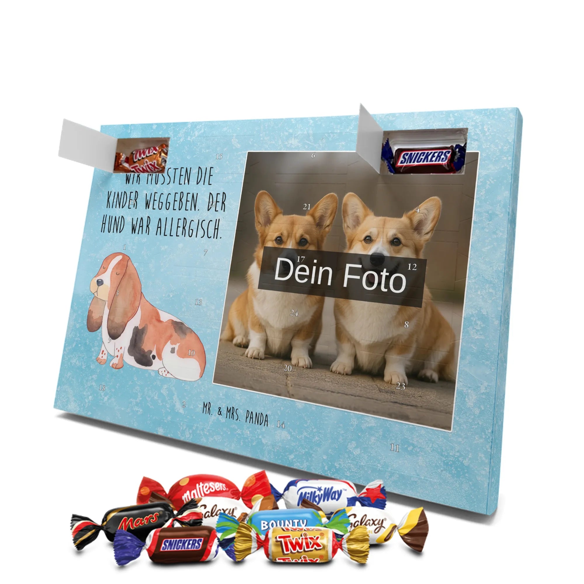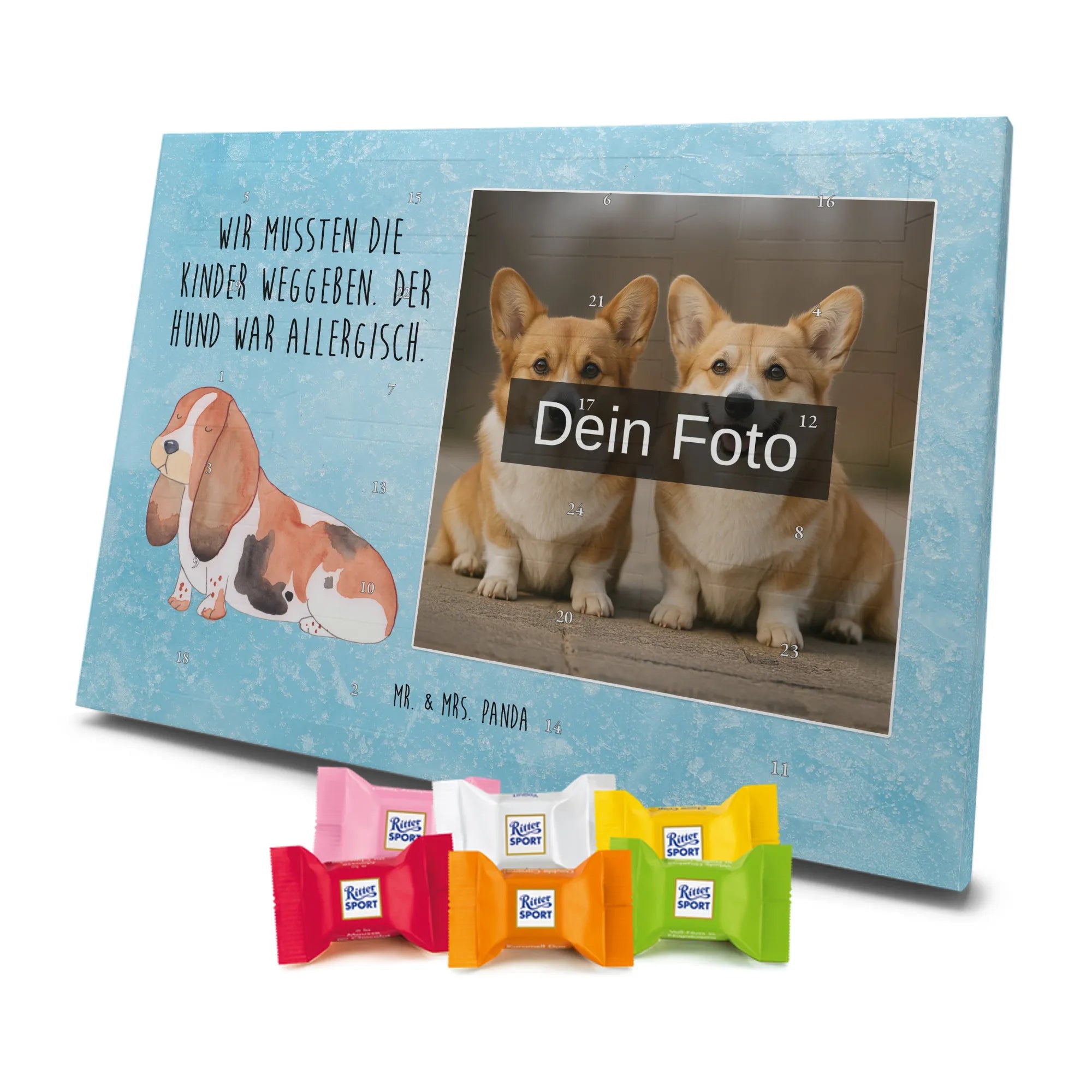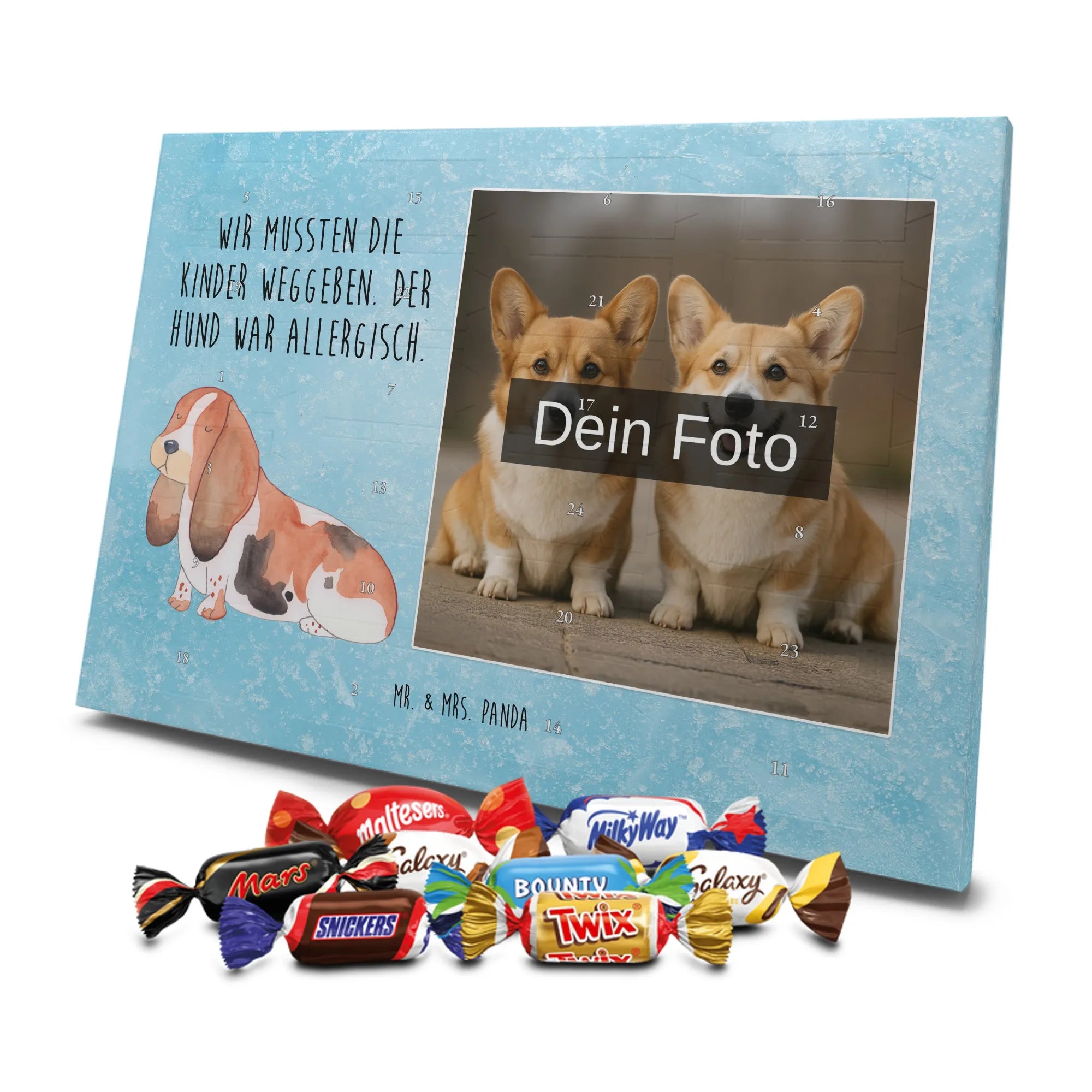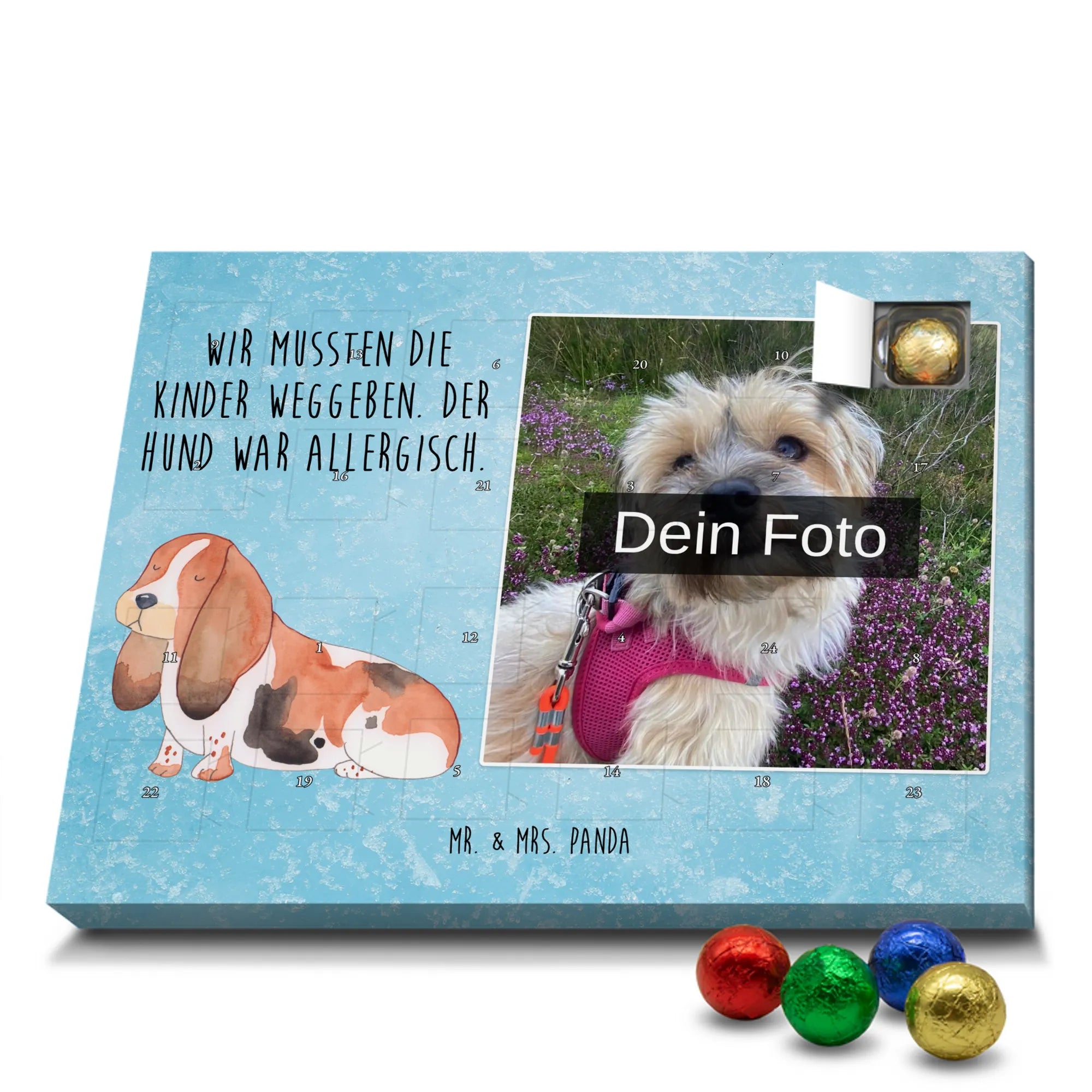 Personalisierter Schoko Foto Adventskalender Hund Basset Hound - Classic - Eisblau