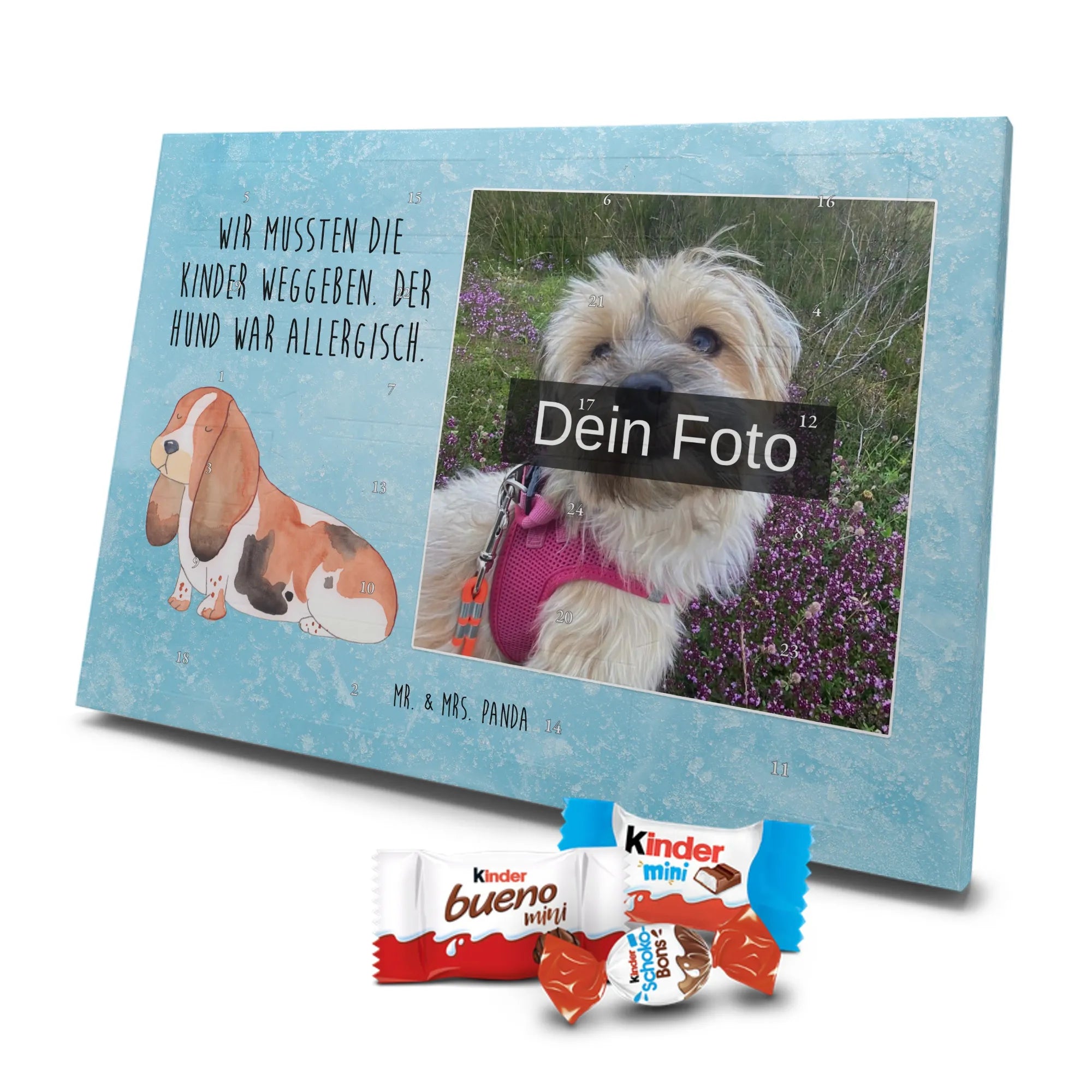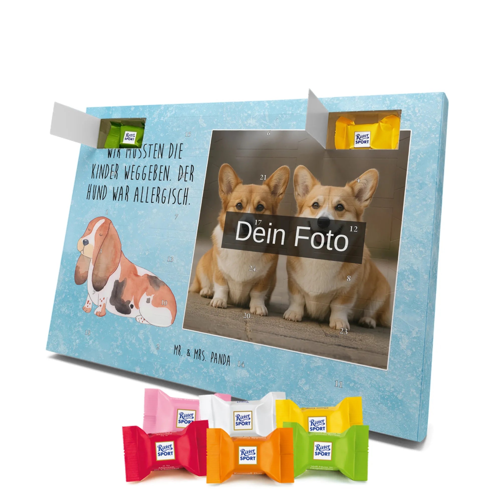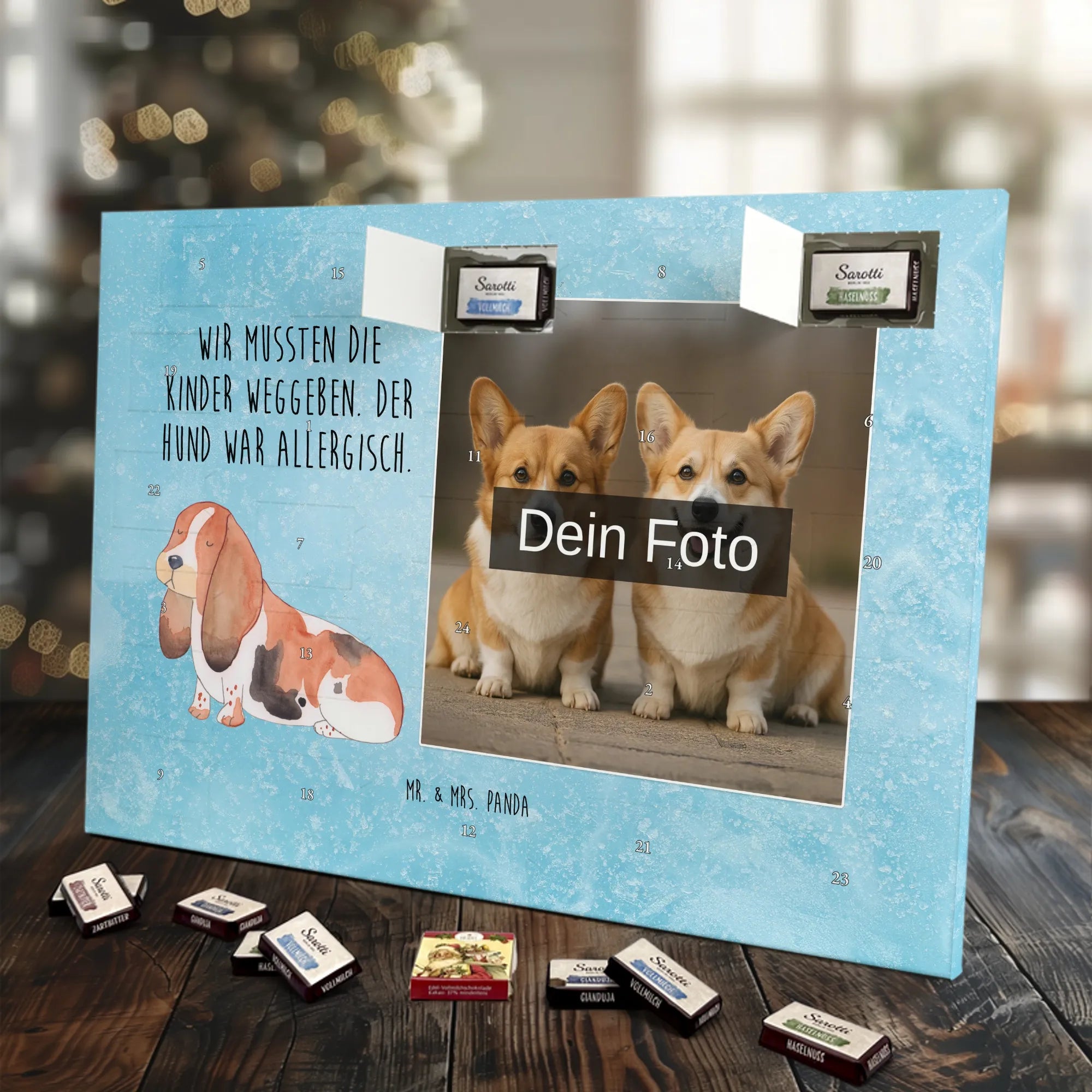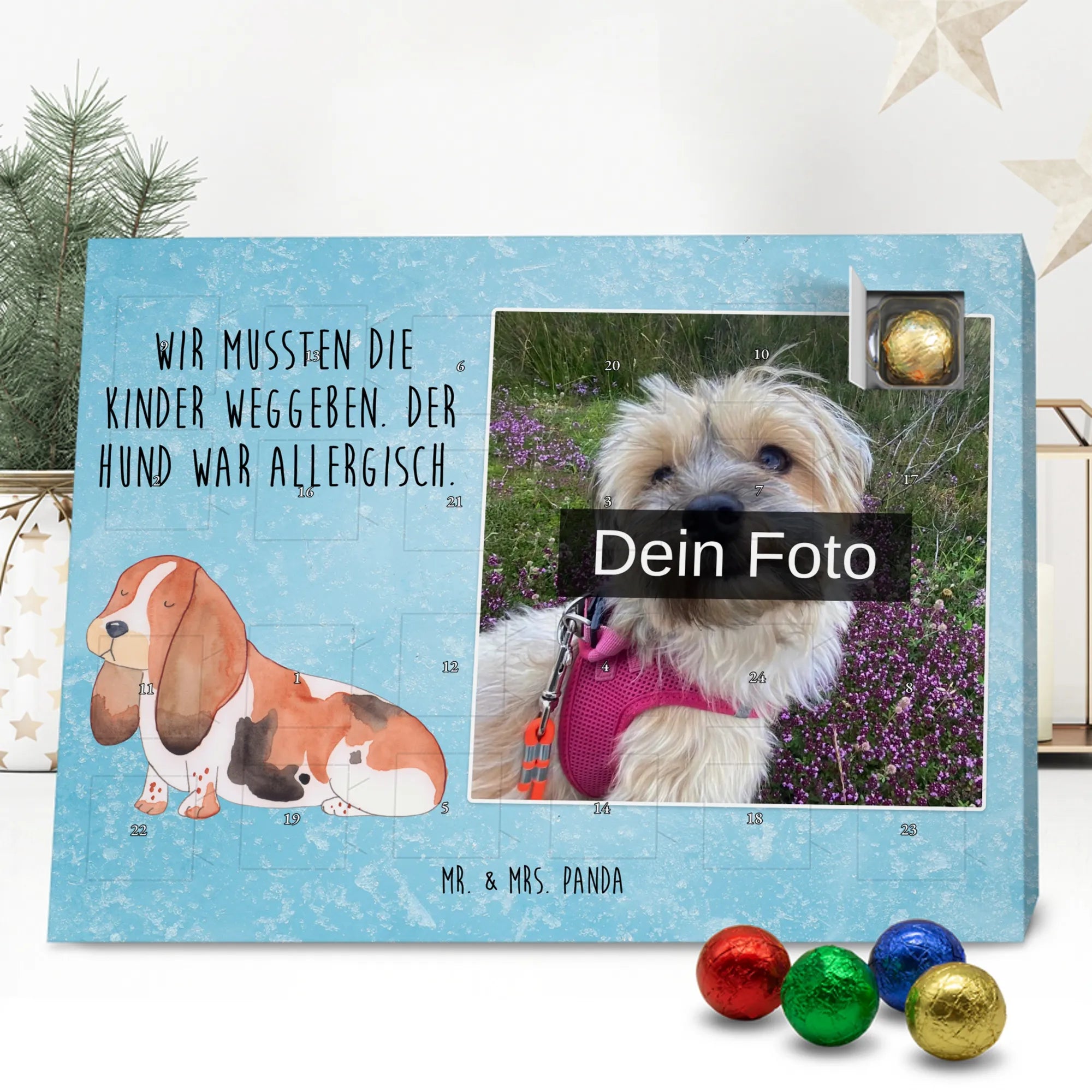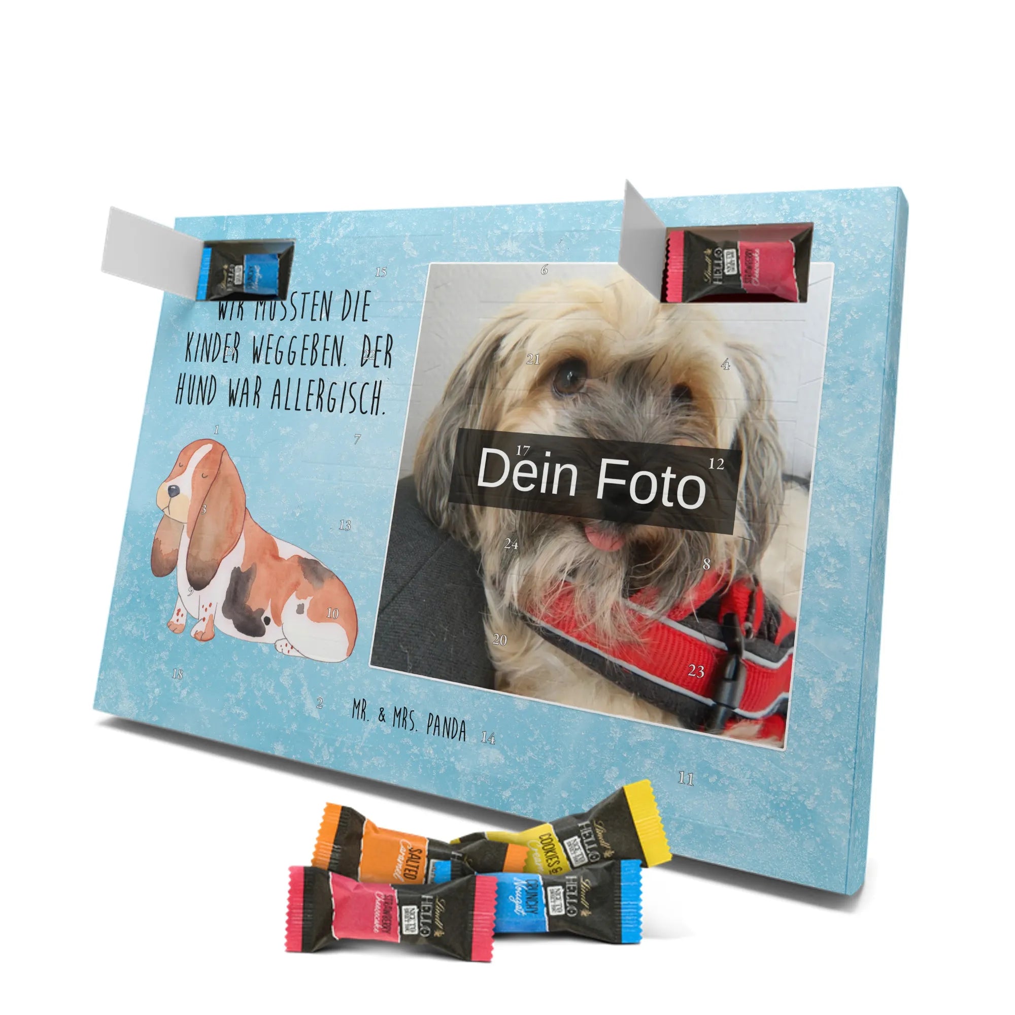 Personalisierter Schoko Foto Adventskalender Hund Basset Hound - Classic - Eisblau