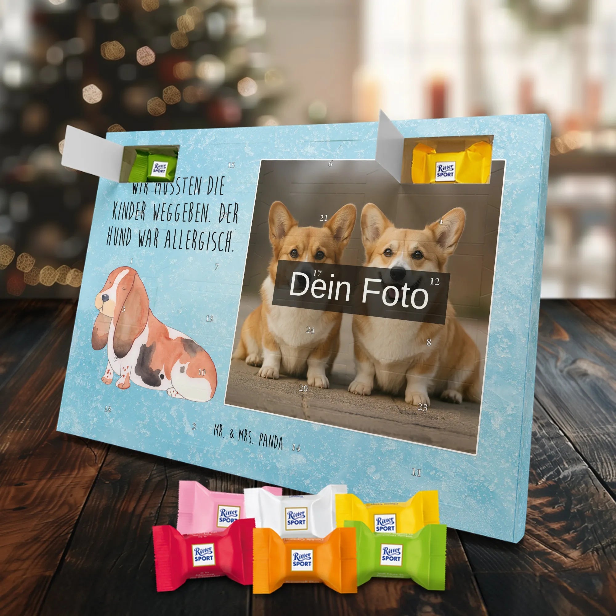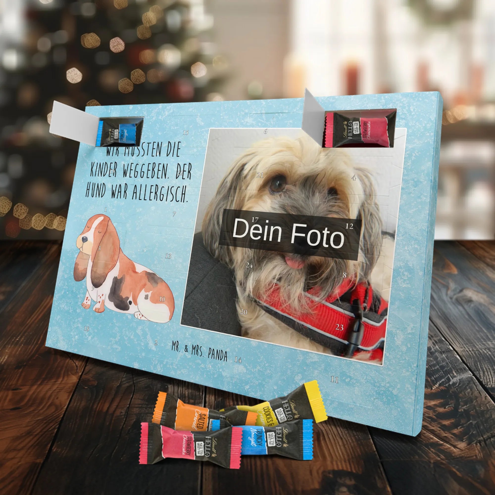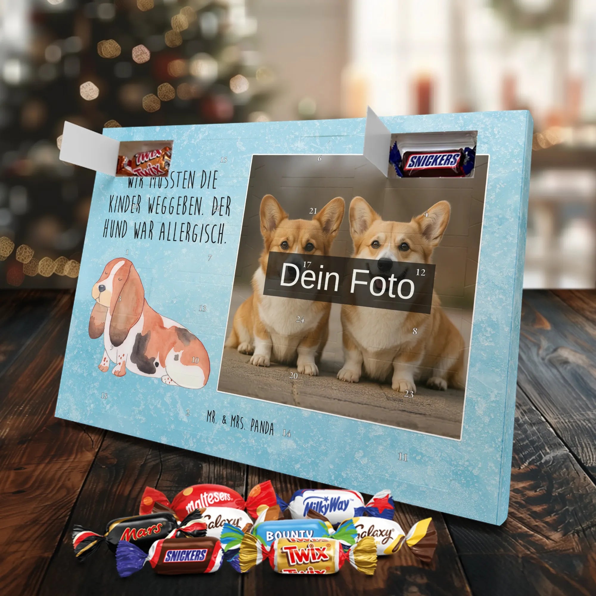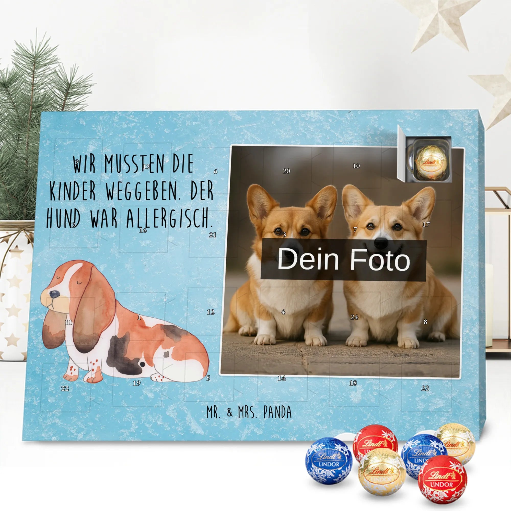 Personalisierter Schoko Foto Adventskalender Hund Basset Hound - Classic - Eisblau