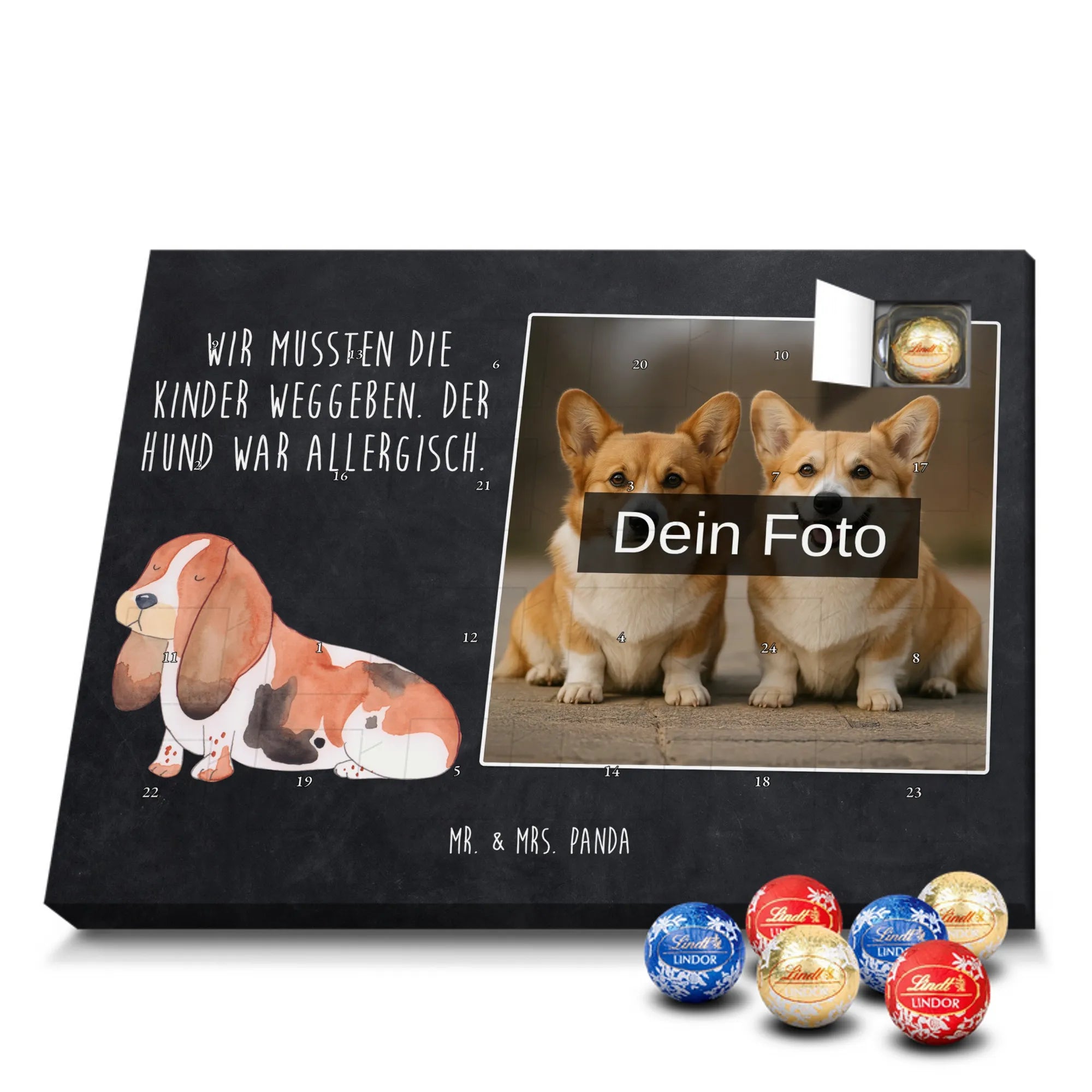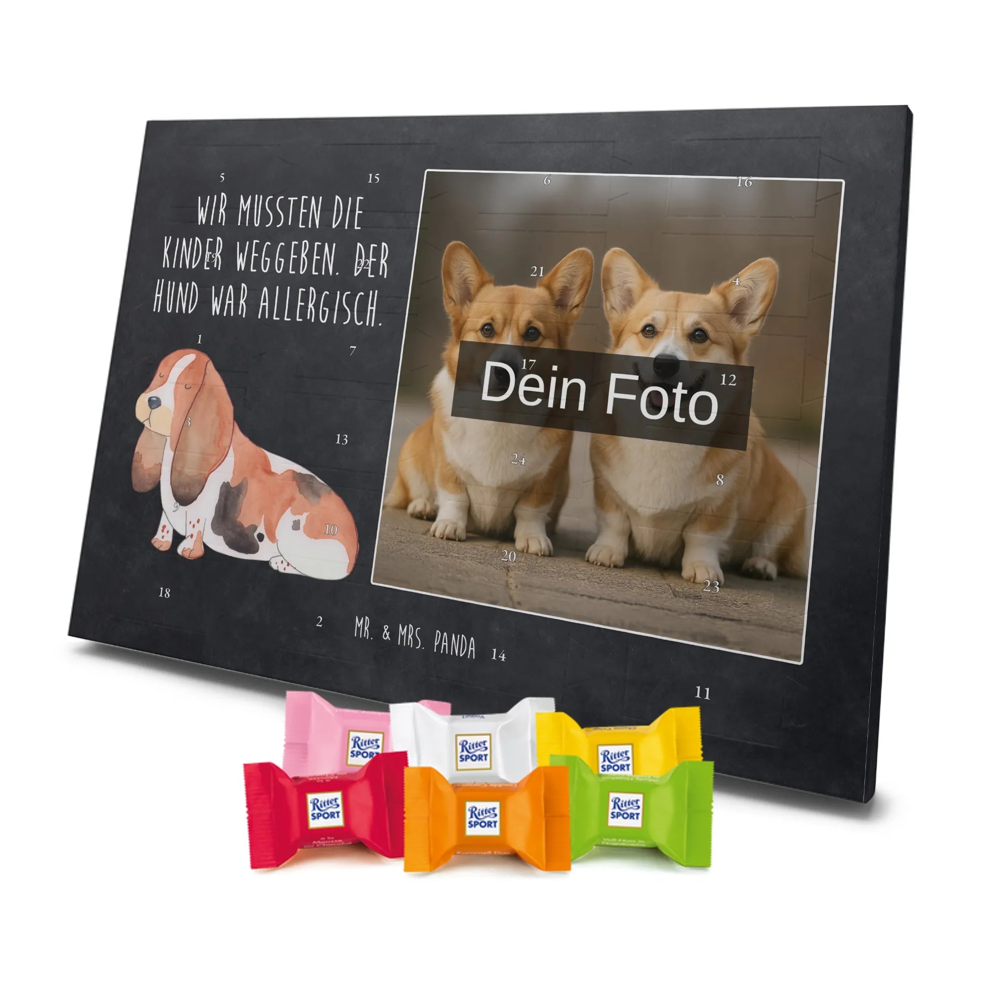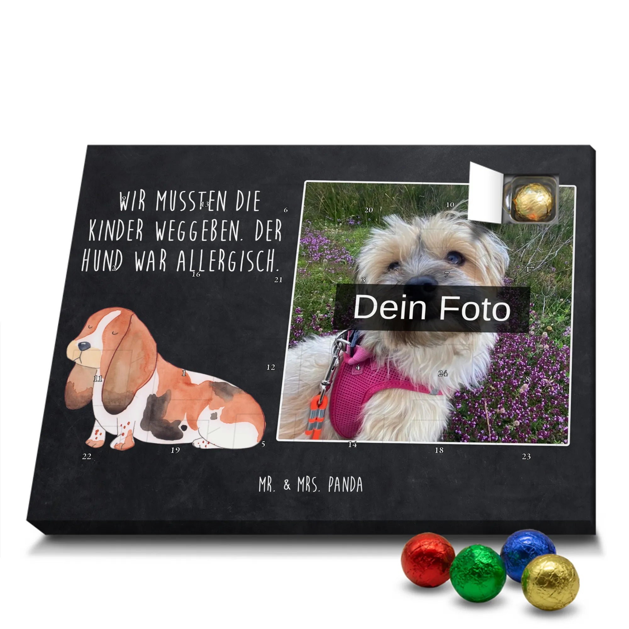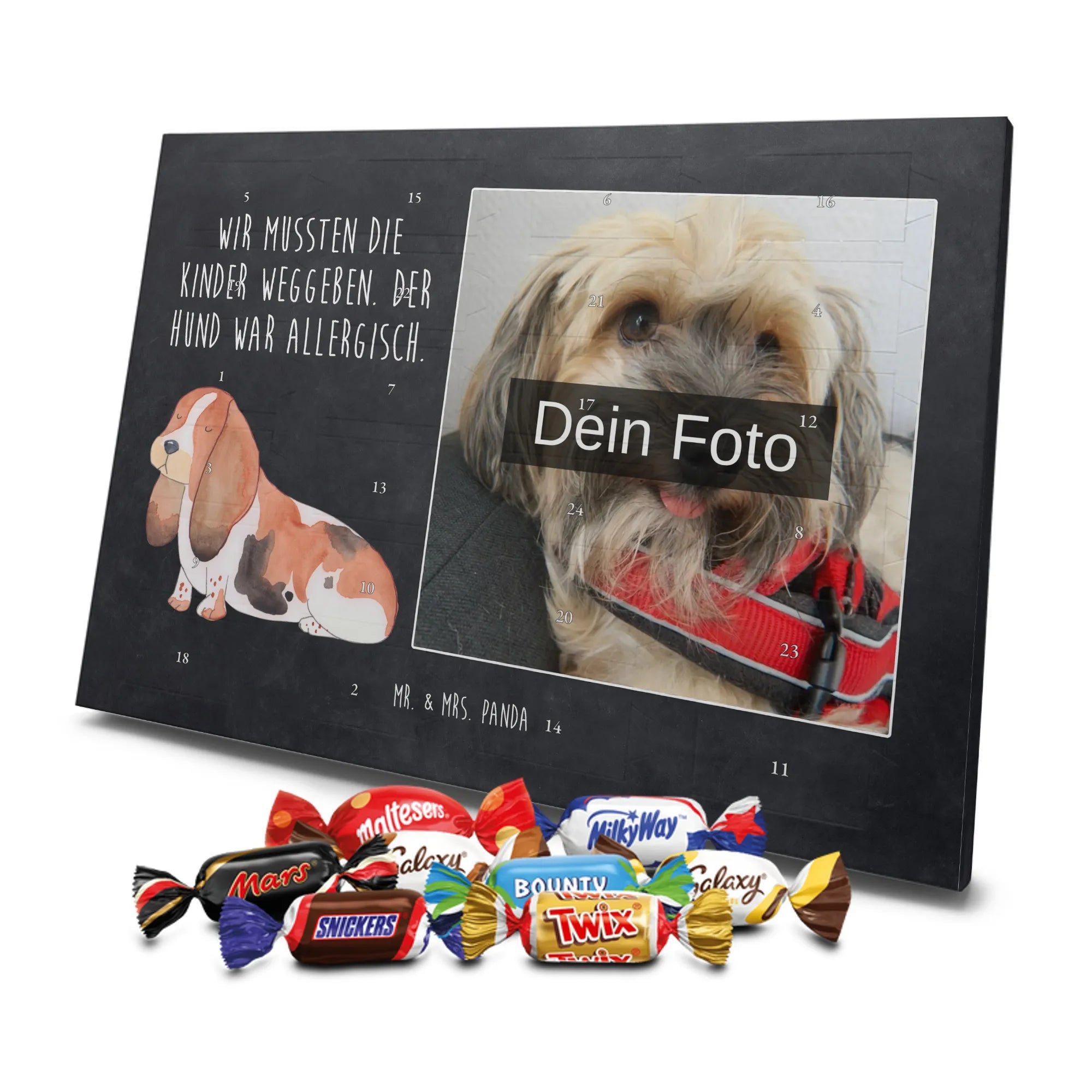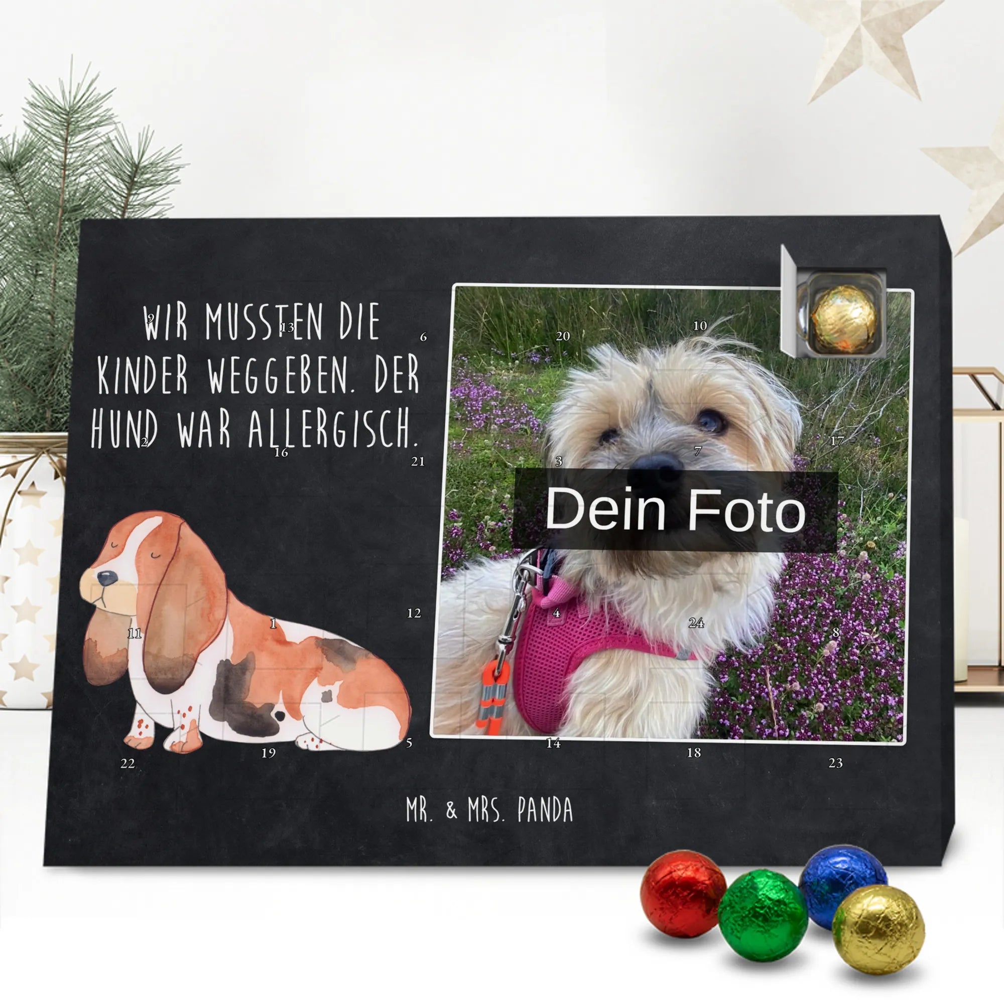 Personalisierter Schoko Foto Adventskalender Hund Basset Hound - Classic - Eisblau