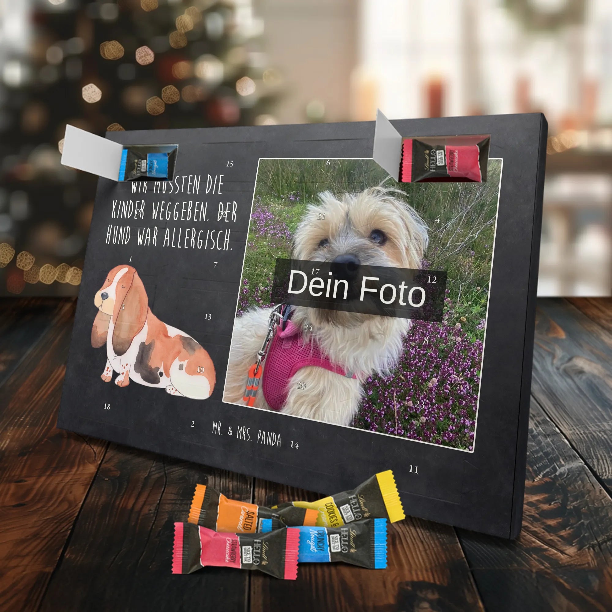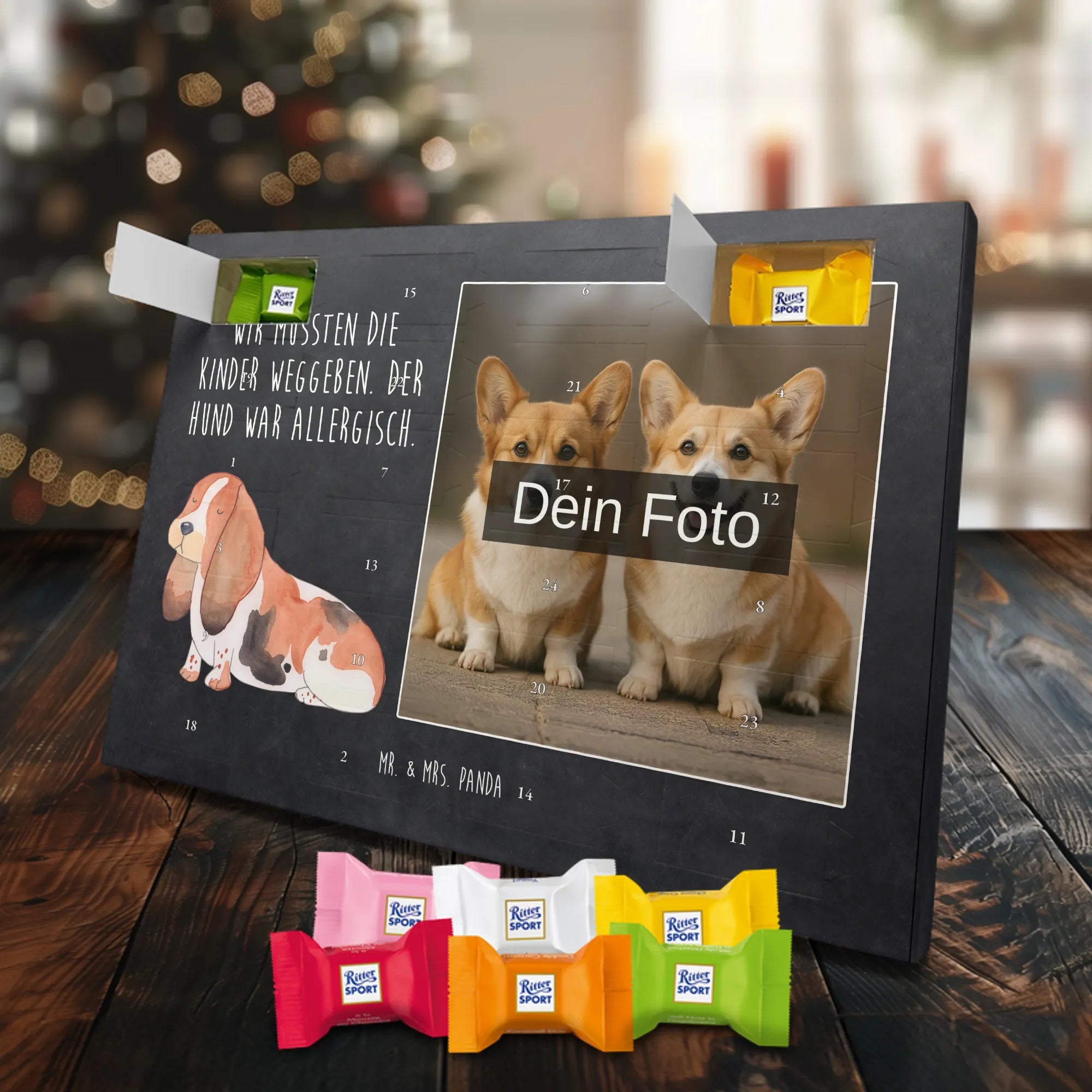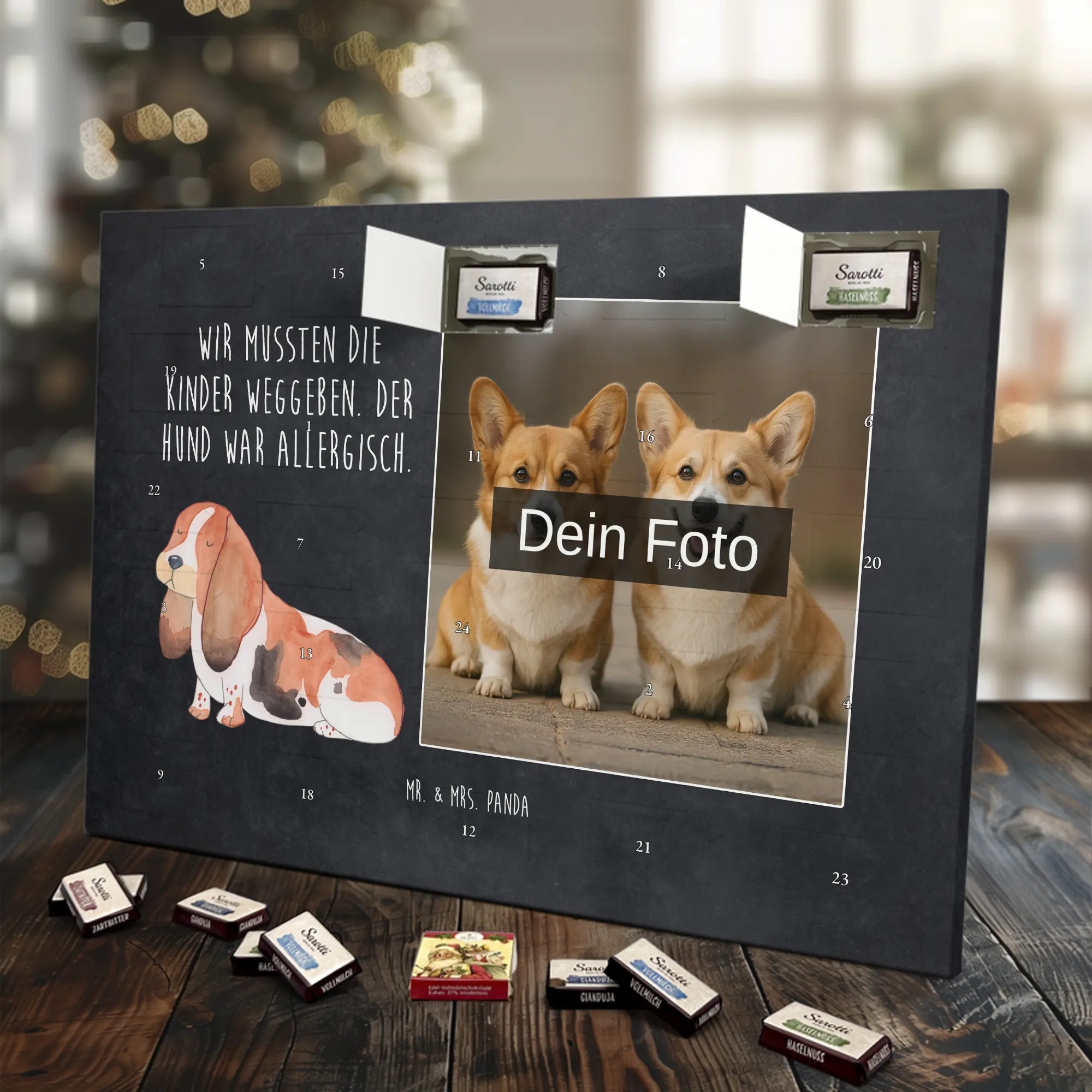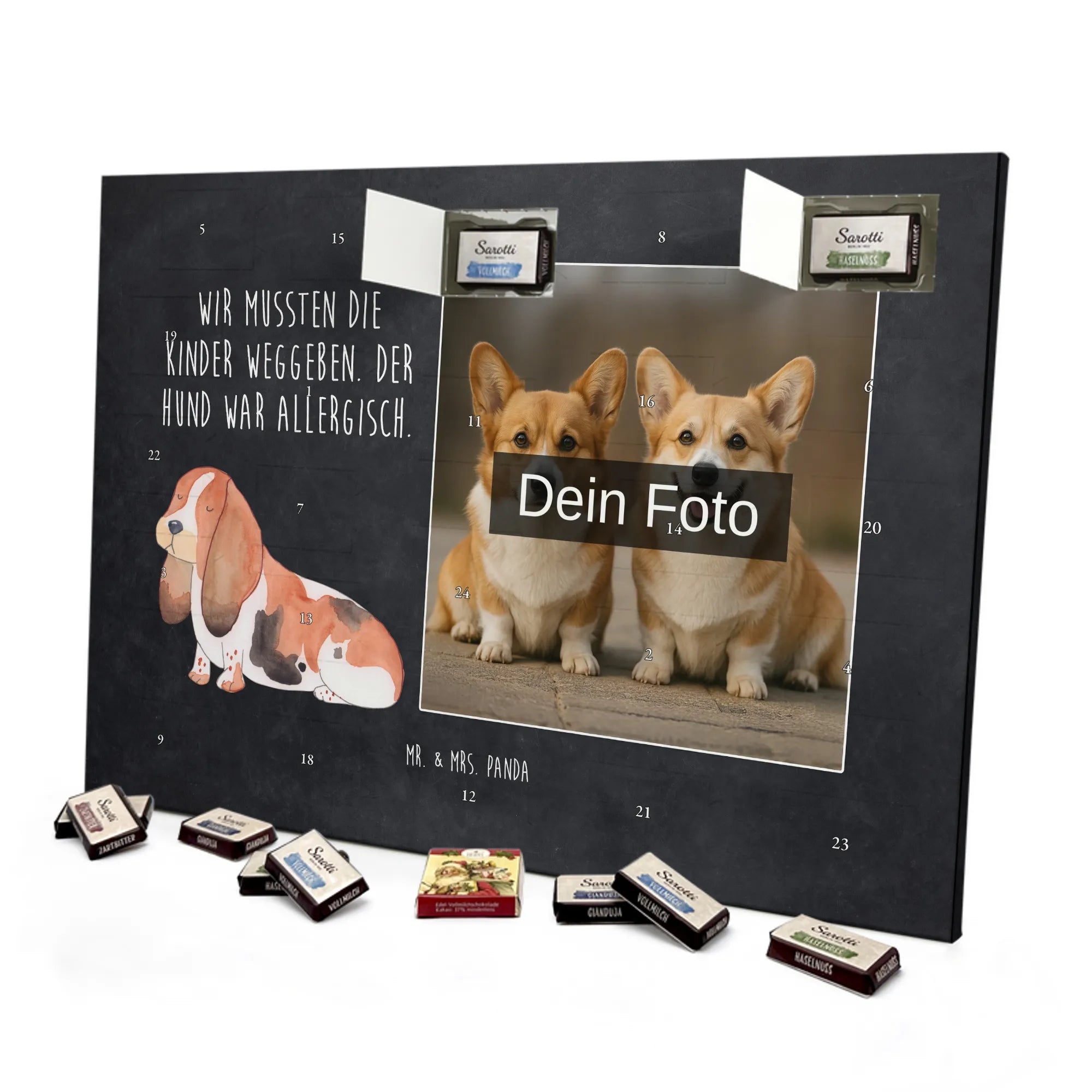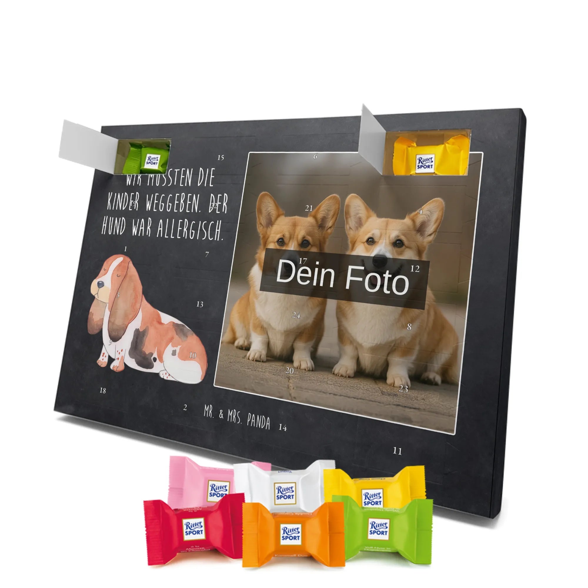Personalisierter Schoko Foto Adventskalender Hund Basset Hound - Classic - Eisblau