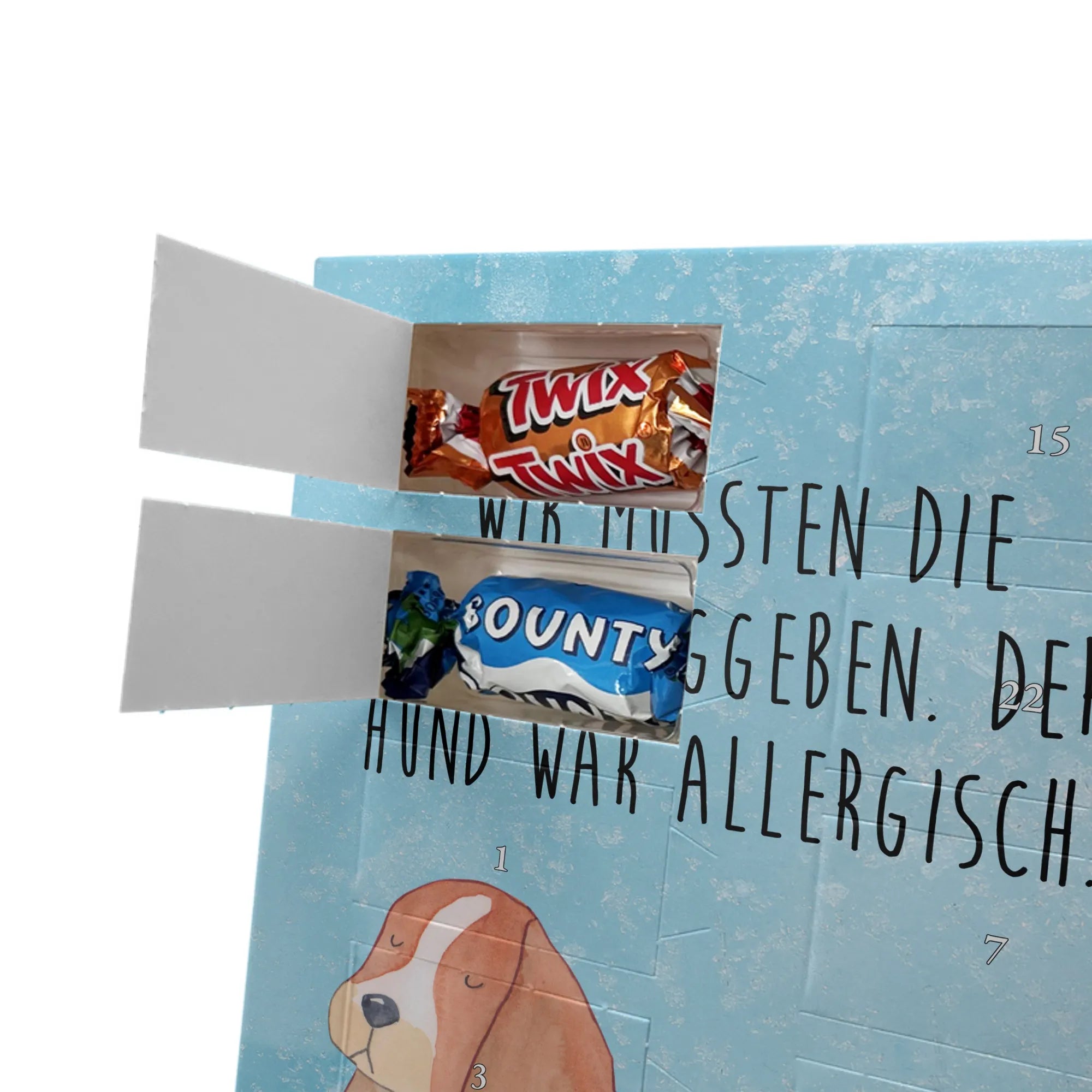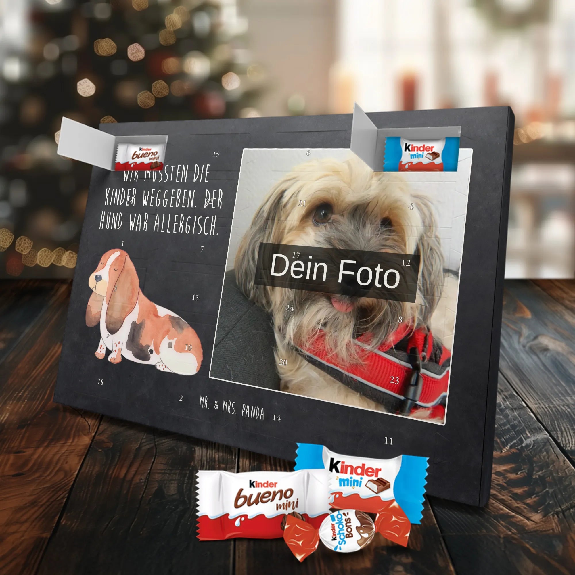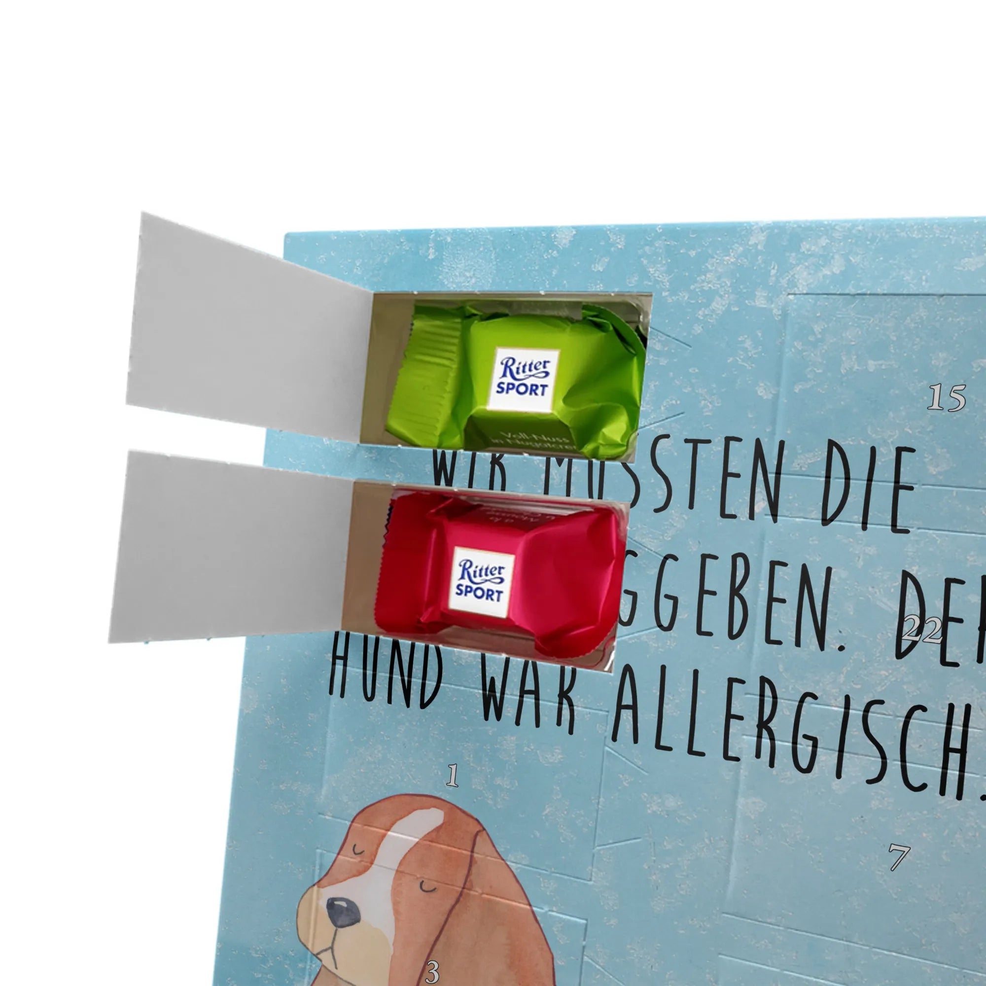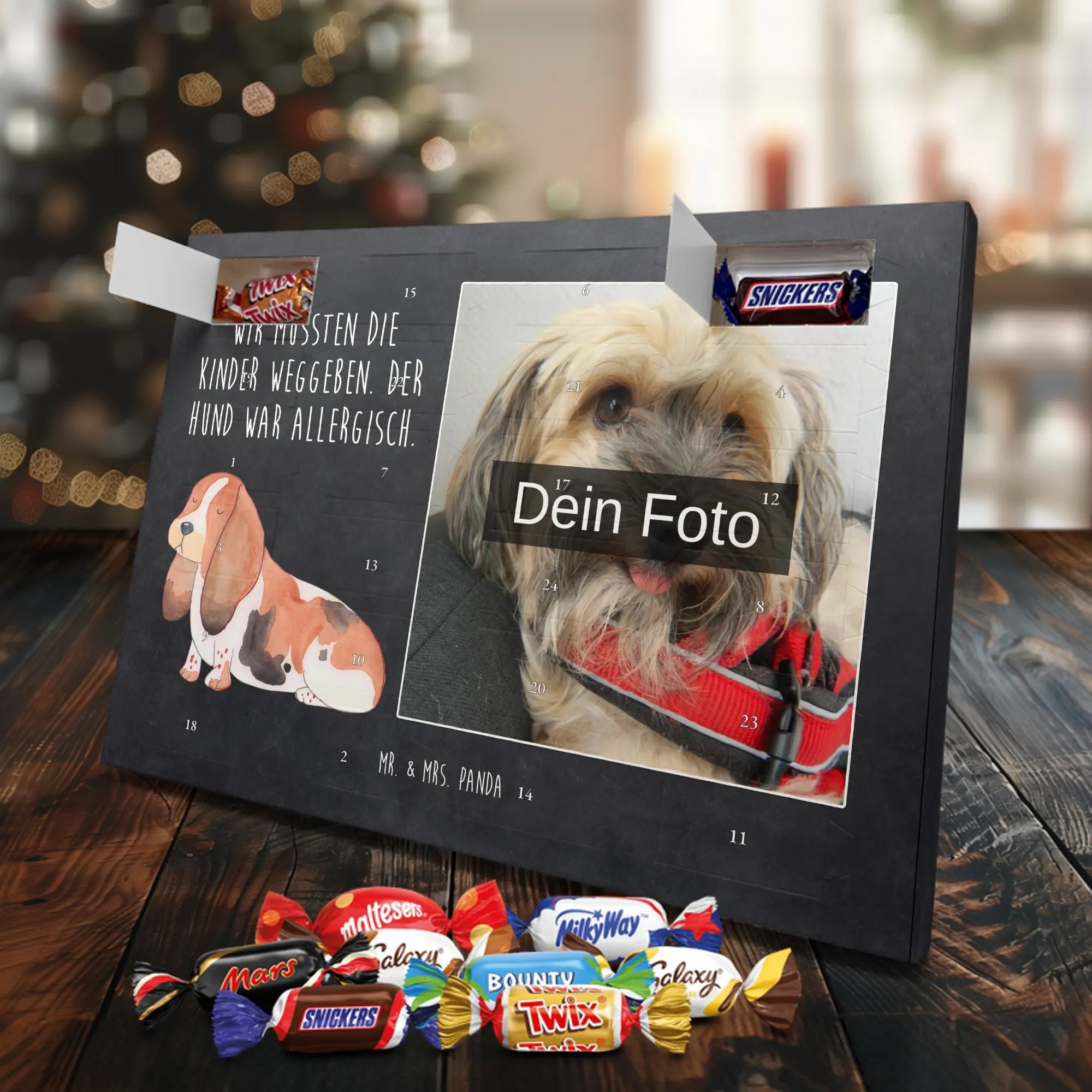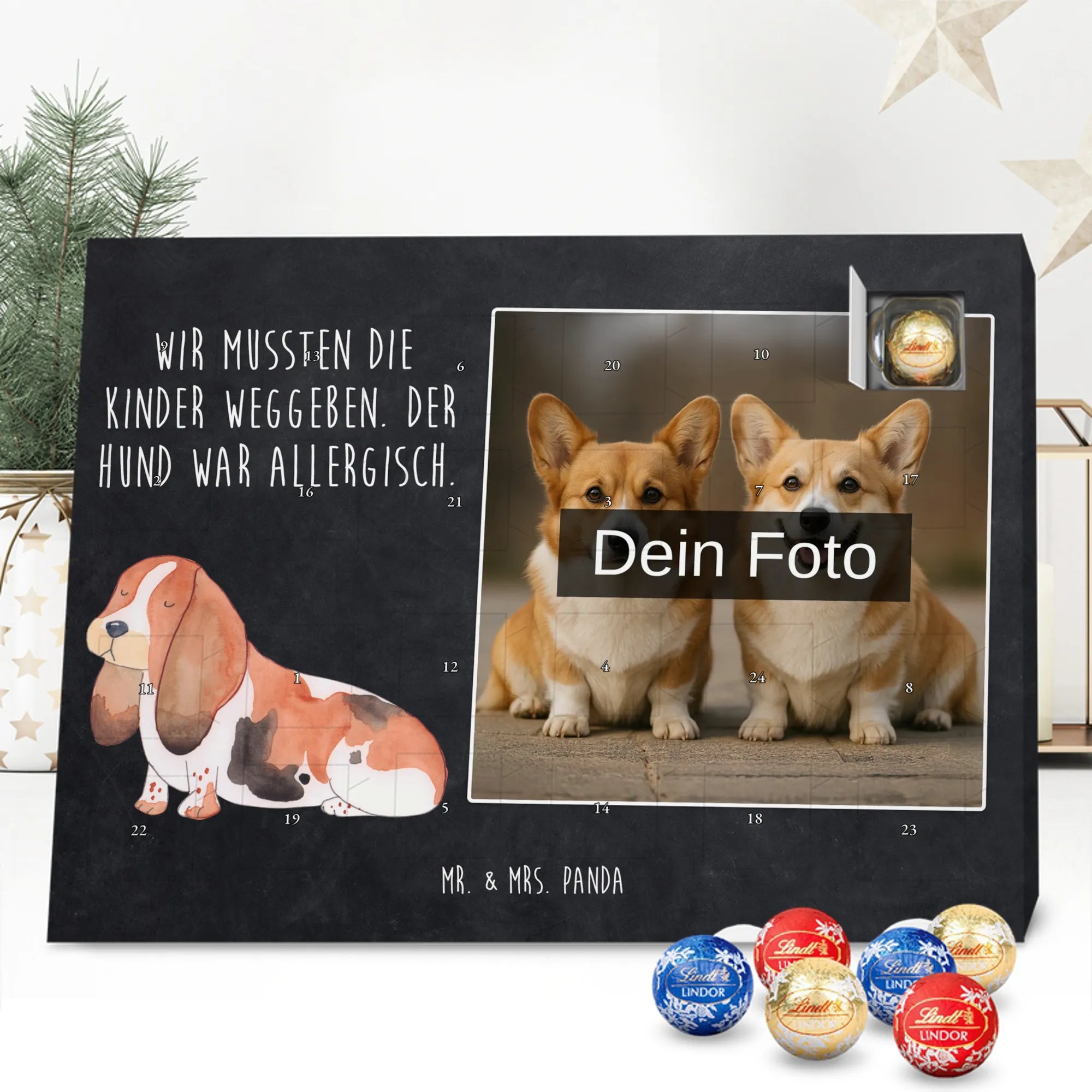 Personalisierter Schoko Foto Adventskalender Hund Basset Hound - Classic - Eisblau