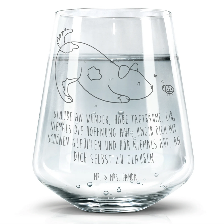 Das Trinkglas mit dem zauberhaften Motiv Hund Marienkäfer aus der Hunde Kollektion von Mr. & Mrs. Panda ist das perfekte Geschenk für jeden Tierliebhaber und Hundebesitzer. Es vereint hochwertige Materialien mit einem liebevoll gestalteten Design.