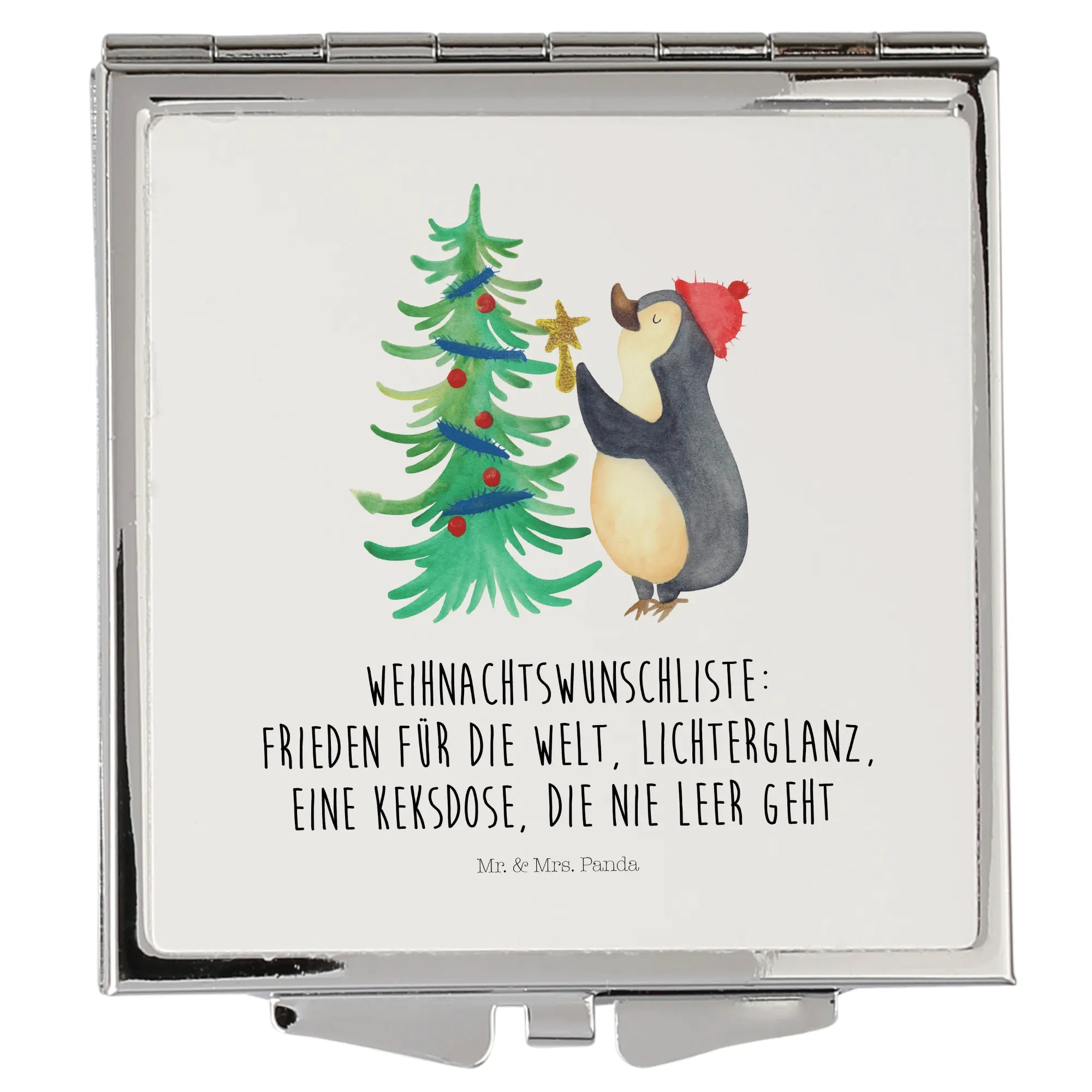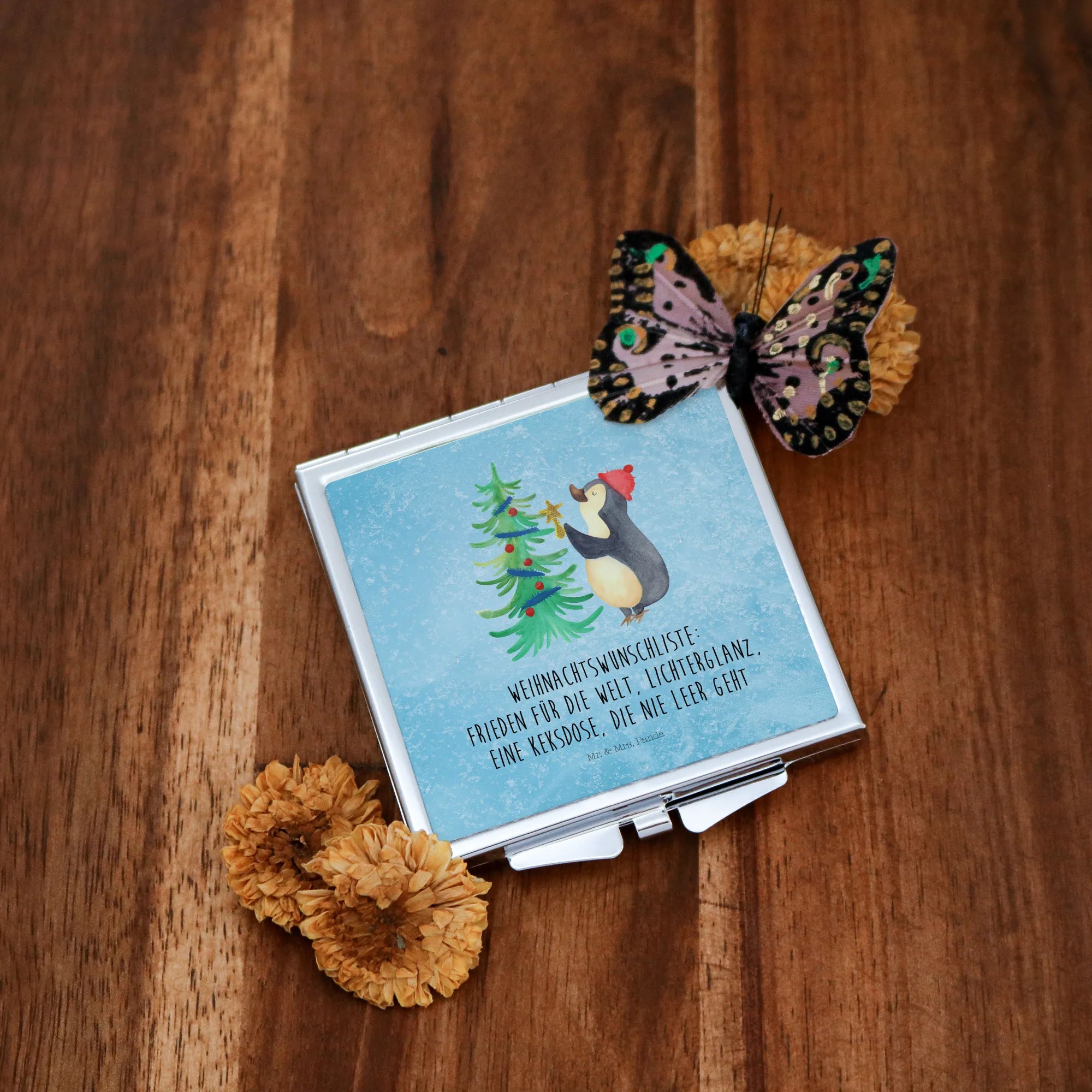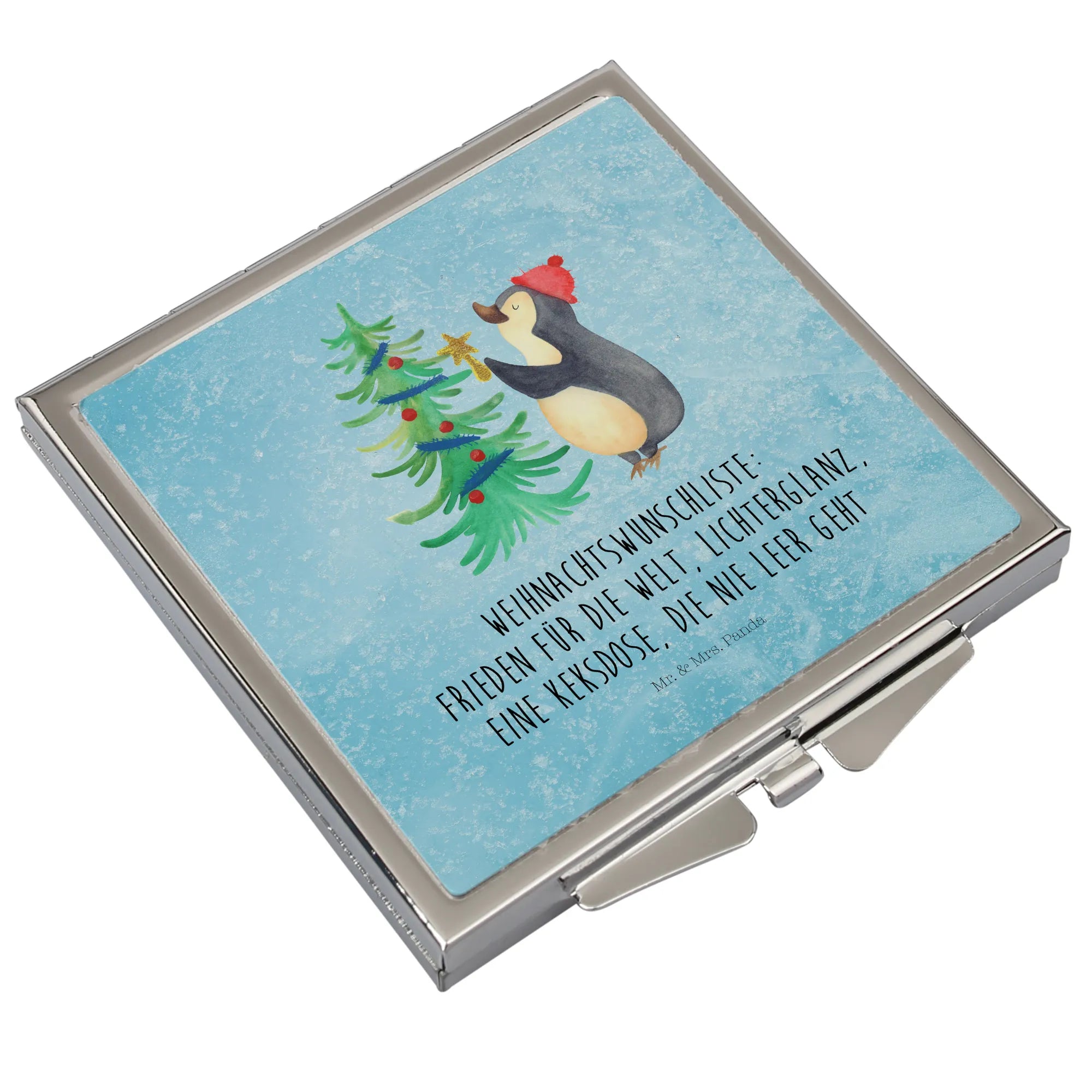Kwadratowe lusterko do torebki Pingwin choinka - z napisem - lodowoniebieski