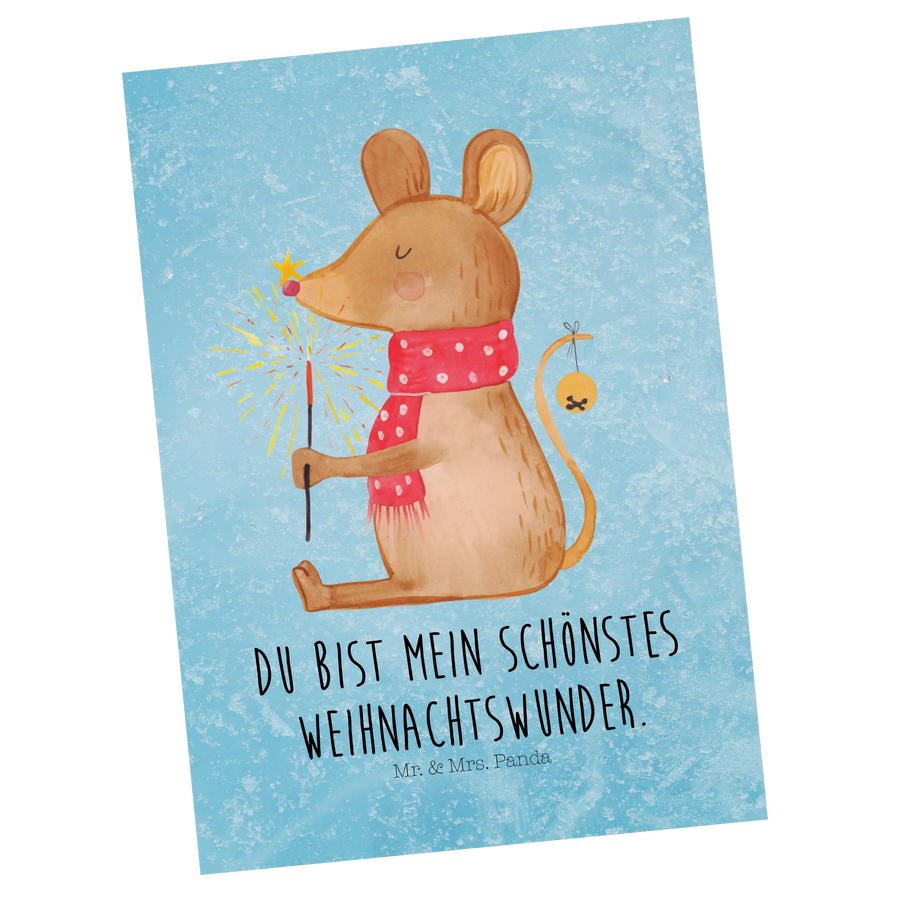 Pocztówka mysz Boże Narodzenie - z napisem - lodowoniebieski
