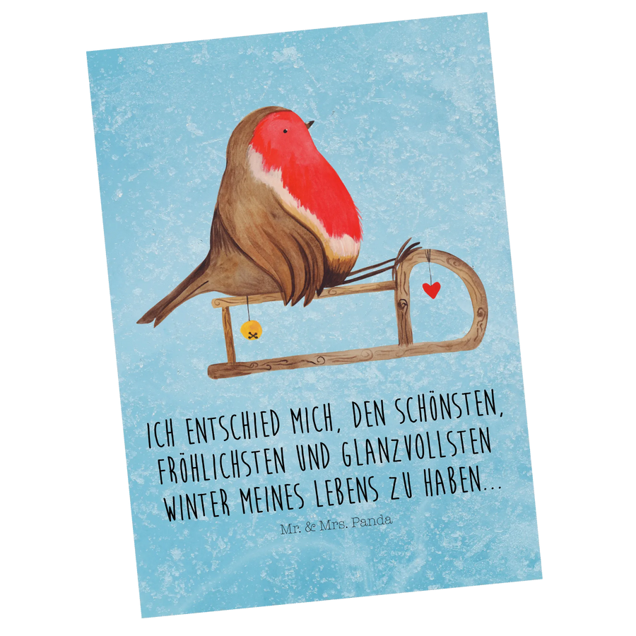 Pocztówka rudzik sanki - z napisem - lodowoniebieski