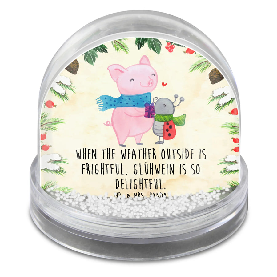 Die wunderschöne Schneekugel Glühschwein Smörle aus der Winter Kollektion von Mr. & Mrs. Panda ist das perfekte Geschenk für Freunde und Familie, die den Winter und die festliche Jahreszeit lieben! Mit ihrer handgezeichneten Illustration eines fröhlichen rosa Schweins, das einen blauen gepunkteten Schal trägt, und dem niedlichen Marienkäfer Smörle, der ein Geschenk überreicht, bringt sie garantiert Freude und Gemütlichkeit in jedes Zuhause.