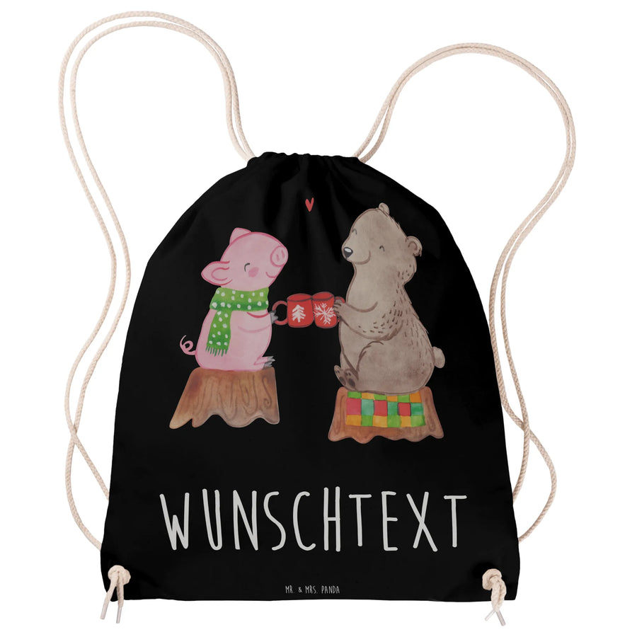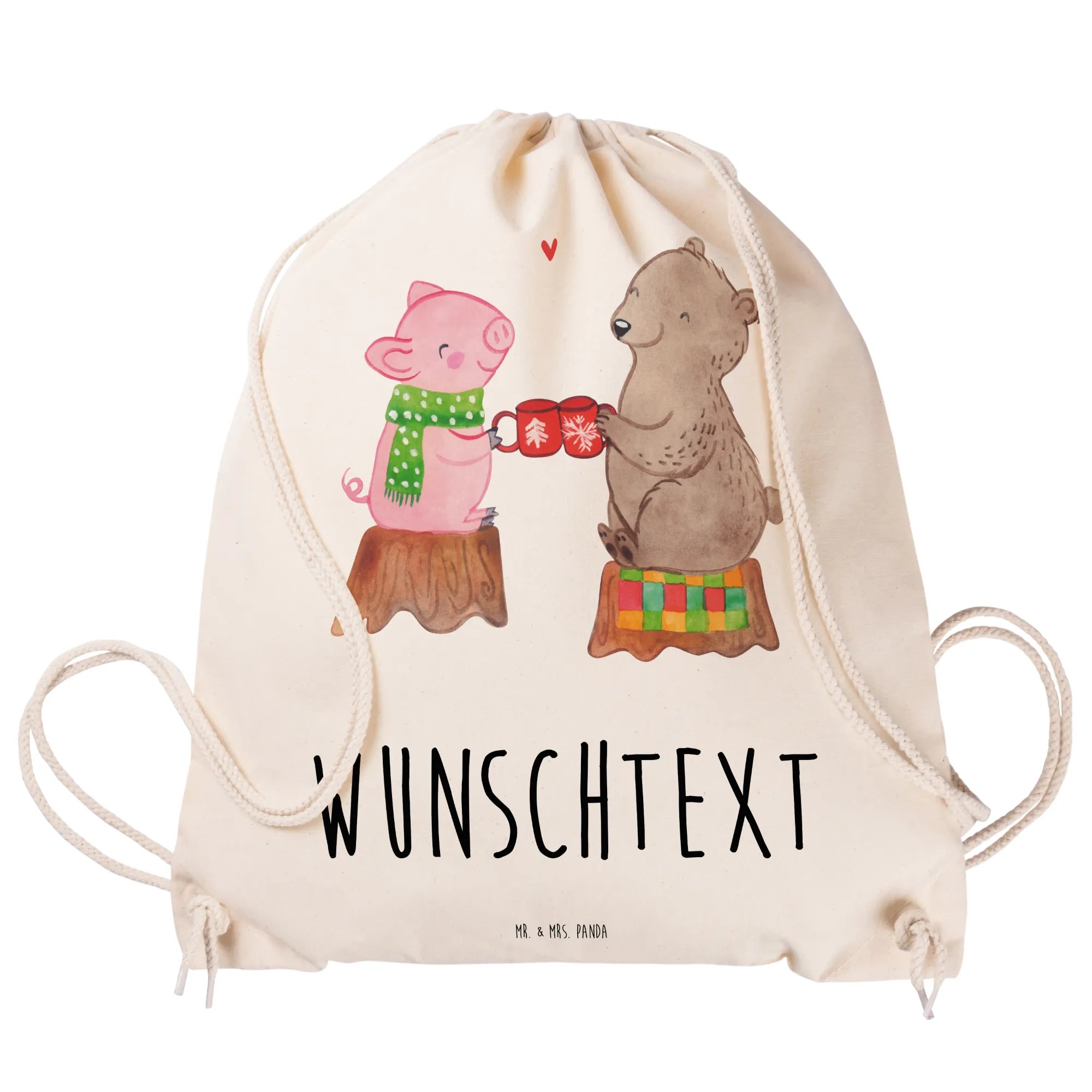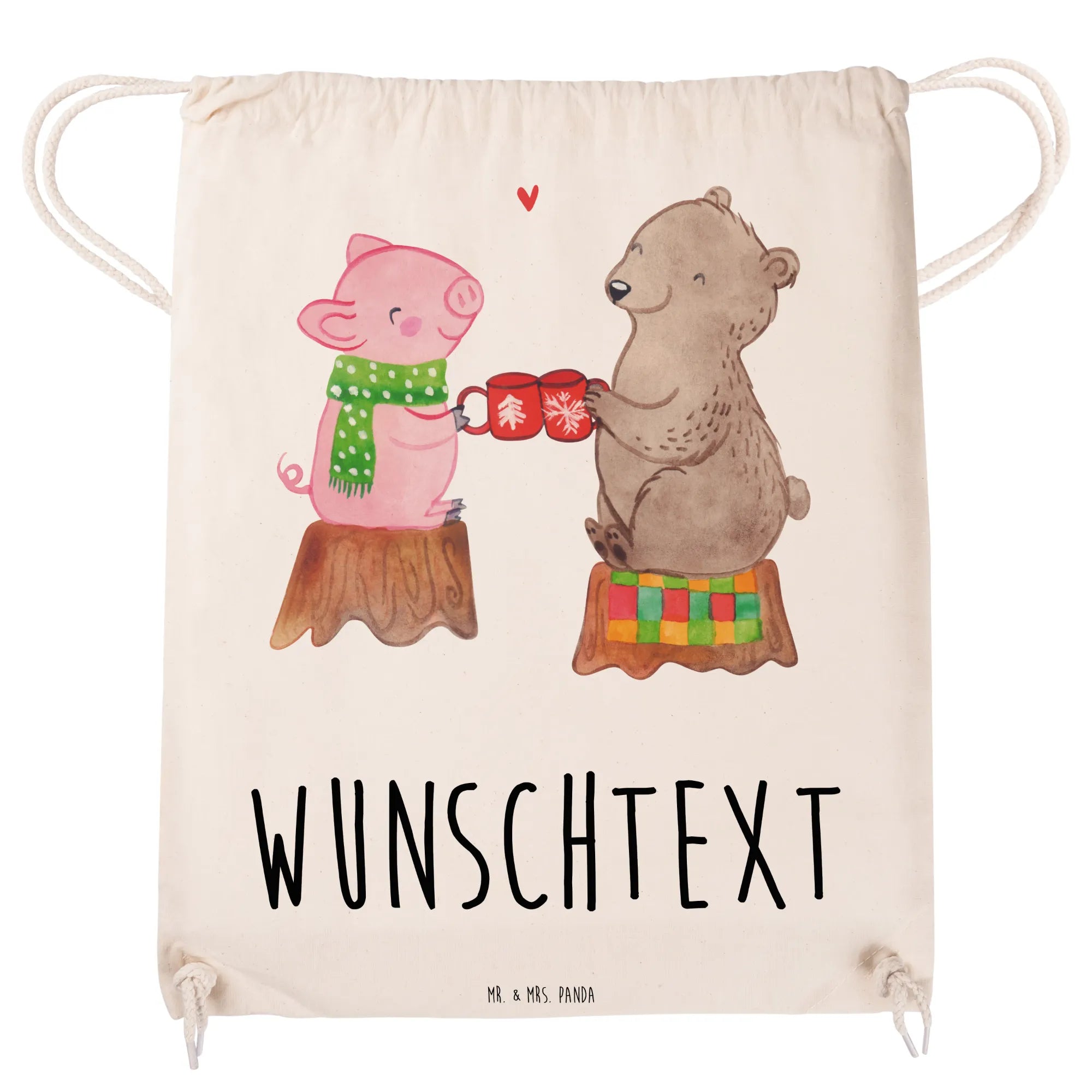 Der personalisierte Sportbeutel "Glühschwein Sause" aus der Winter Kollektion von Mr. & Mrs. Panda ist das perfekte Geschenk für die kalte Jahreszeit. Mit seinem liebevollen Motiv fantastisch gezeichnet von Mrs. Panda – einem Bären und einem Schweinchen, die in einer herzlichen Umarmung anstoßen und sich 'Prost' zurufen – zaubert er sofort ein Lächeln auf jedes Gesicht.
