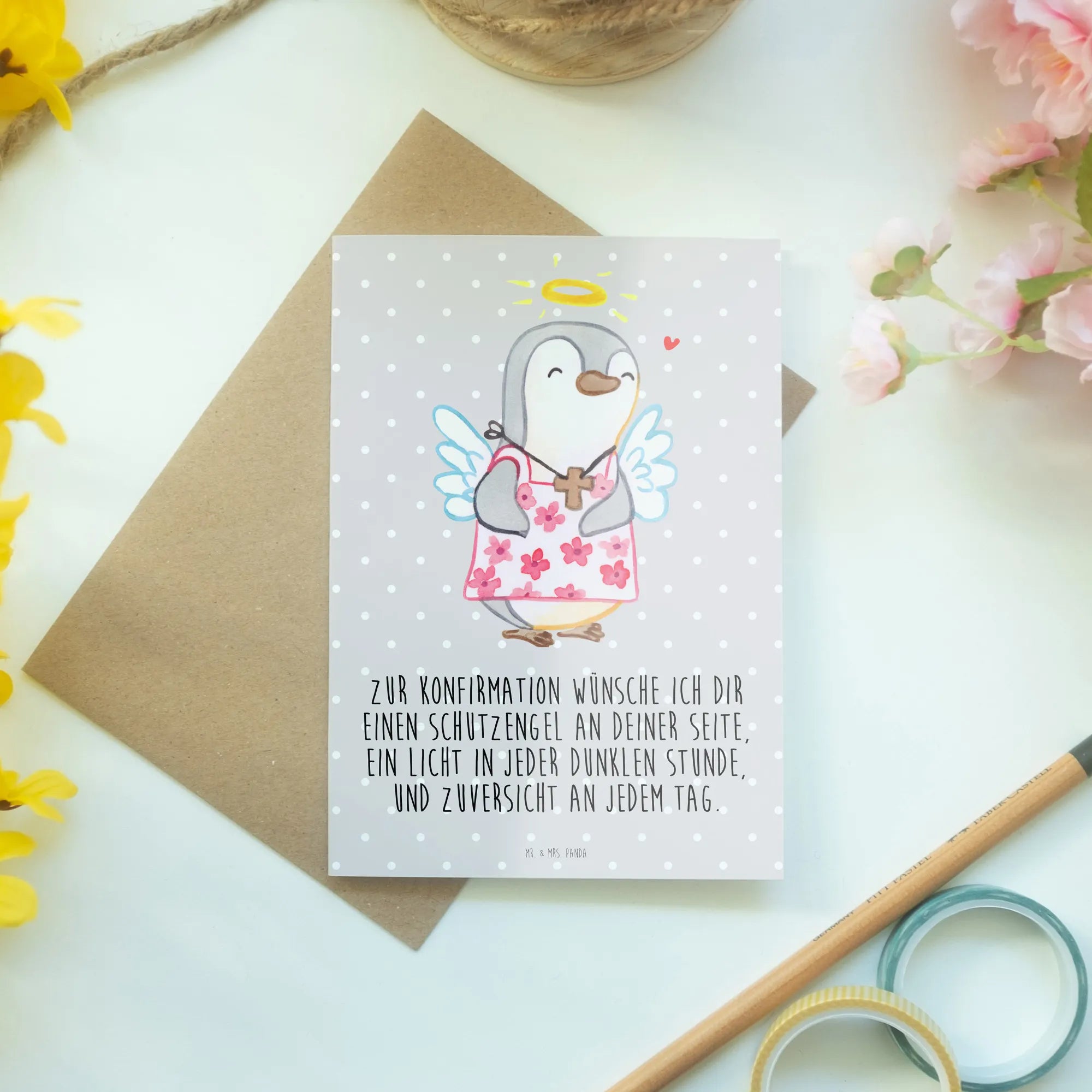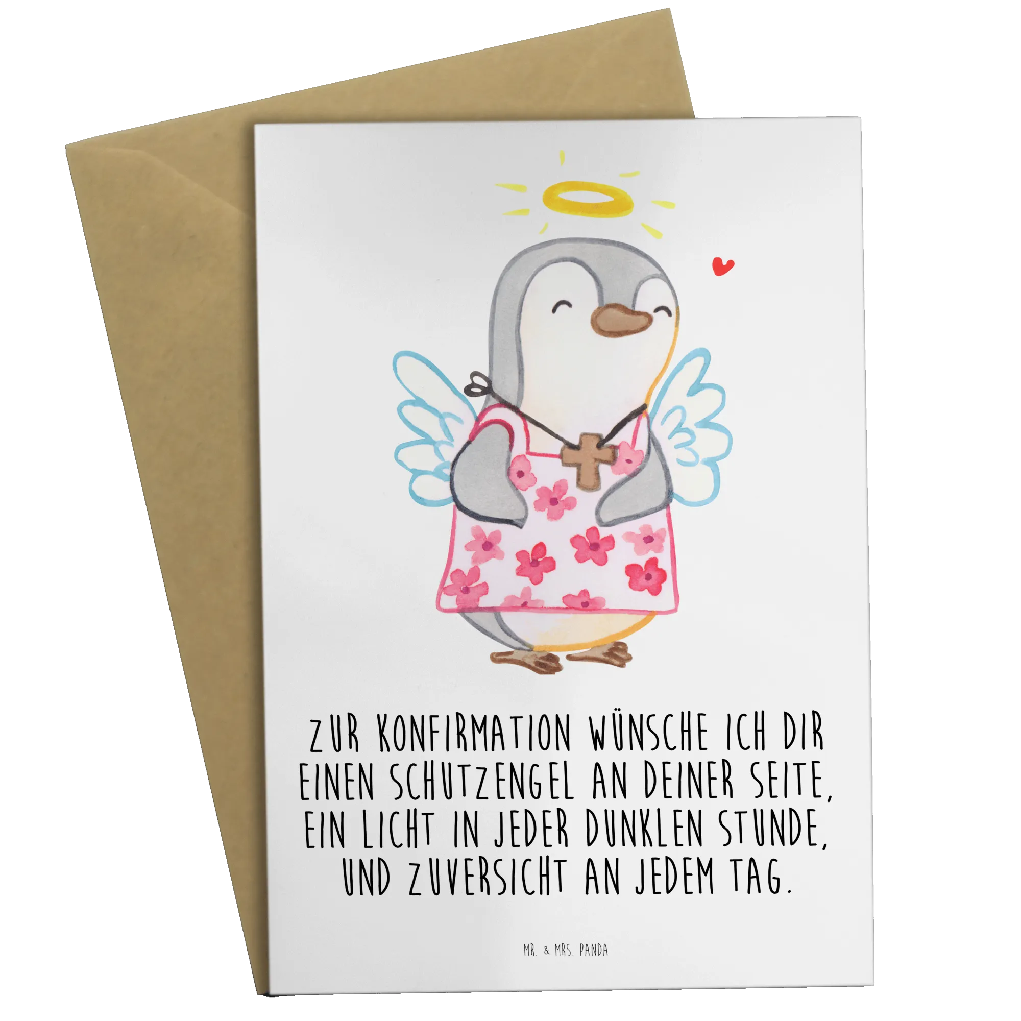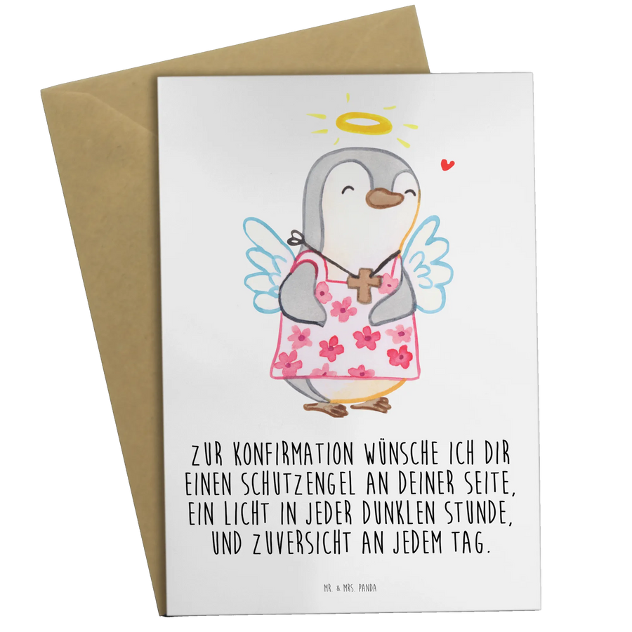 Bist du auf der Suche nach dem perfekten Geschenk zur Konfirmation? Dann ist die liebevolle Grußkarte "Pinguin Konfirmation" aus der bezaubernden Kollektion von Mr. & Mrs. Panda genau das Richtige für dich! Diese Karte ist nicht nur ein wunderschönes Accessoire, sondern auch eine persönliche Möglichkeit, um Glückwünsche zu übermitteln und Trost zu spenden. Mit dem Motiv eines süßen Pinguins, der ein Blumenkleid trägt und mit einer Kreuz-Halskette sowie einem Heiligenschein ausgestattet ist, bringt sie garantiert ein Lächeln auf die Gesichter der Empfänger.