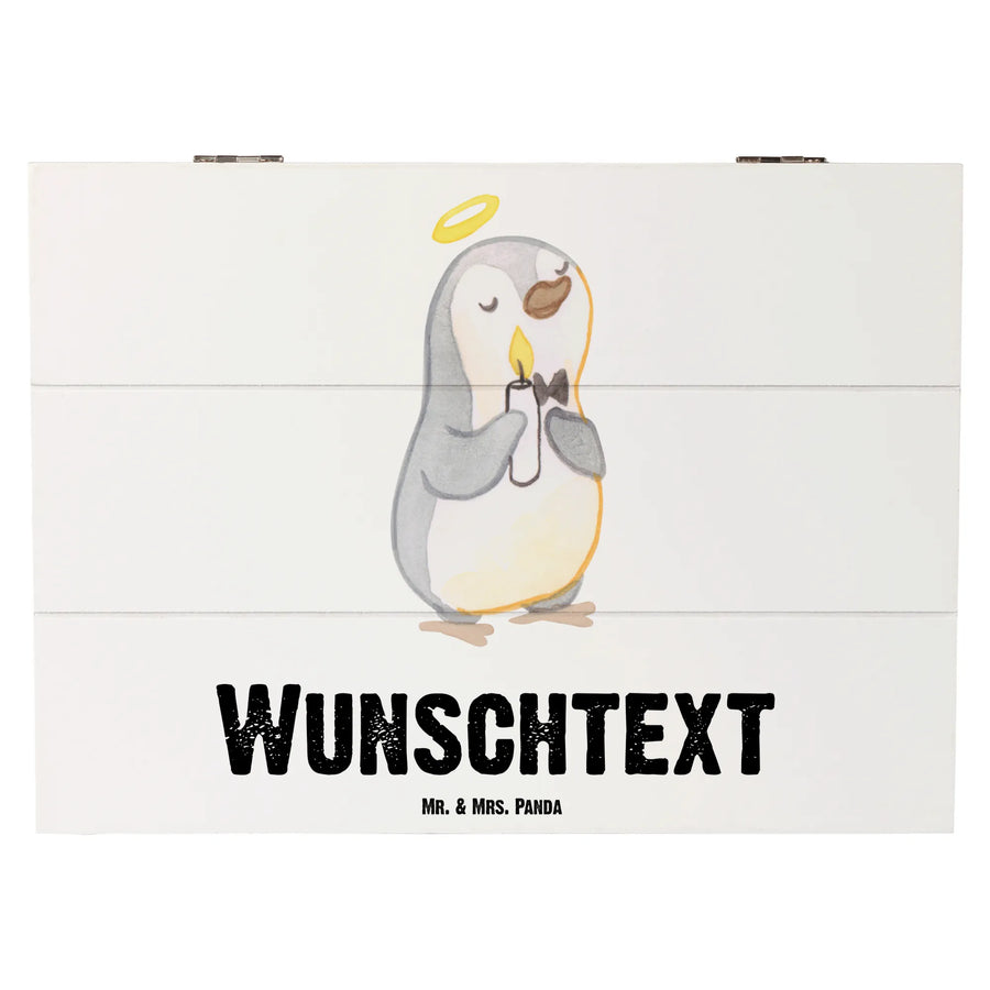 Der süße, stolze Pinguin mit der brennenden Kerze und dem Heiligenschein bringt Wärme und Glück in jedes Zuhause. Die Holzkiste hat die perfekten Maße von 19 x 12 cm und bietet ausreichend Platz für Fotos, kleine Geschenke oder die ersten Erinnerungen aus der Kindheit. Mit einem stabilen Material aus Premium Hartfaser, das wasserabweisend und langlebig ist, ist diese Kiste der ideale Ort, um besondere Momente zu bewahren.