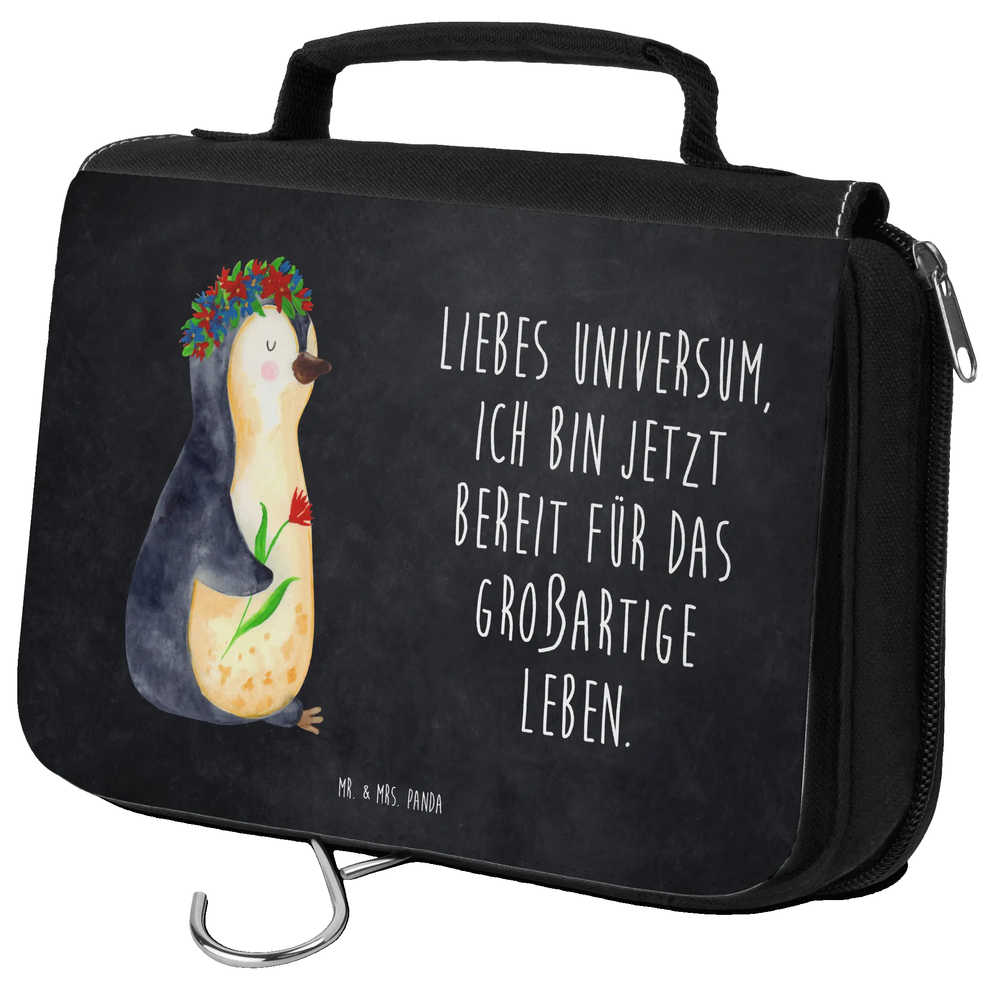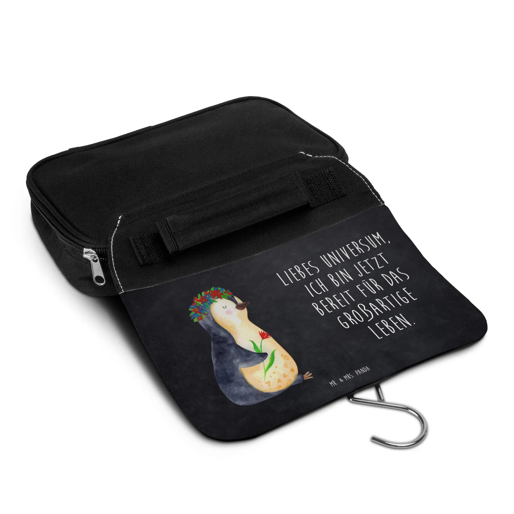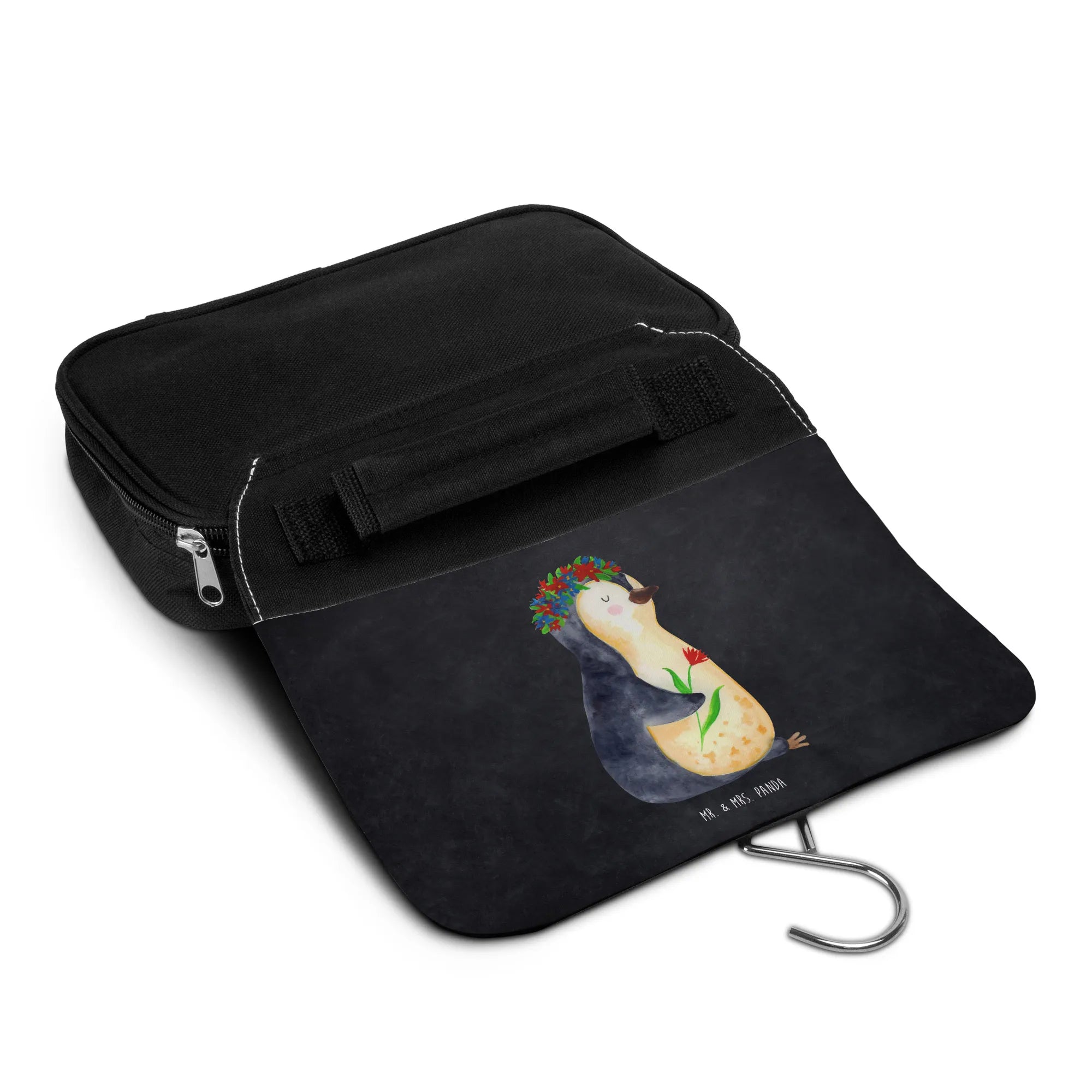 Kosmetyczka pingwin kwiaty - z napisem - lodowoniebieski