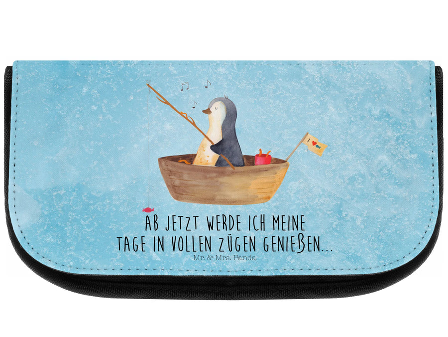 Kosmetyczka pingwin łódka wędkarska - z napisem - Eisblau