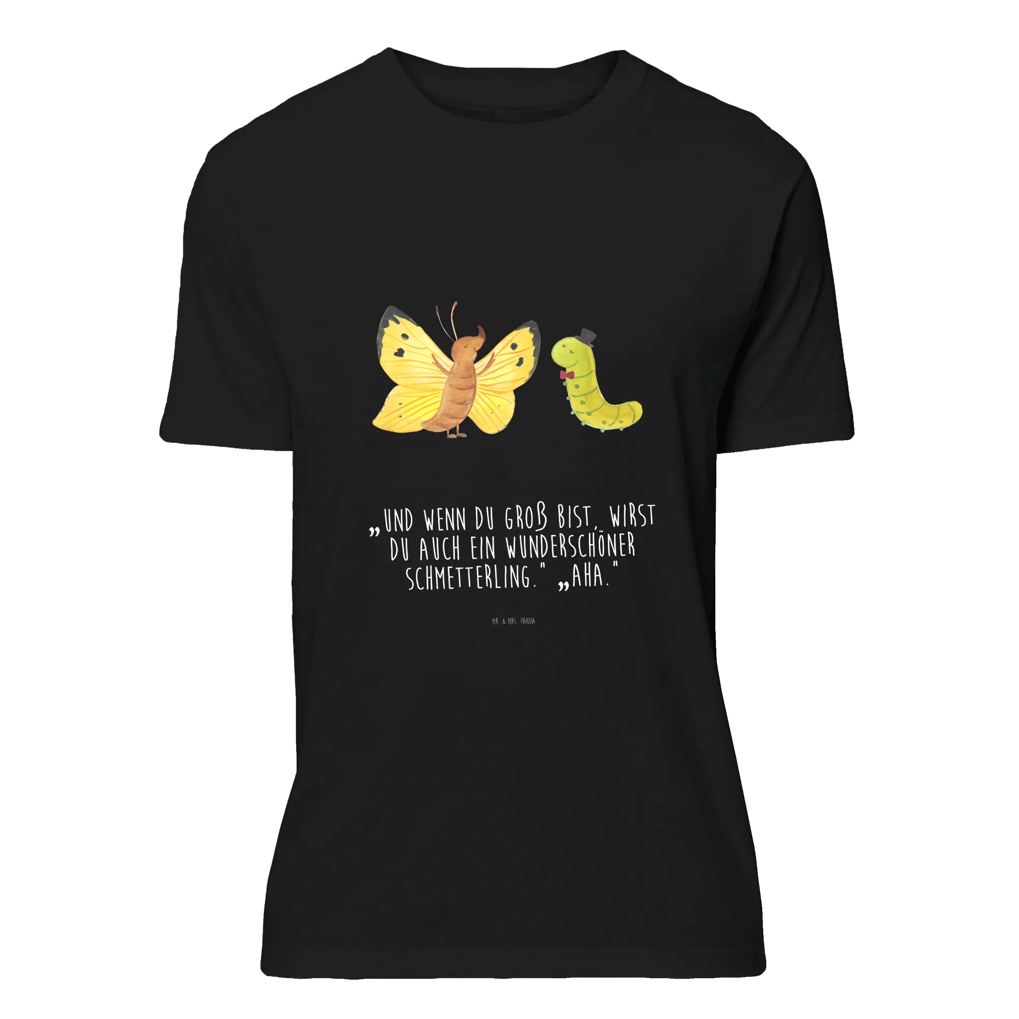 Mr. & Mrs. Panda Größe XL T-Shirt „Raupe & Schmetterling“ – Ein fröhliches Shirt aus der Small World Kollektion, das Veränderungen feiert und gute Laune verbreitet. Die handgezeichnete Raupe, die sich in einen bunten Schmetterling verwandelt, steht für Entwicklung, Aufwachsen und die Schönheit des Erwachsenwerdens. 🐛🦋