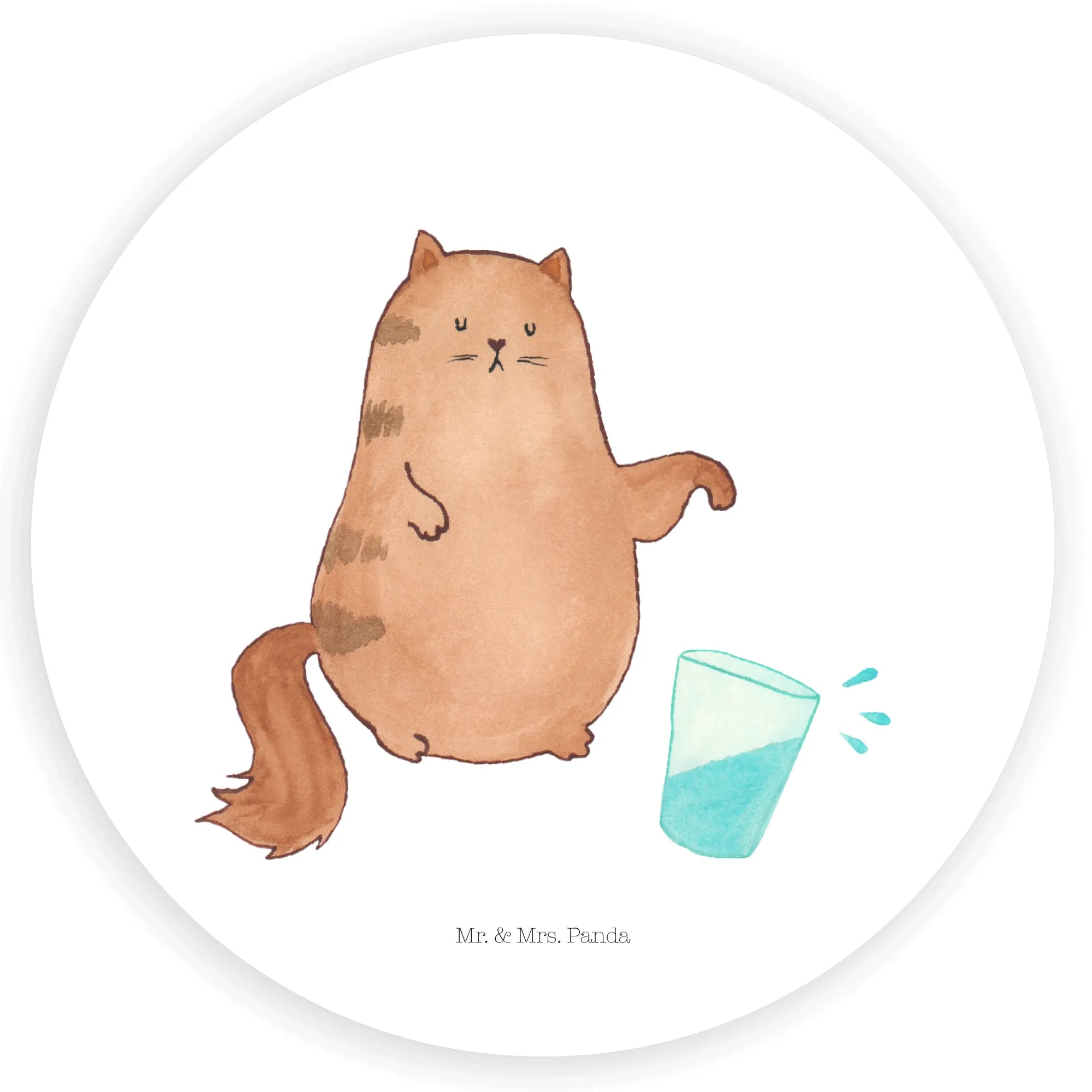 120mm okrągła naklejka kot szklanka wody - 80mm okrągła naklejka - z napisem - biały