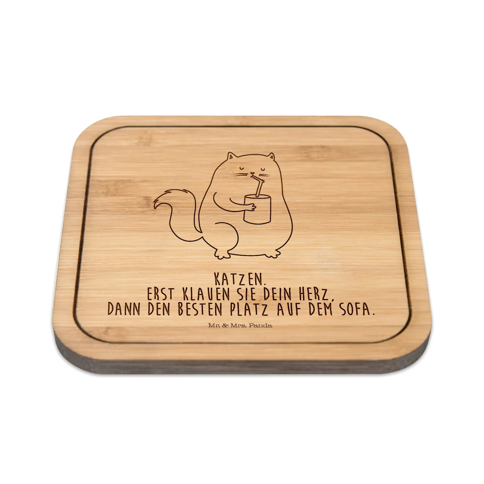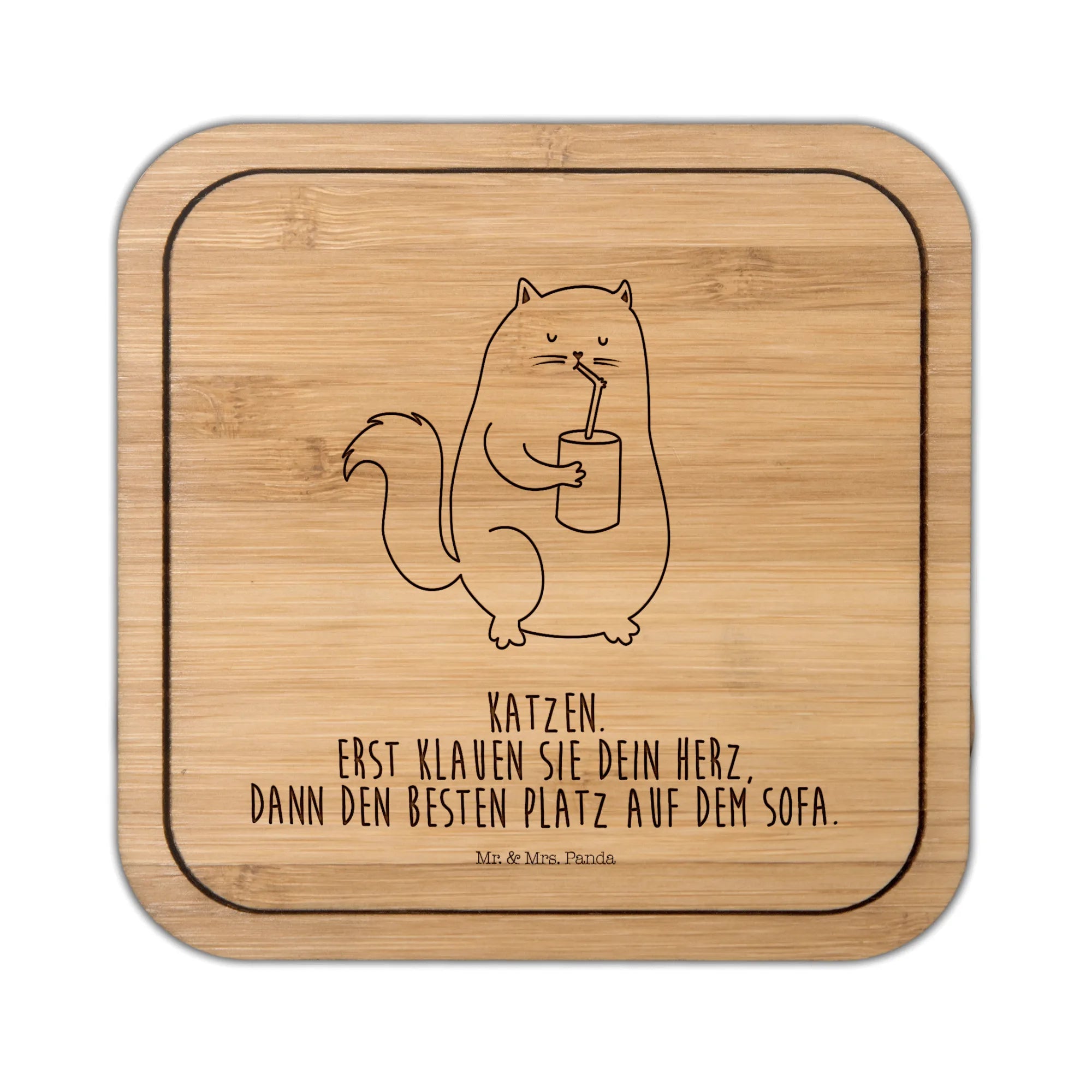 Kwadratowa podkładka kot puszka - z napisem