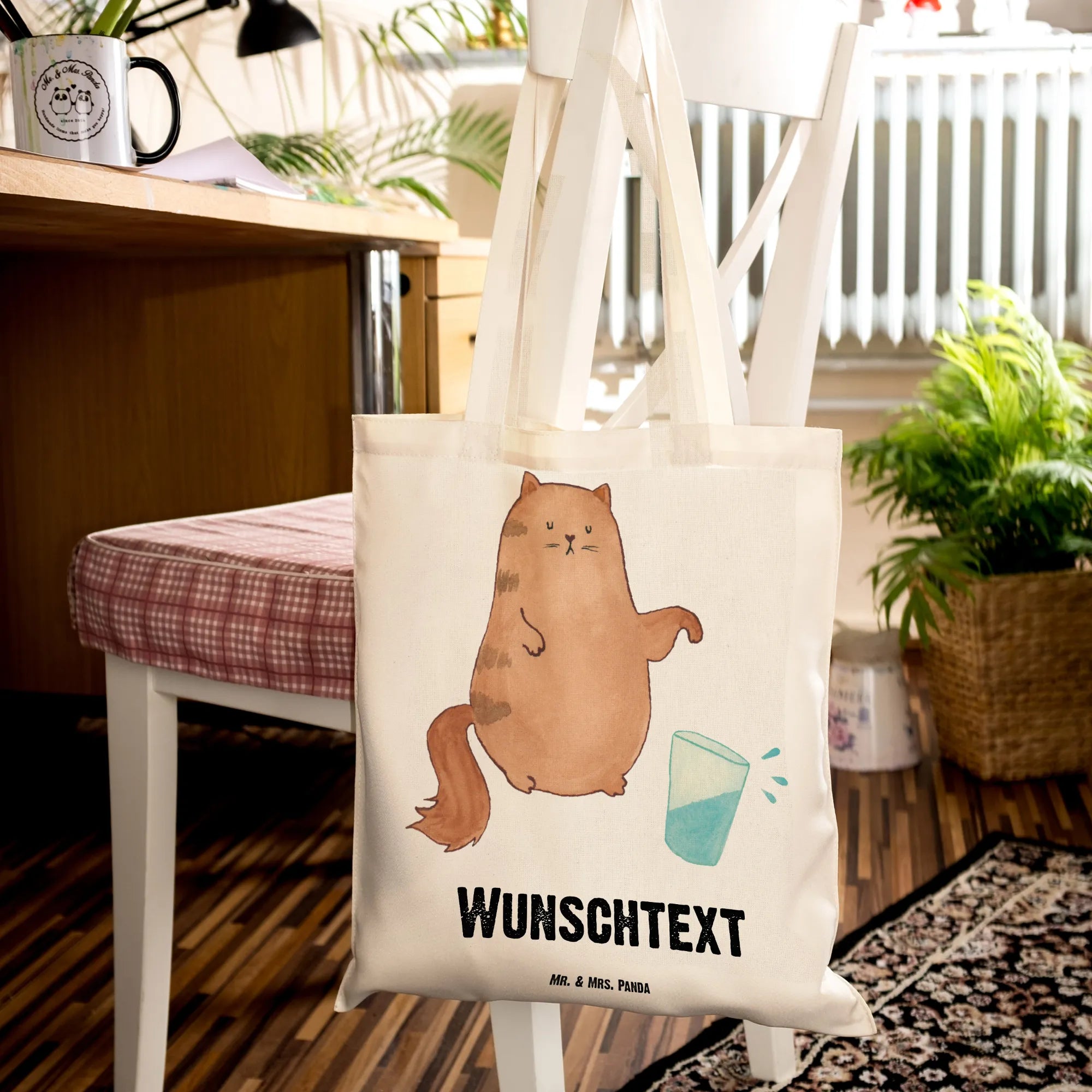 Die personalisierte Tragetasche "Katze Wasserglas" aus der zauberhaften Katzen-Kollektion von Mr. & Mrs. Panda ist das perfekte Geschenk für alle Katzenliebhaber und Katzenfans!
