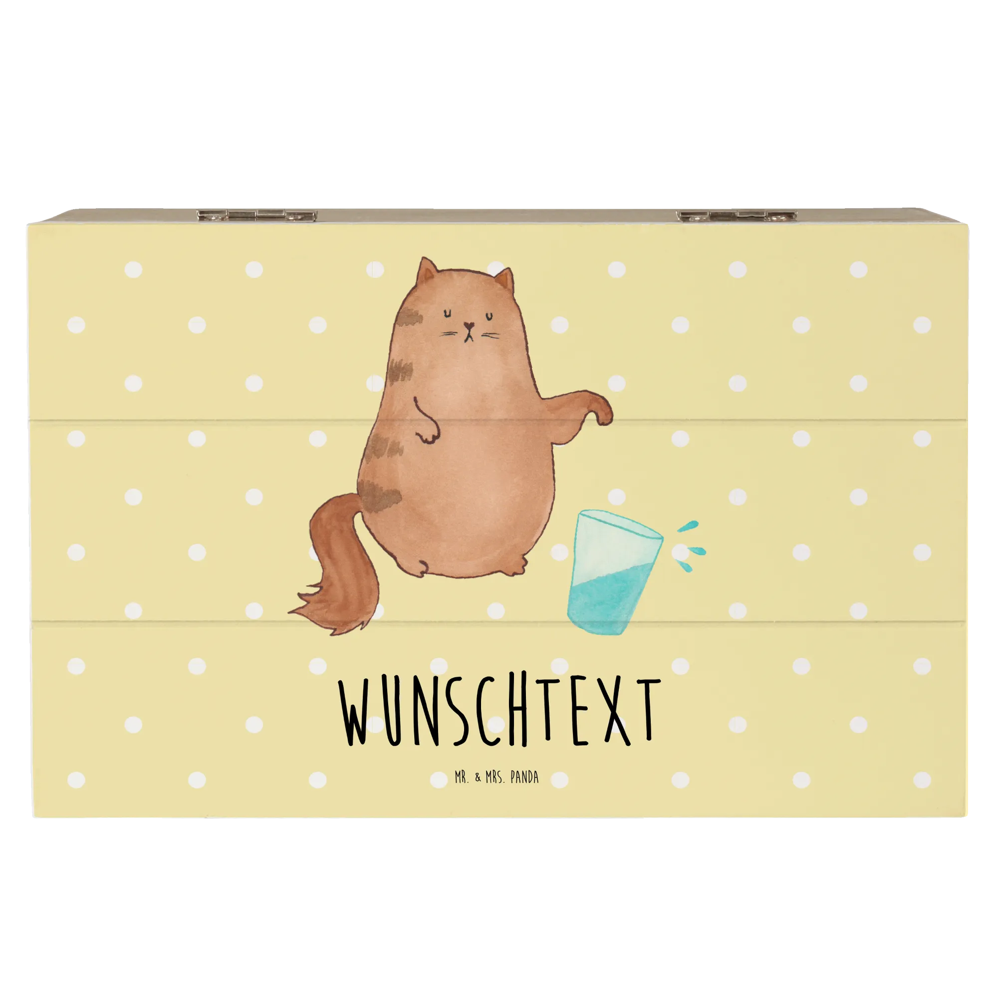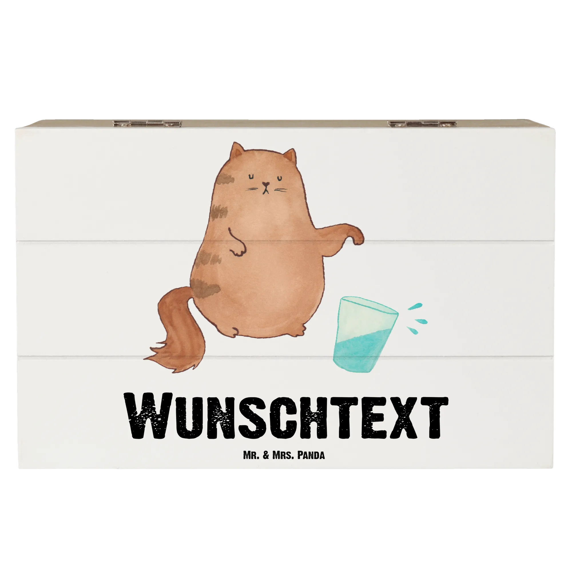 Personalizowane drewniane pudełko kot szklanka wody - 22 x 15 cm - biały