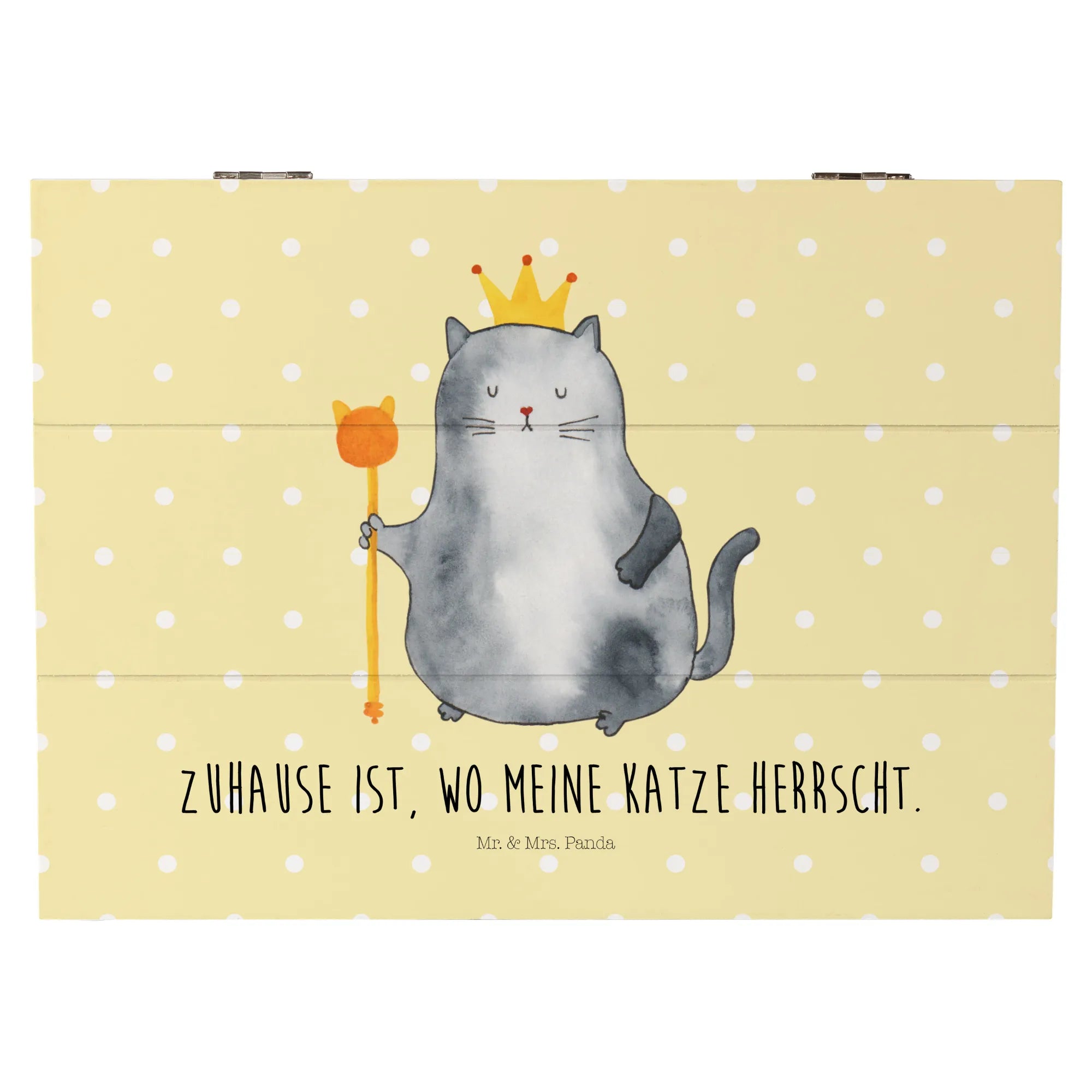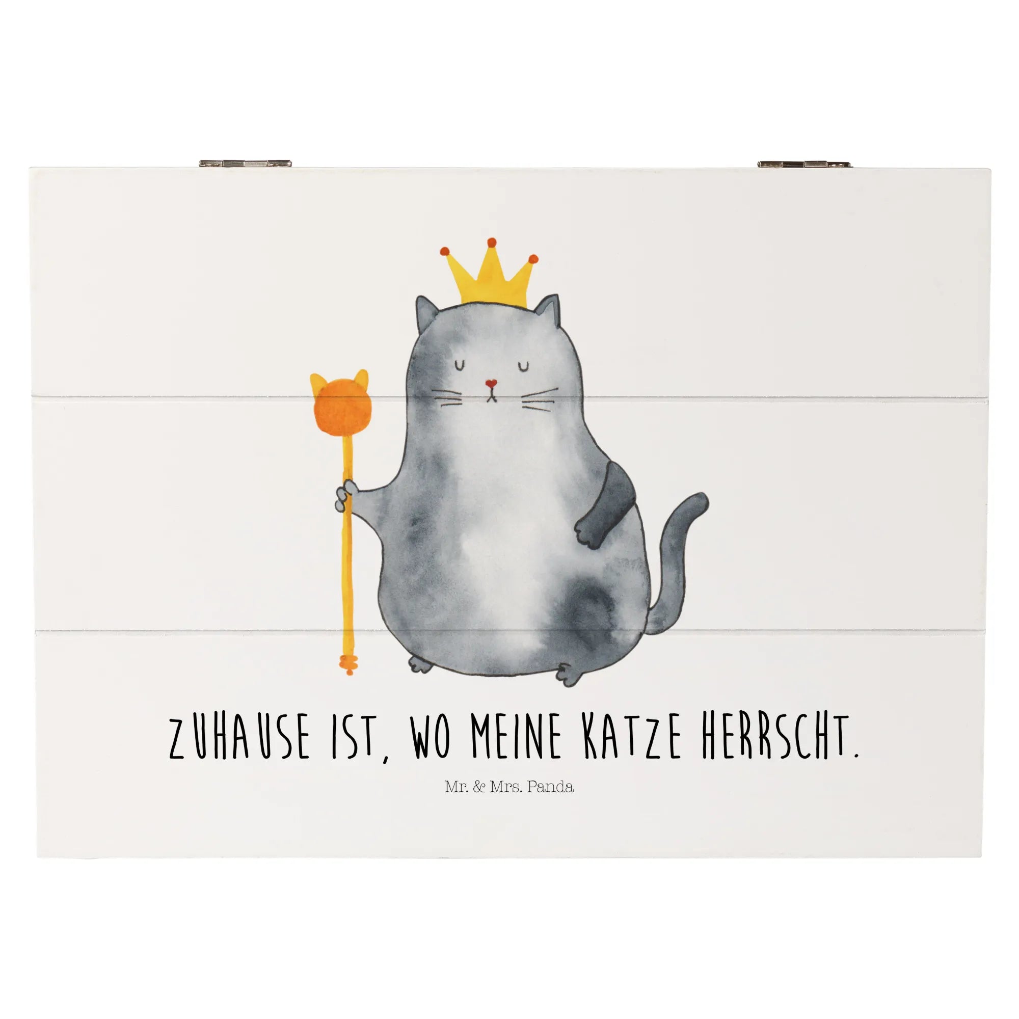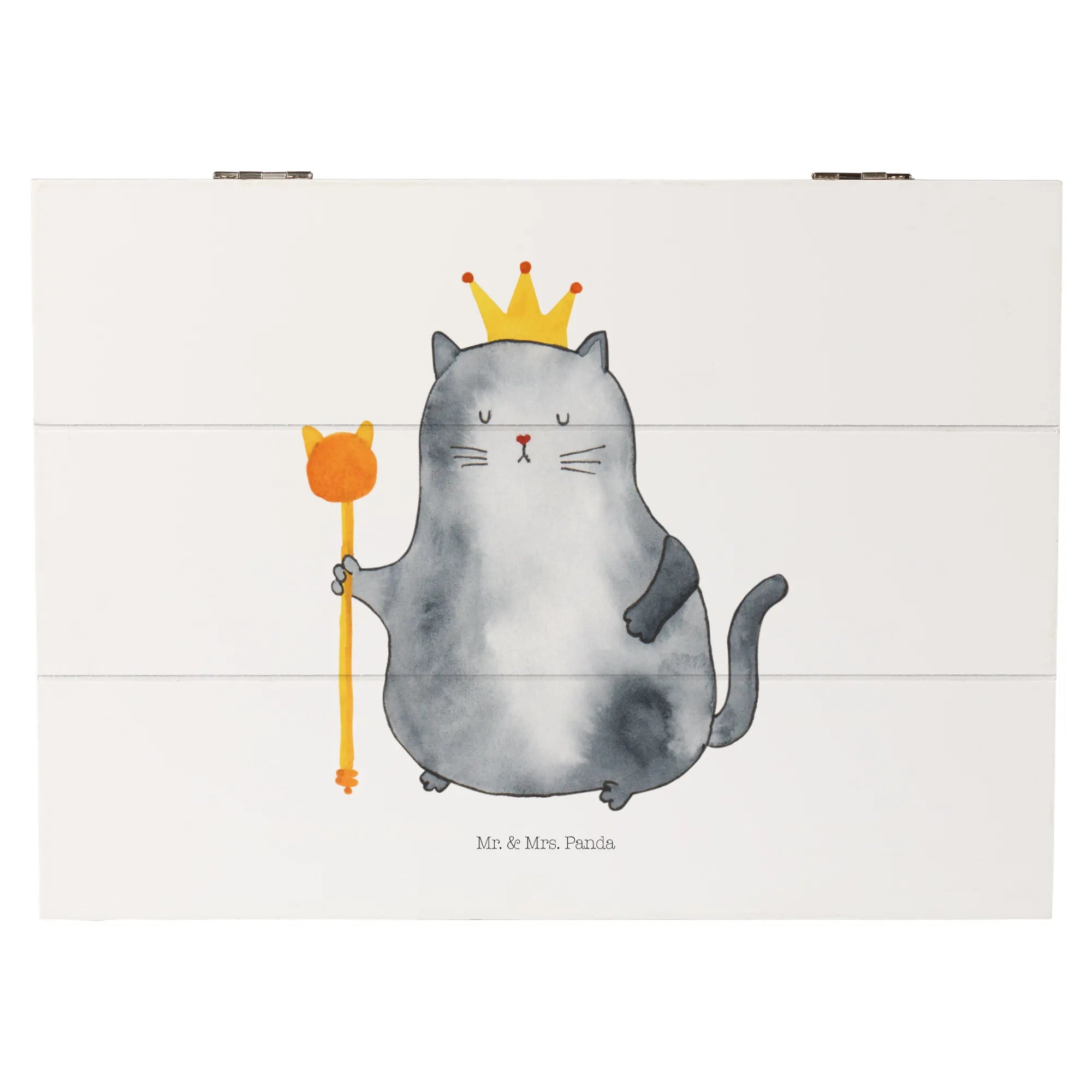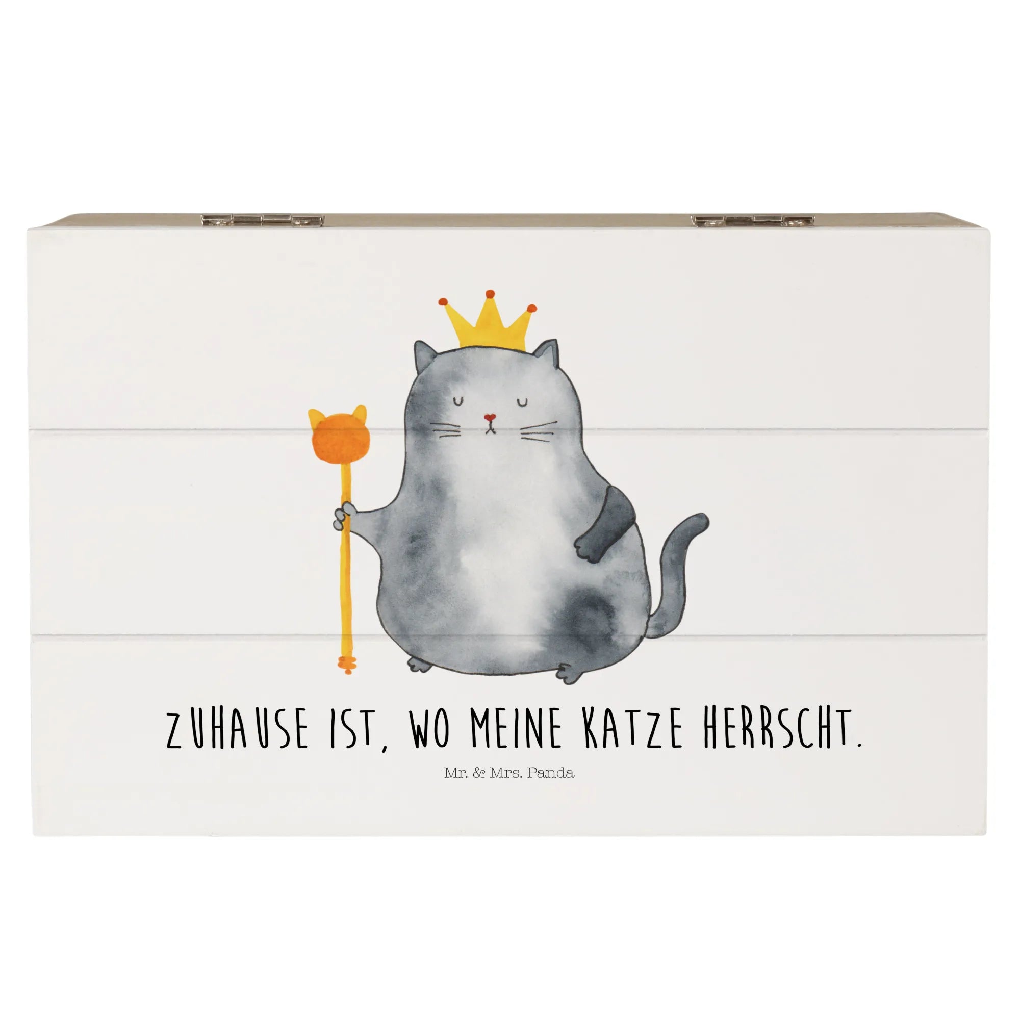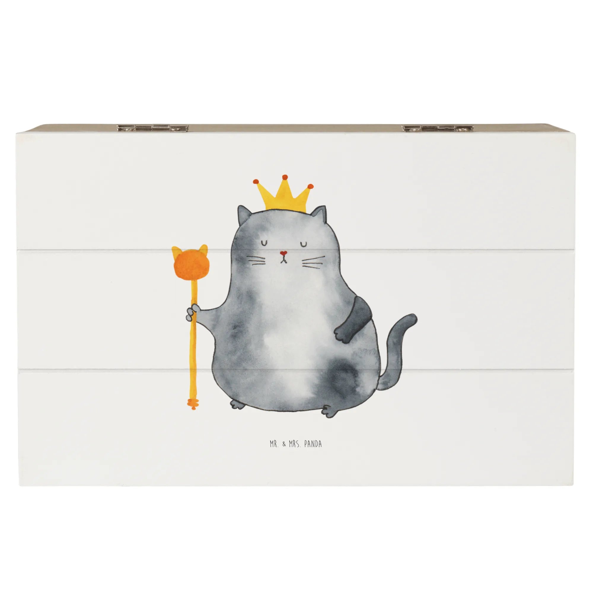 Skrzynia drewniana kot Król - 22 x 15 cm - z napisem - Biały
