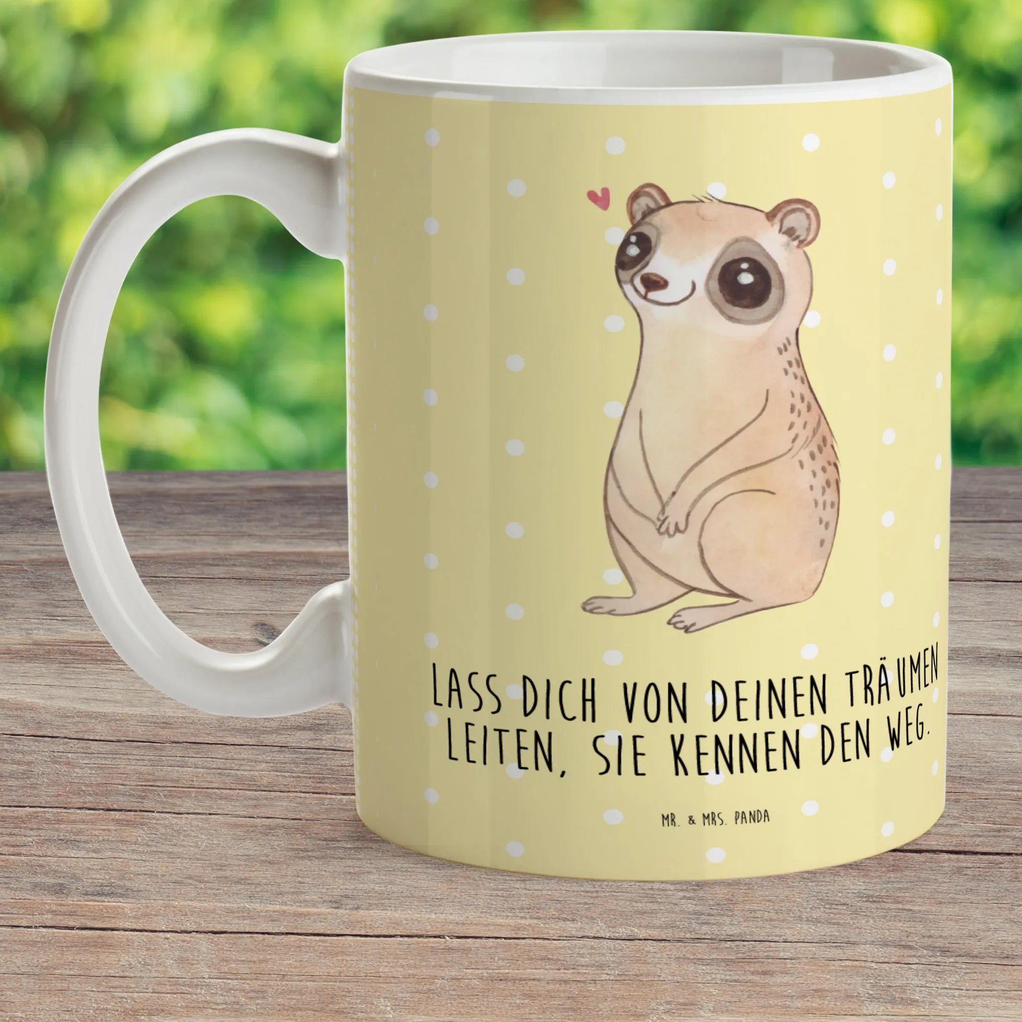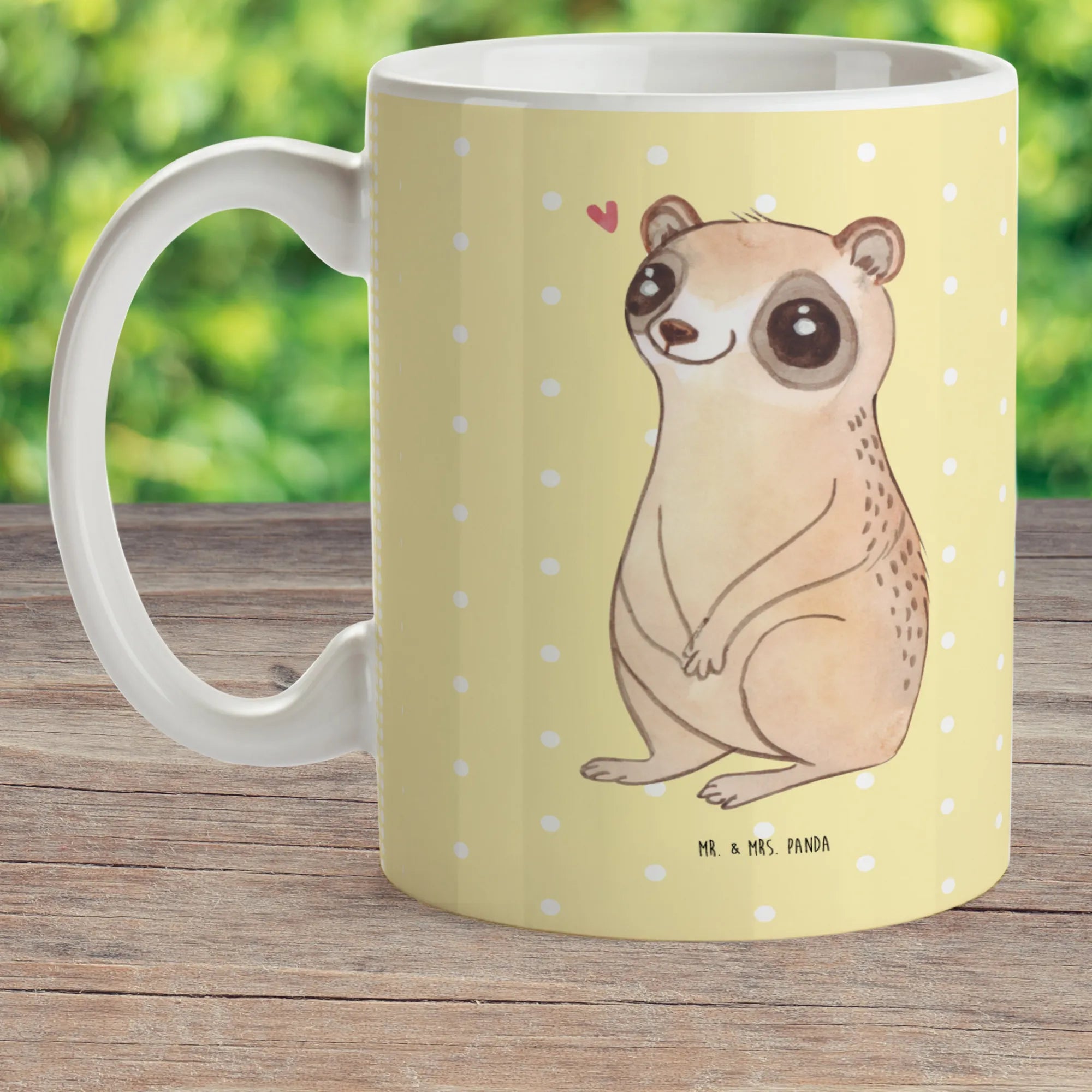 Unsere Kindertasse 'Plumplori Glücklich' von Mr. & Mrs. Panda ist das perfekte Geschenk für kleine Entdecker und große Träumer! Mit einem liebevollen, handgezeichneten Motiv eines Plumploris, der voller Glück und Liebe in die Welt schaut, zaubert diese Tasse jedem Kind ein Lächeln ins Gesicht.