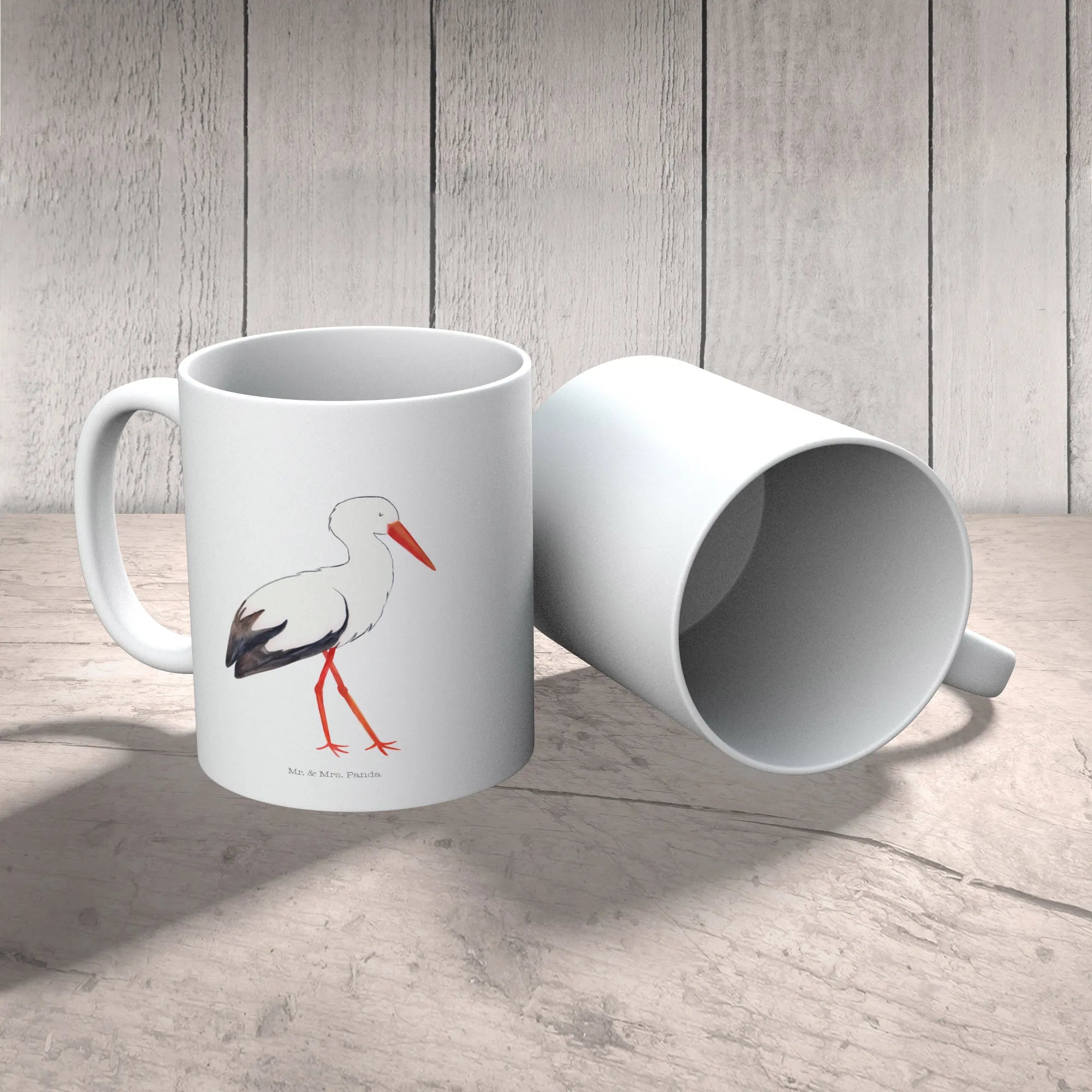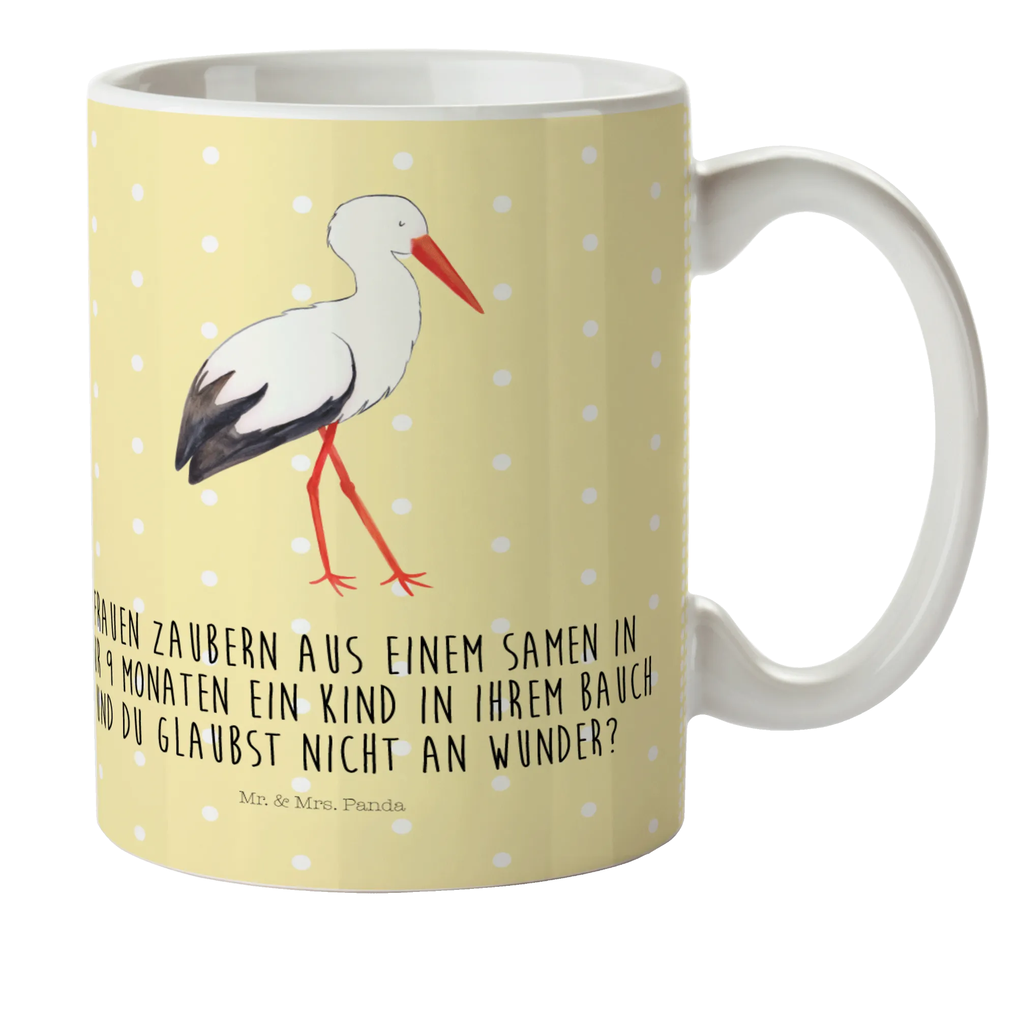 kubek dla dzieci Bocian - z napisem - Żółty Pastel