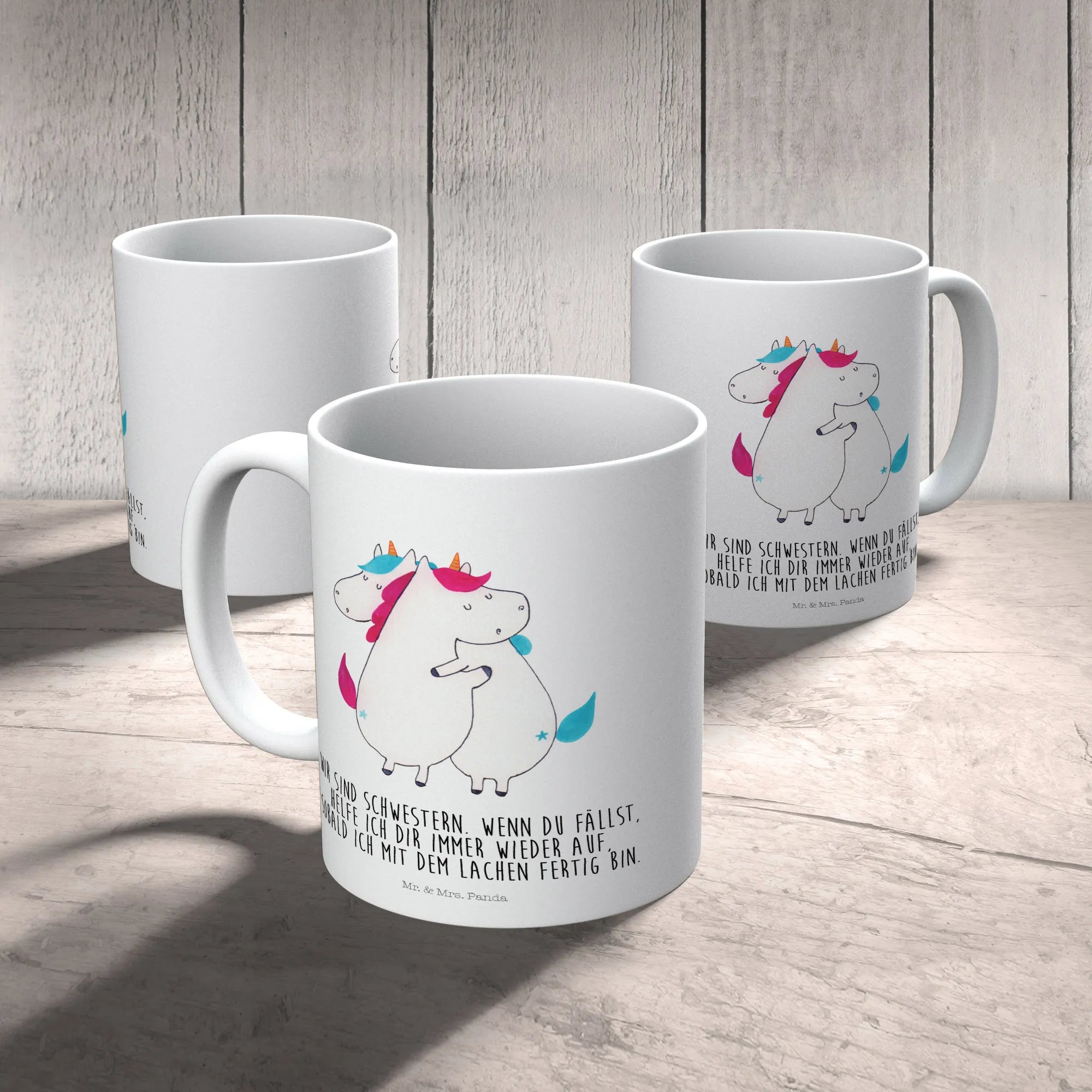 kubek dla dzieci Jednorożce Przytulanie - z napisem - Pastelowy czerwony