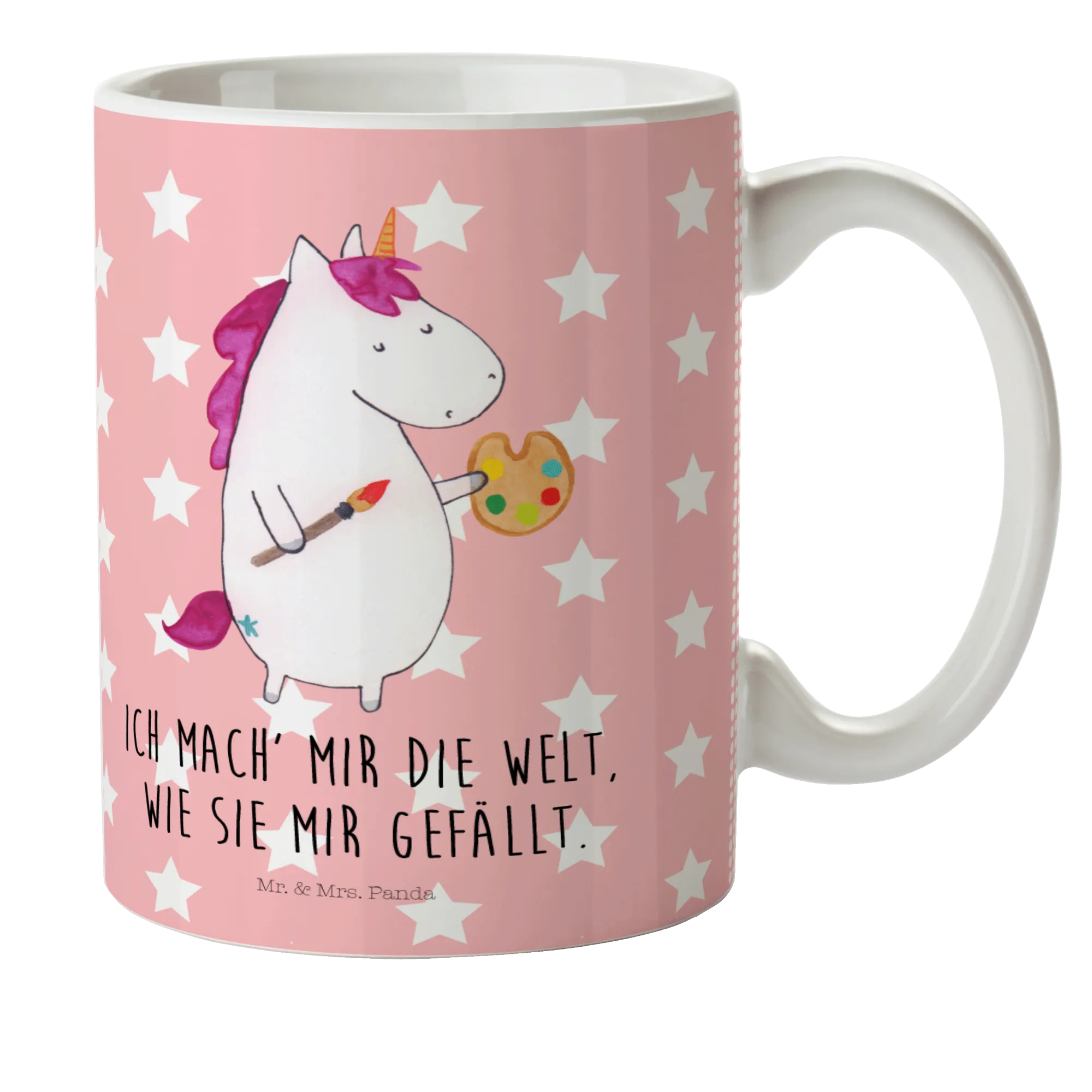 kubek dla dzieci Jednorożec Artysta - z napisem - Różowy Czerwony