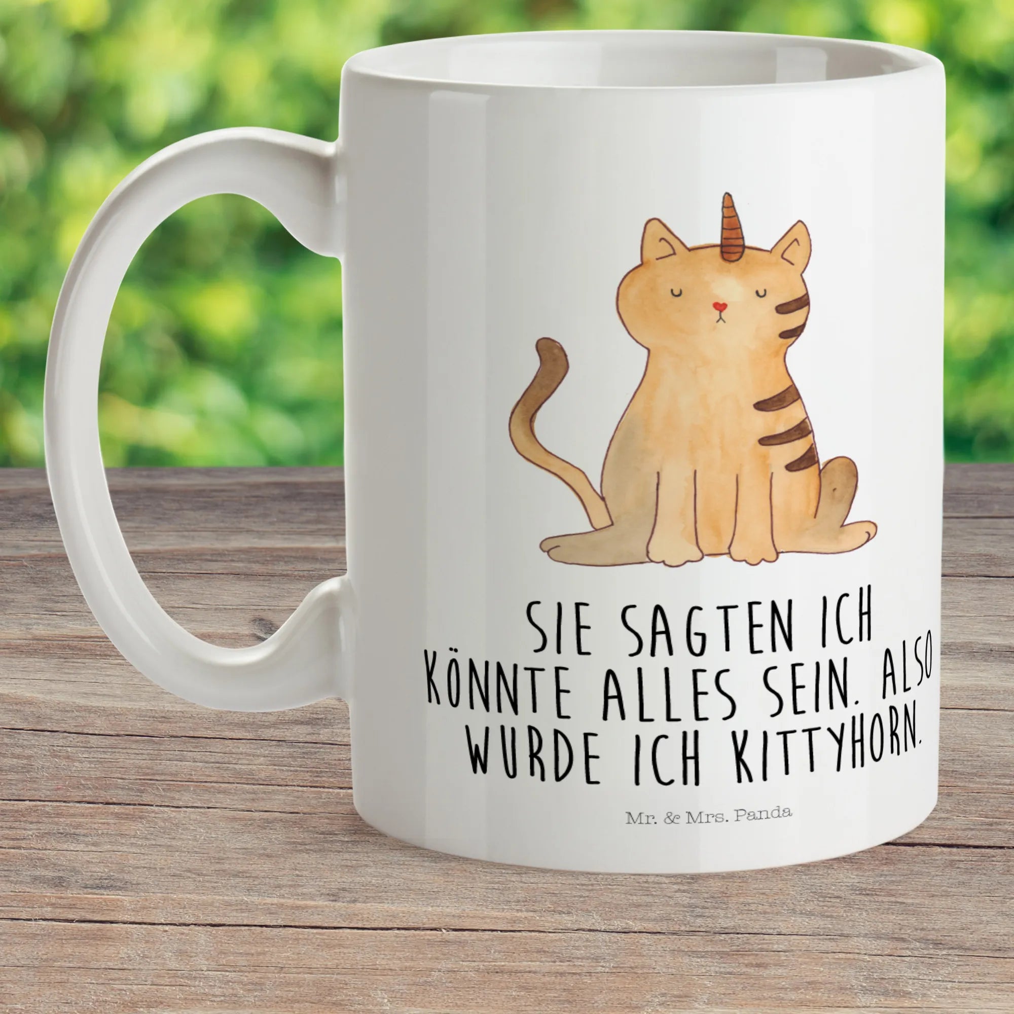 kubek dla dzieci jednorożec kot - z napisem - Pastelowy czerwony