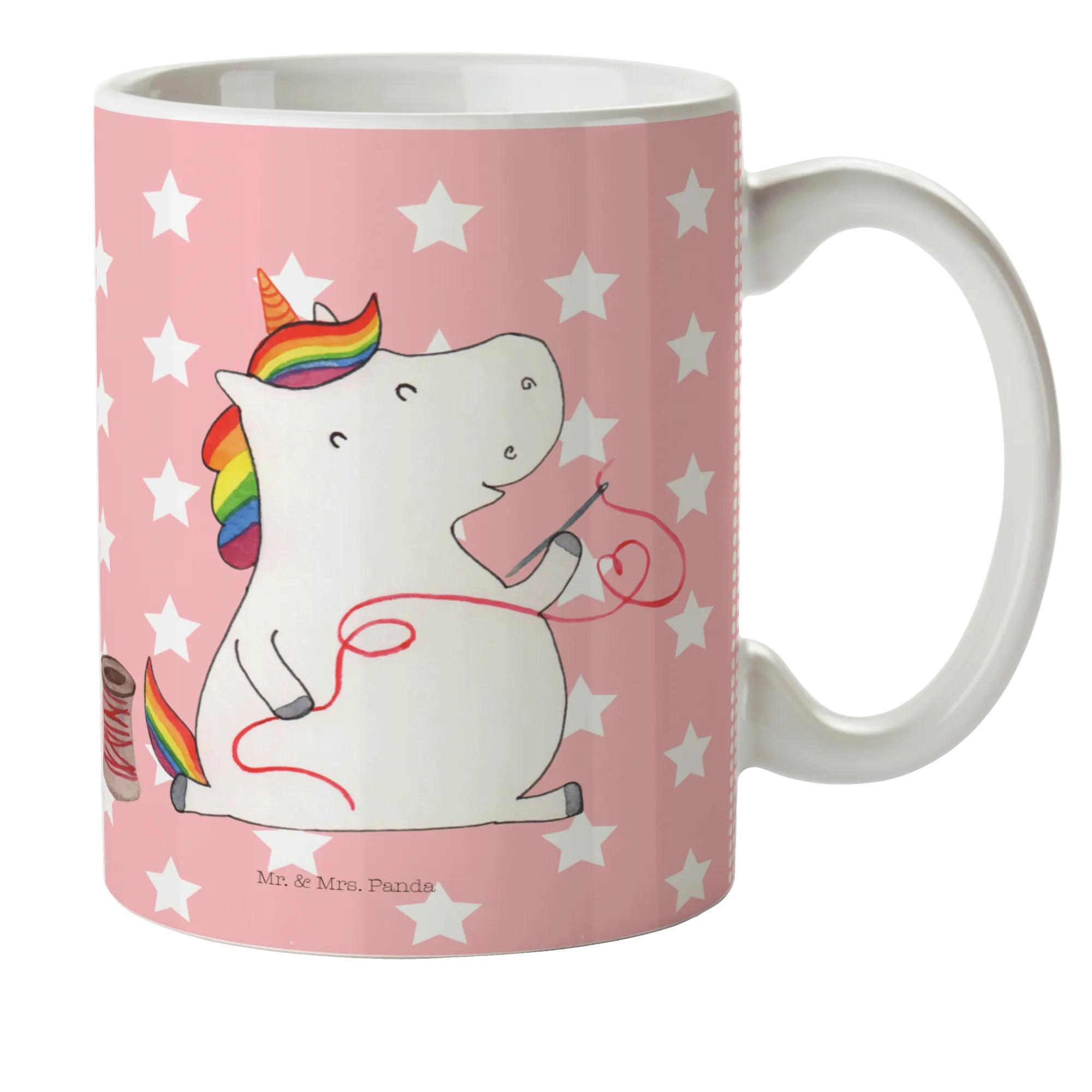 kubek dla dzieci Jednorożec krawcowa - z napisem - Pastelowy czerwony