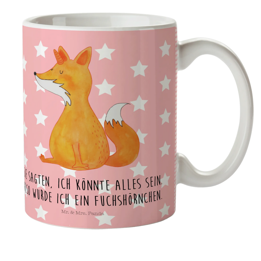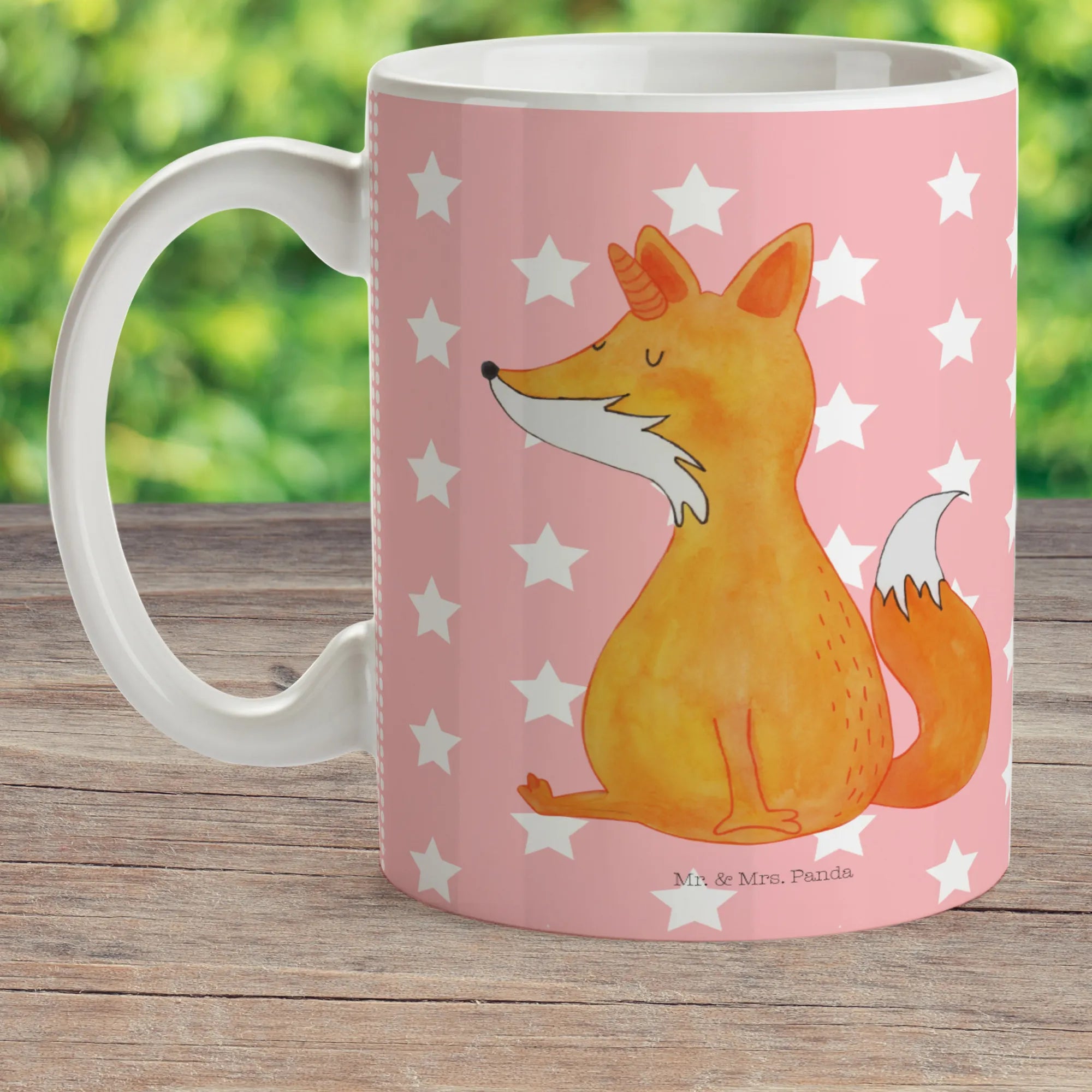 kubek dla dzieci Jednorożec lis - z napisem - Pastelowy czerwony