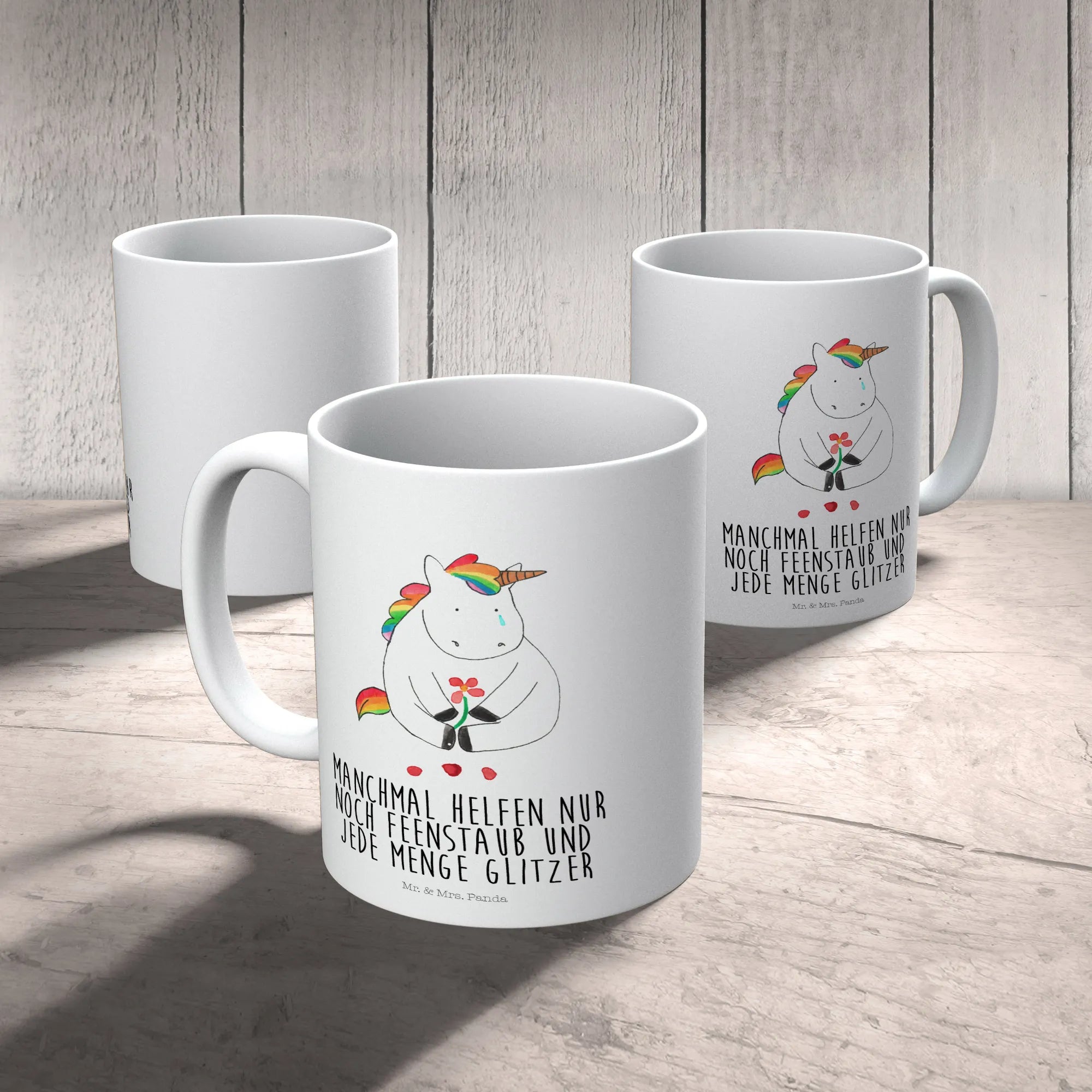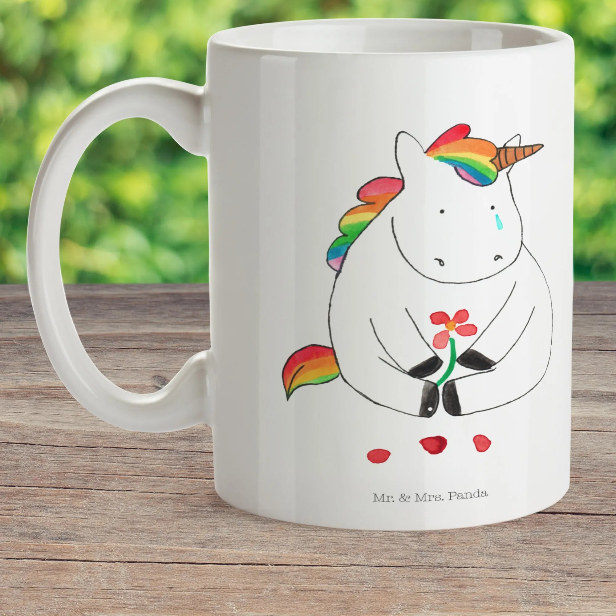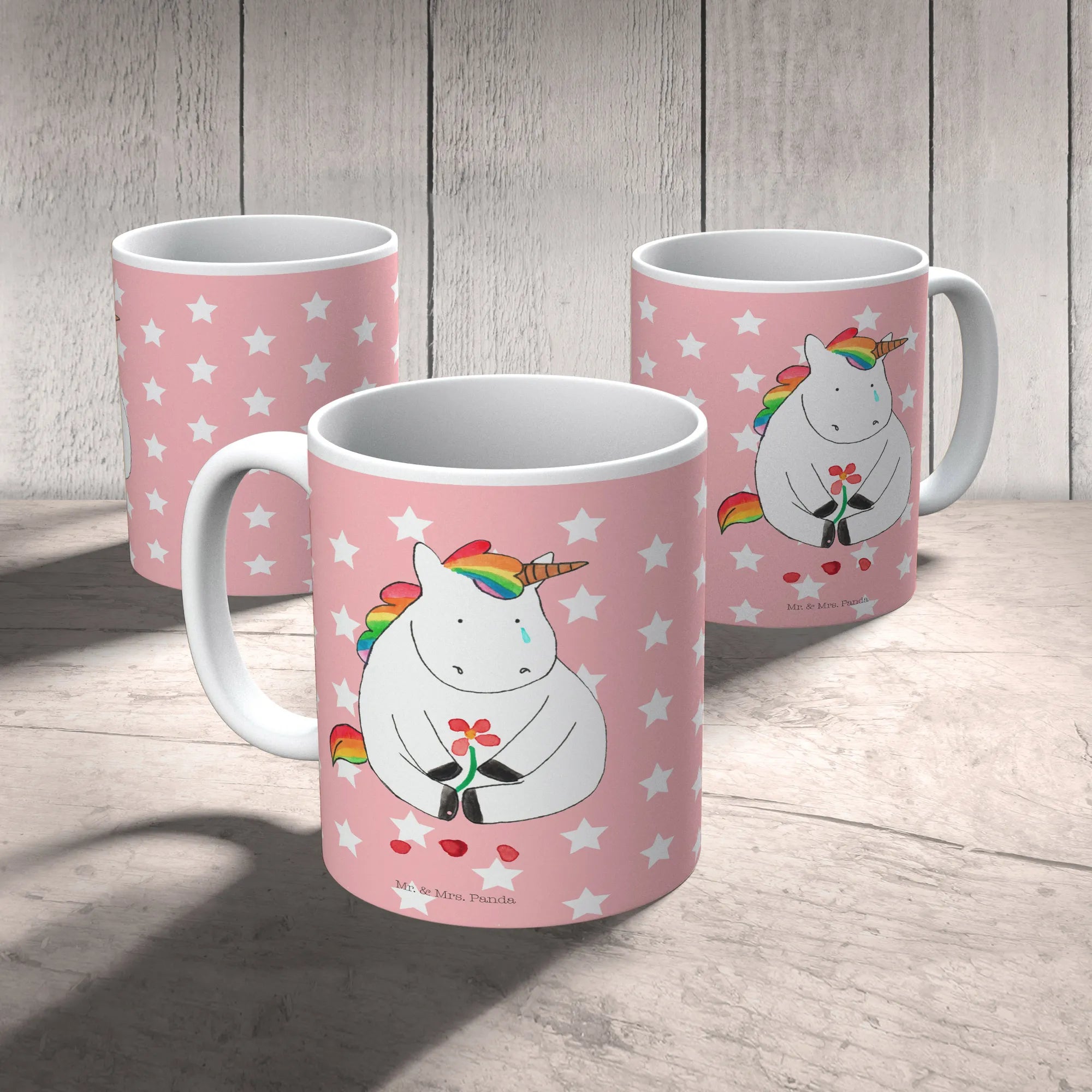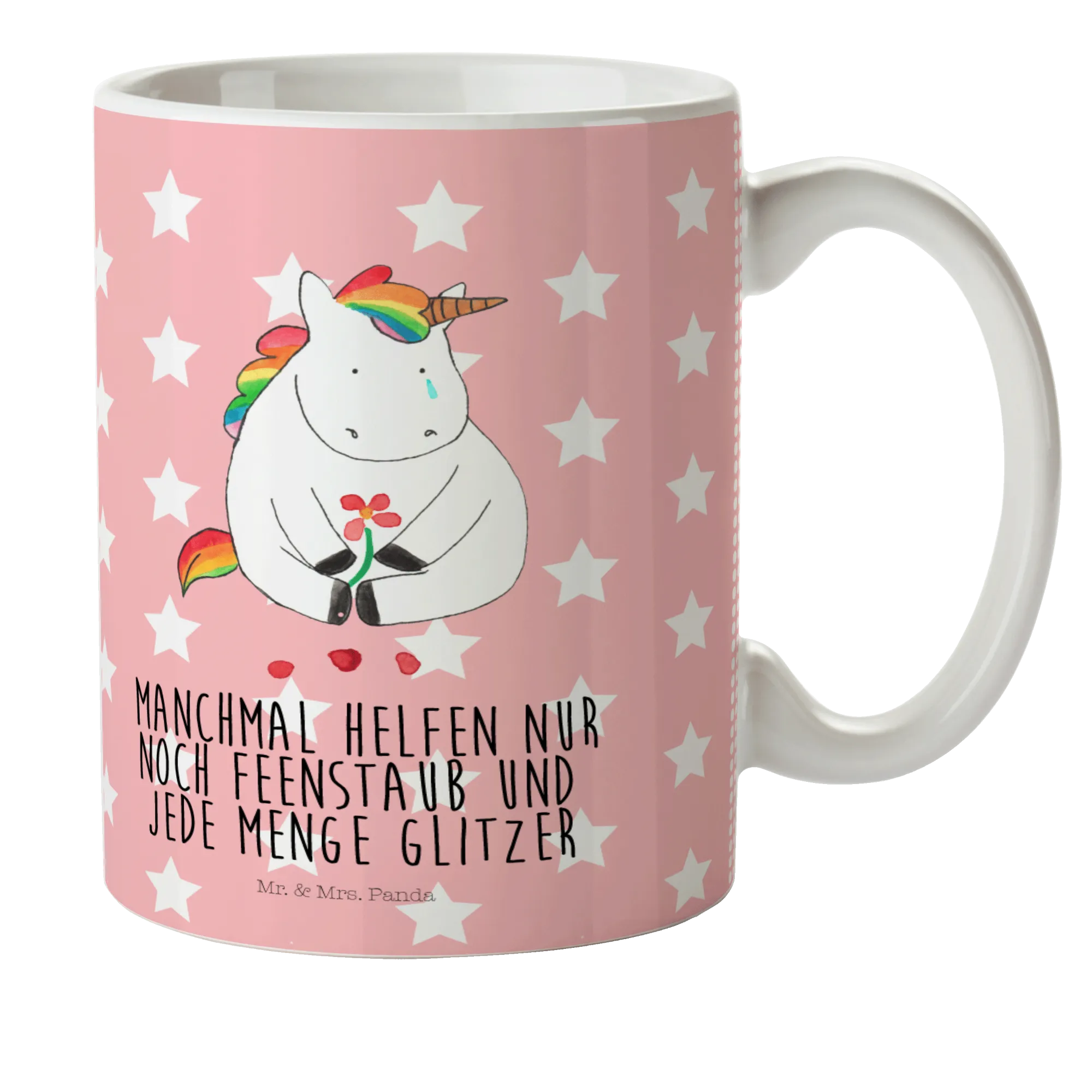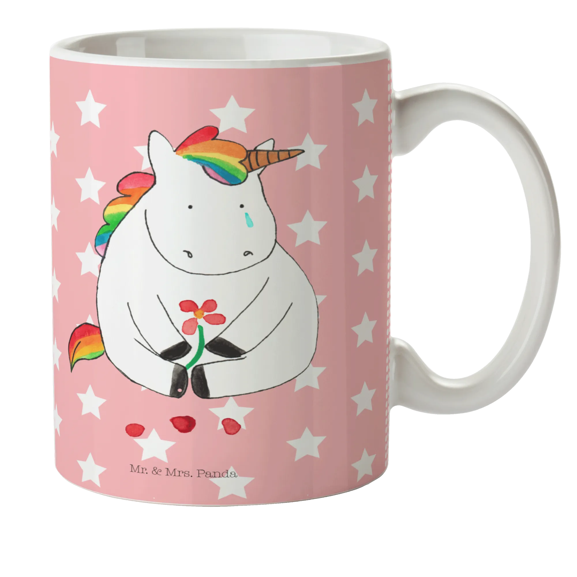 kubek dla dzieci Jednorożec Smutny - z napisem - Pastelowy czerwony