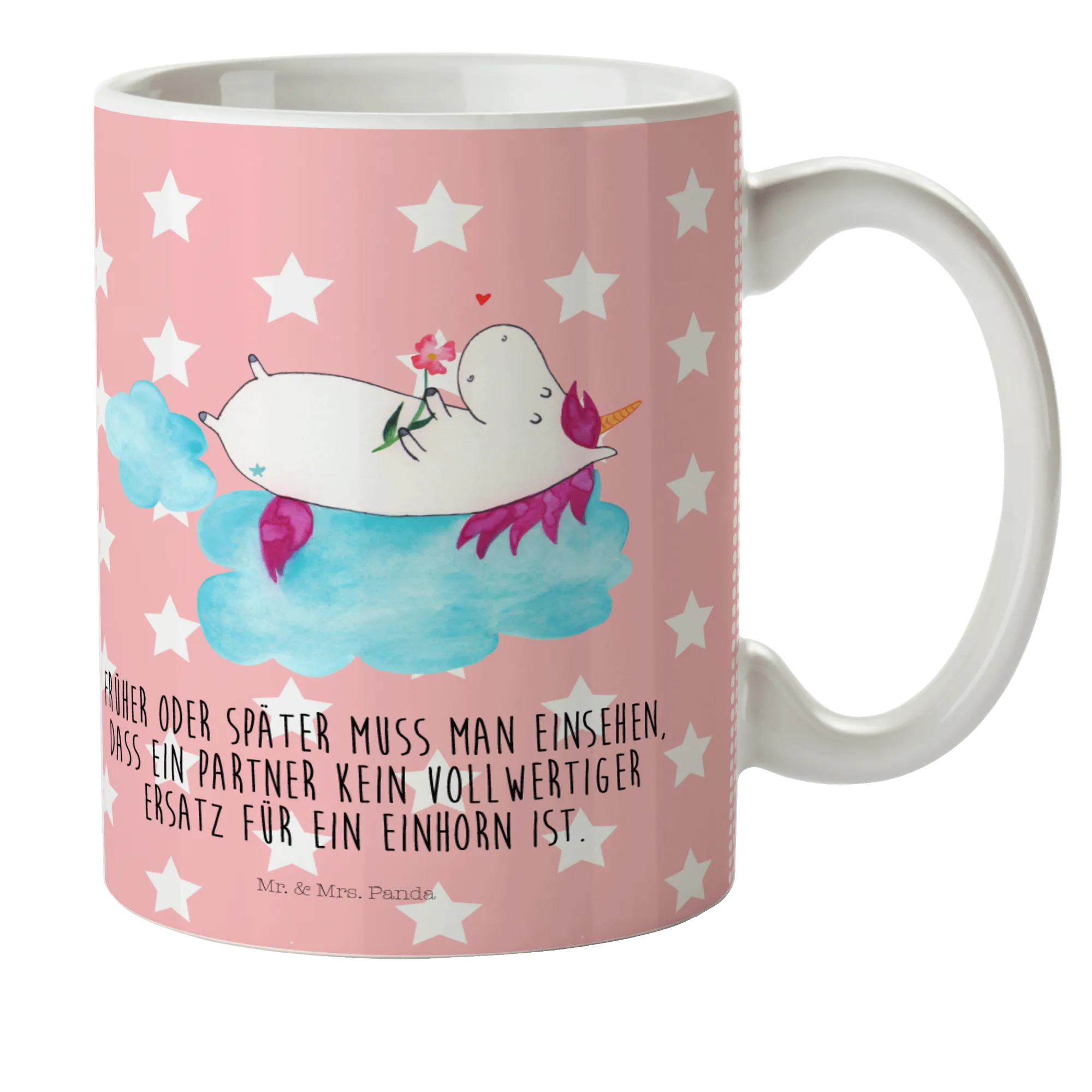 kubek dla dzieci Jednorożec Zakochany - z napisem - Pastelowy czerwony