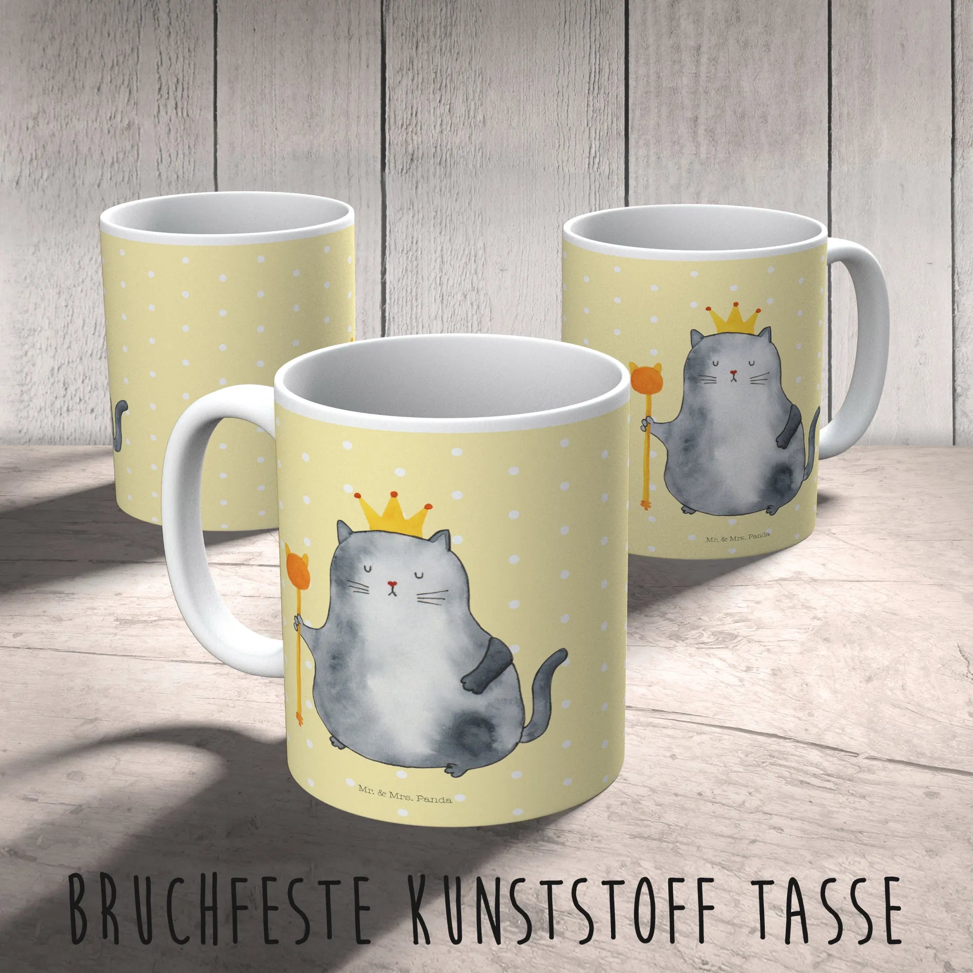 kubek dla dzieci kot Król - z napisem - Żółty Pastel