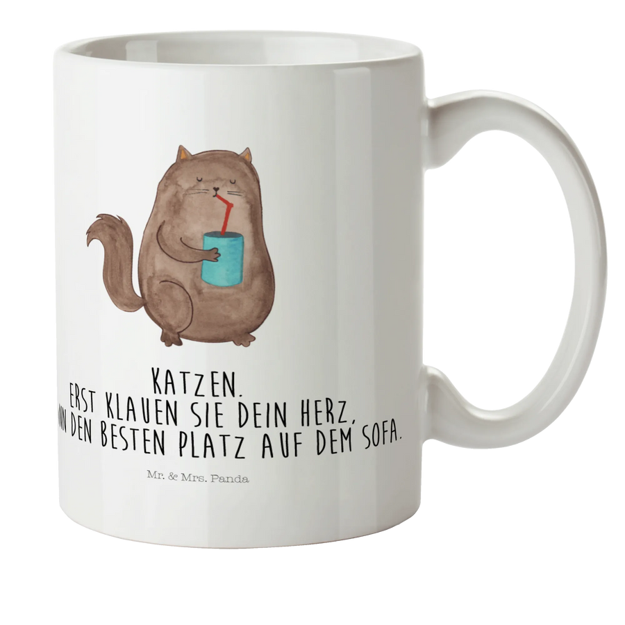 kubek dla dzieci kot puszka - z napisem - biały