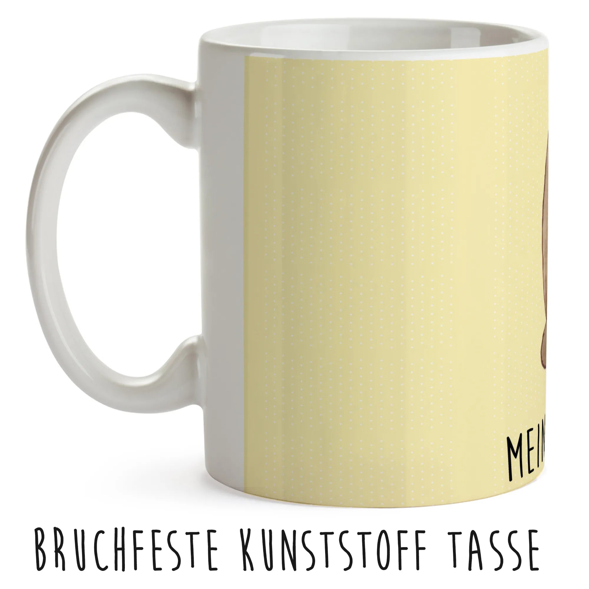 kubek dla dzieci kot siedzenie - z napisem - Pastelowy żółty