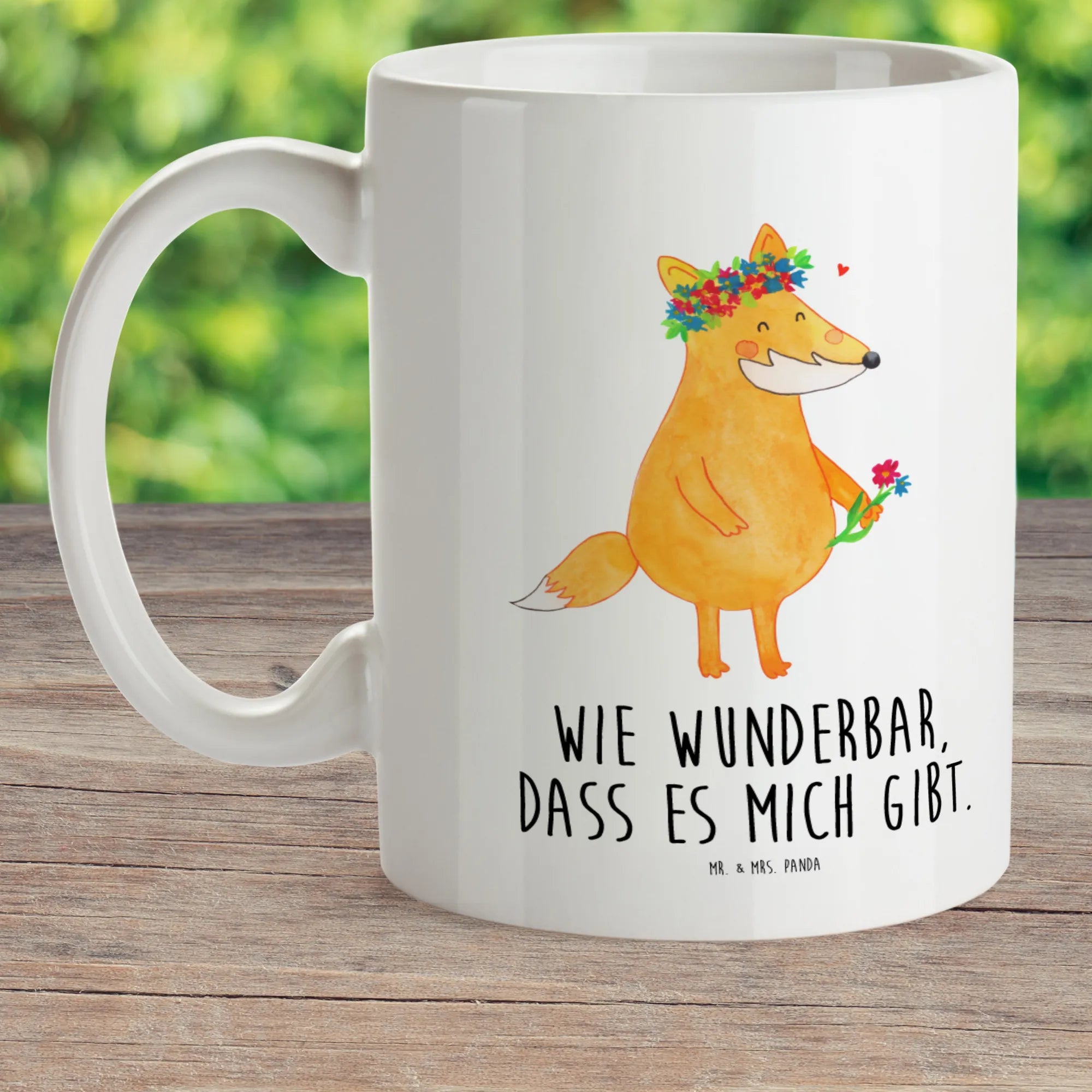 kubek dla dzieci lis Kwiaty - z napisem - biały