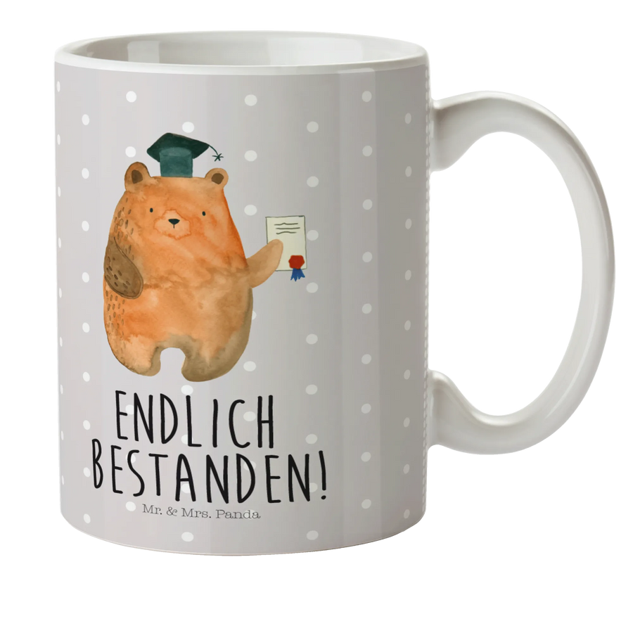 kubek dla dzieci Niedźwiedź Egzamin - z napisem - Szary Pastel