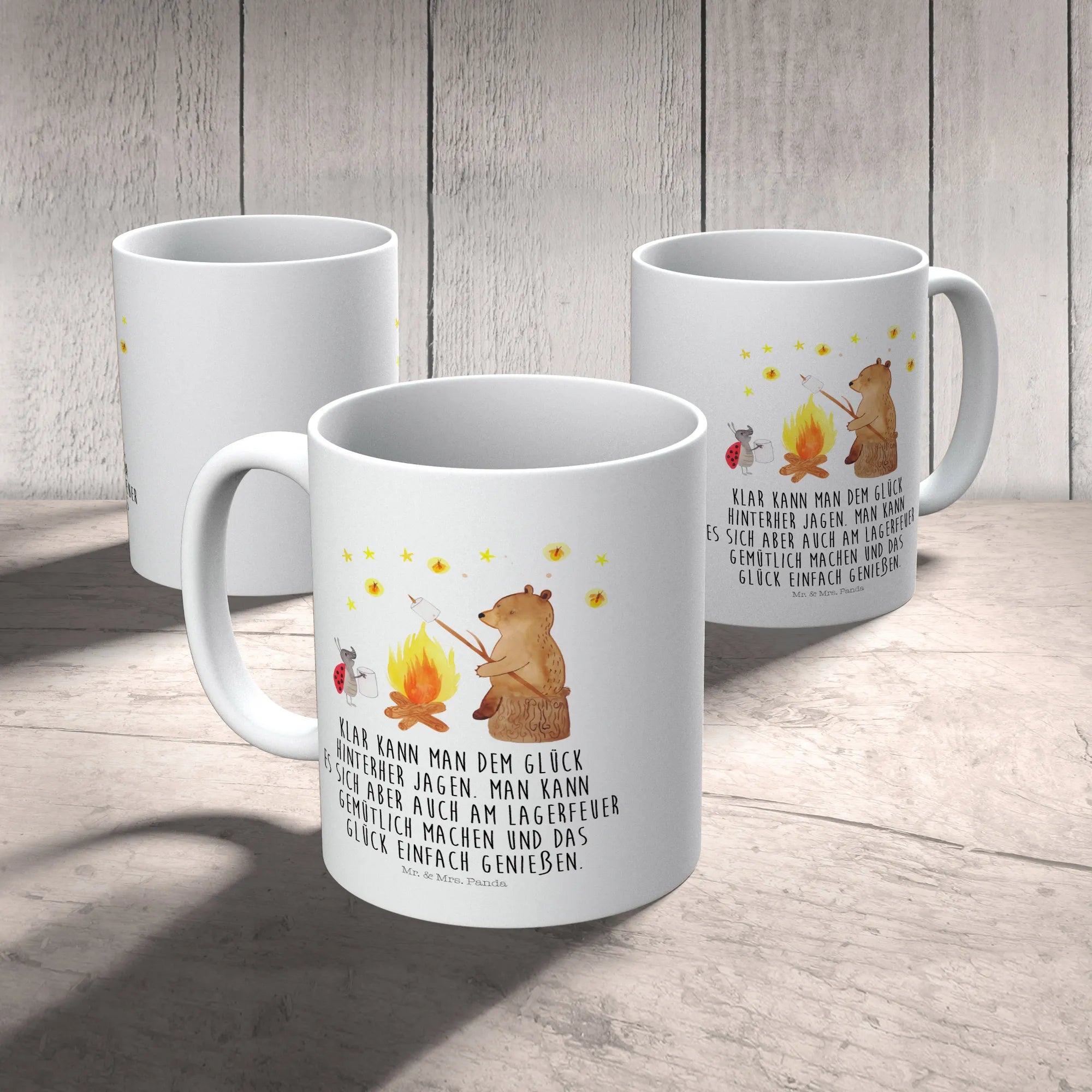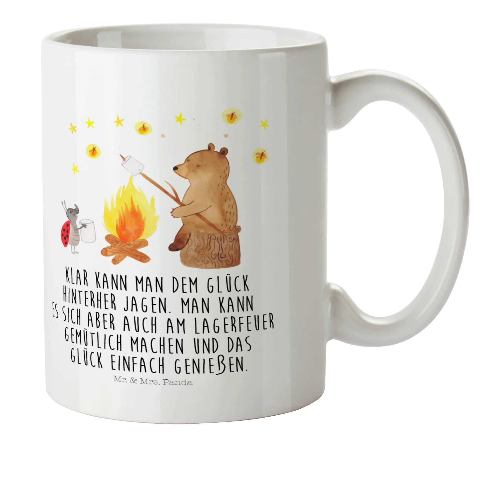 kubek dla dzieci Niedźwiedź i biedronka przy ognisku - z napisem