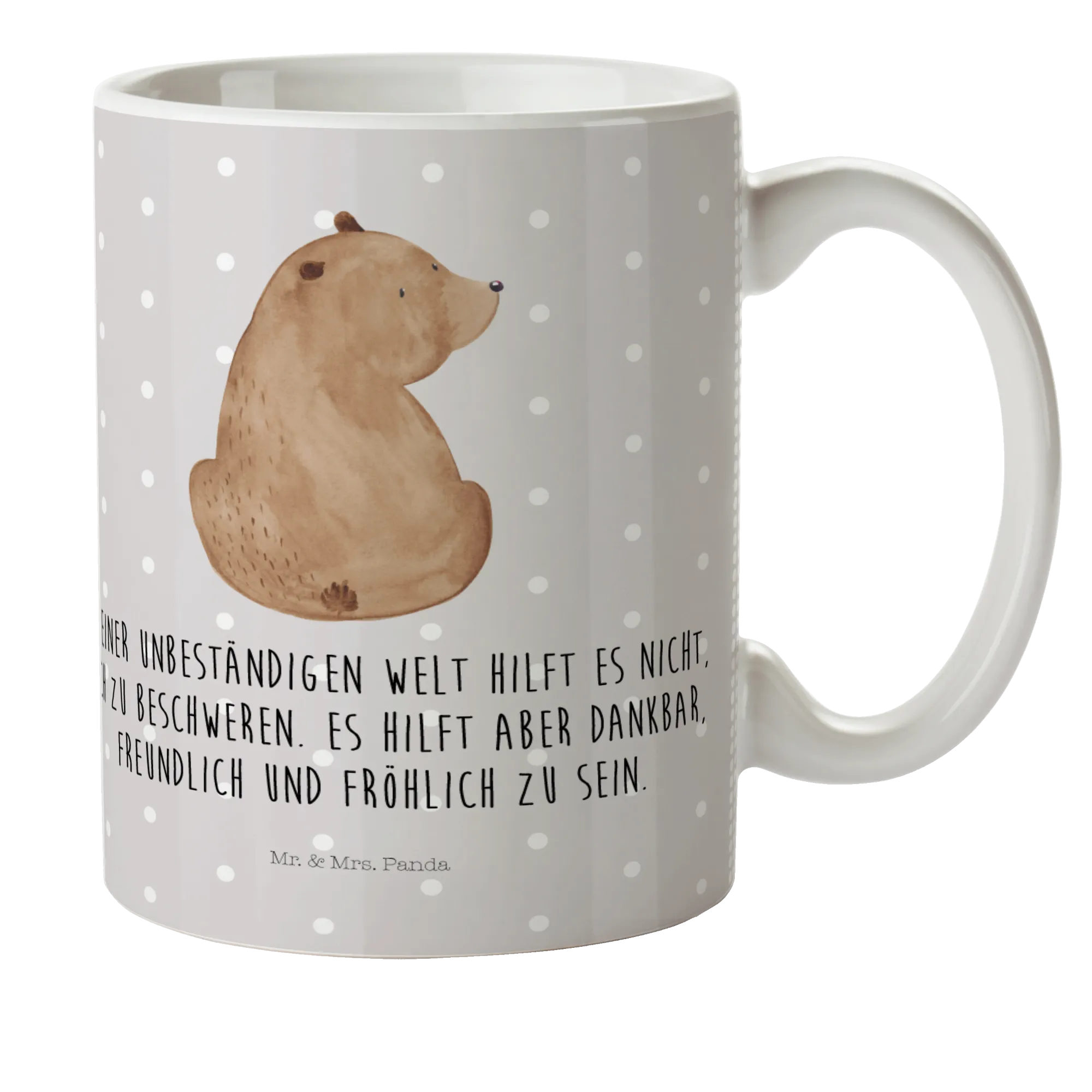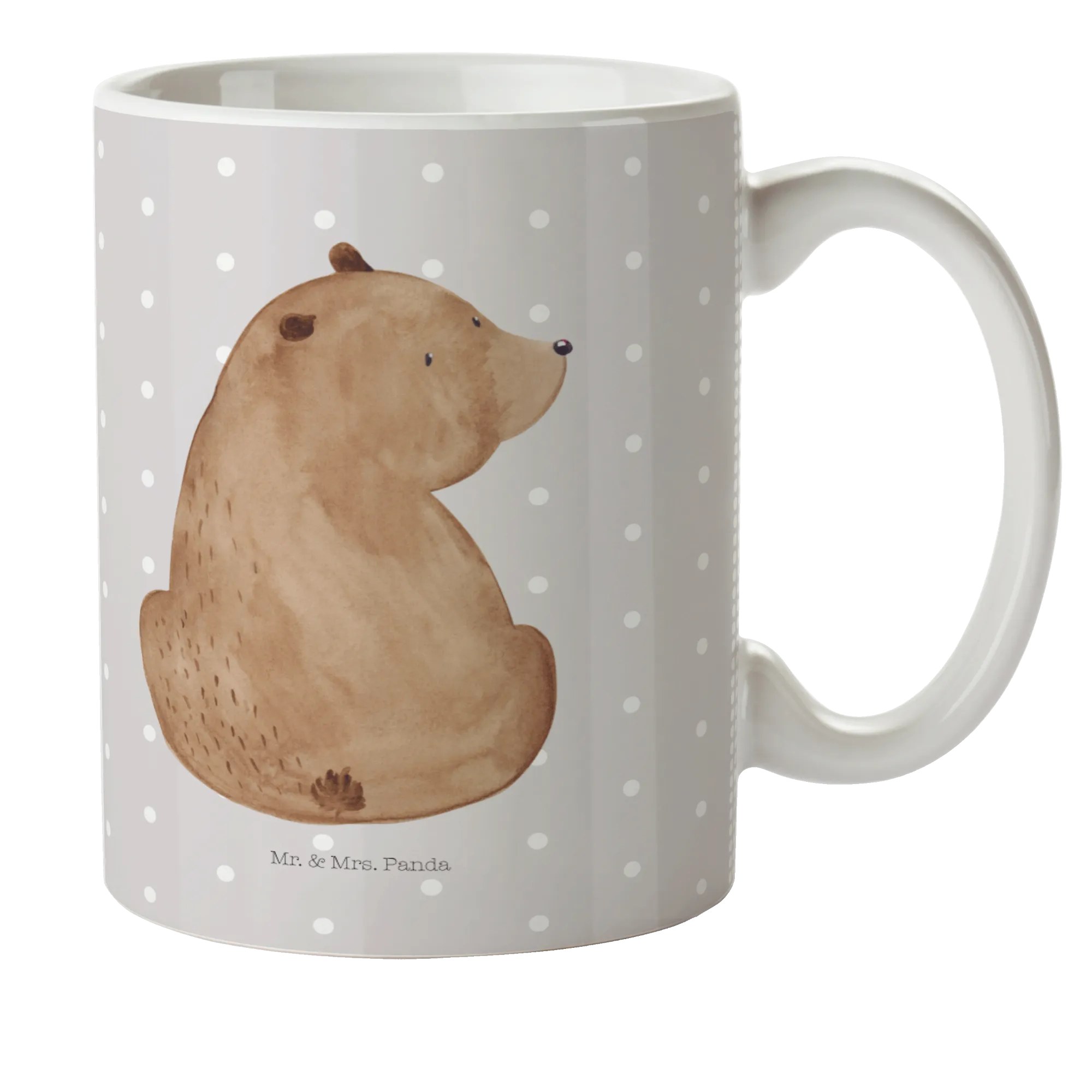 kubek dla dzieci niedźwiedź spojrzenie przez ramię - z napisem - Szary Pastel