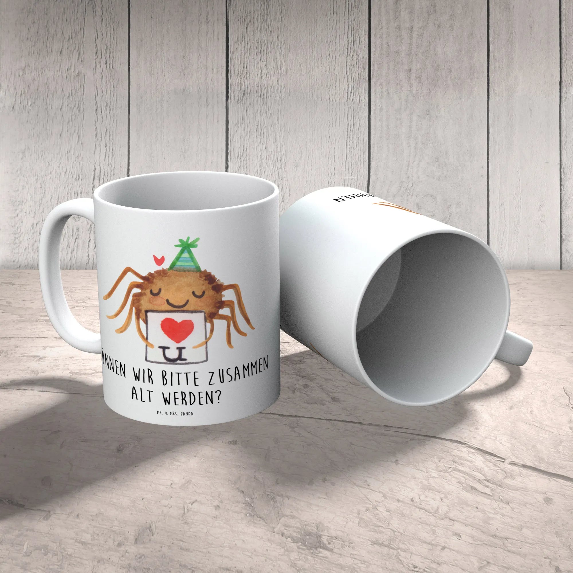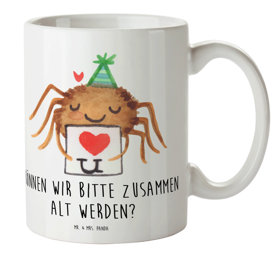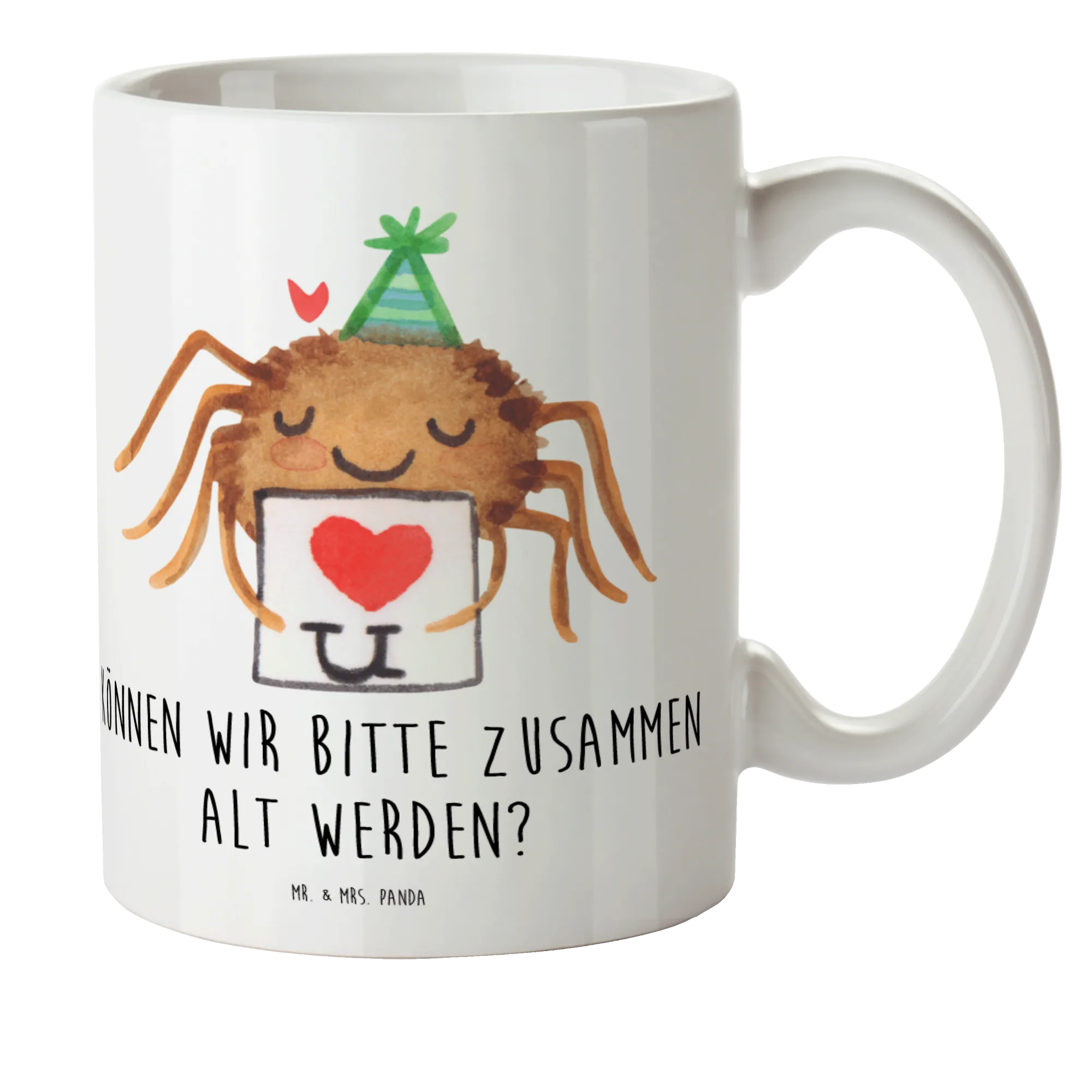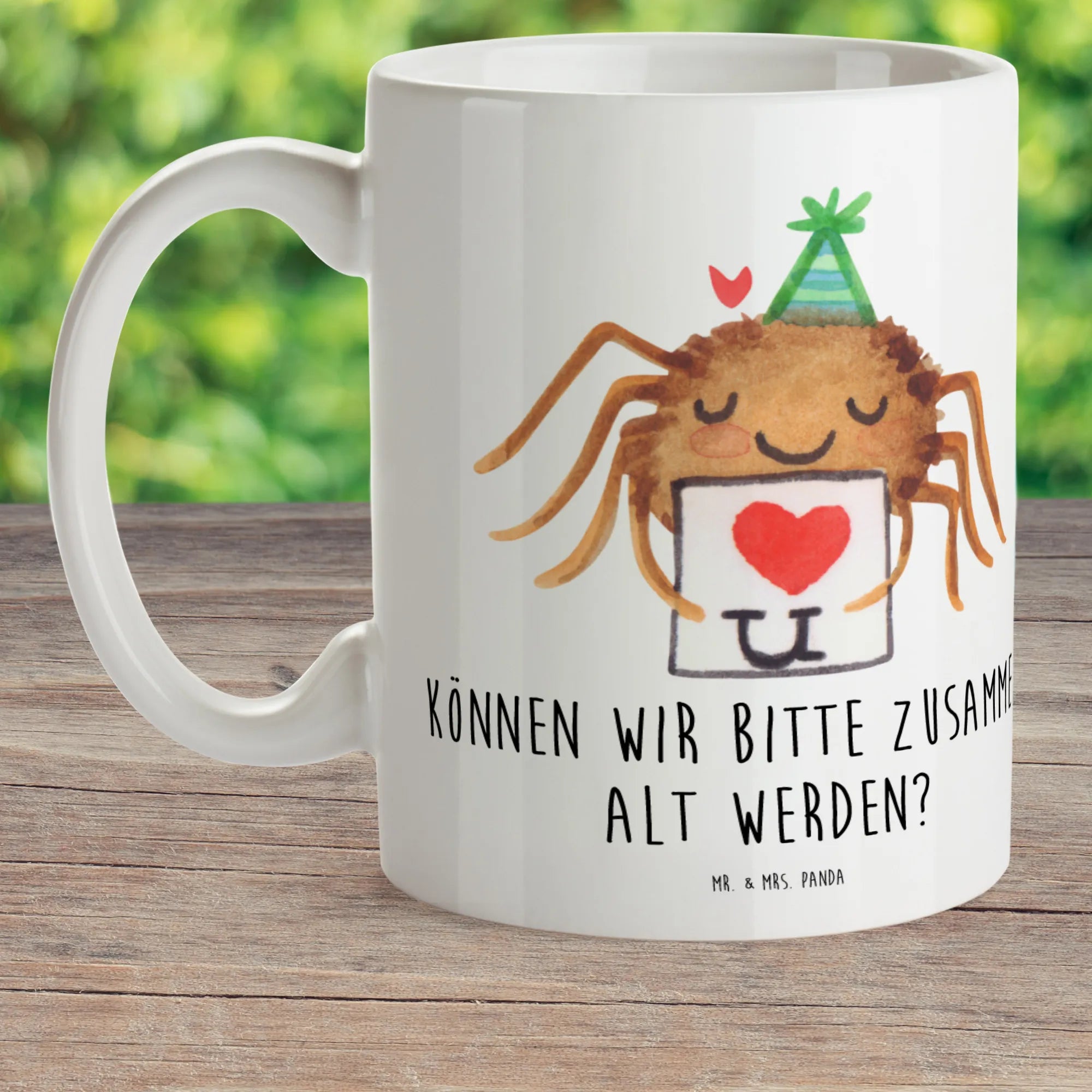 Das Wortspiel unter dem Bild - 'Können wir bitte zusammen alt werden?' - verleiht der Tasse eine romantische Note und fördert das Gefühl von Liebe und Freundschaft. Egal, ob zum Geburtstag, zum Abschied in den Kindergarten oder einfach als kleine Aufmerksamkeit zwischendurch, die Spinne Agathe Tasse bringt ein Lächeln in jedes Kinderzimmer!