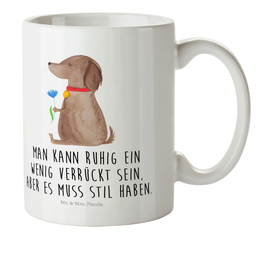 kubek dla dzieci pies kwiat - z napisem - Biały