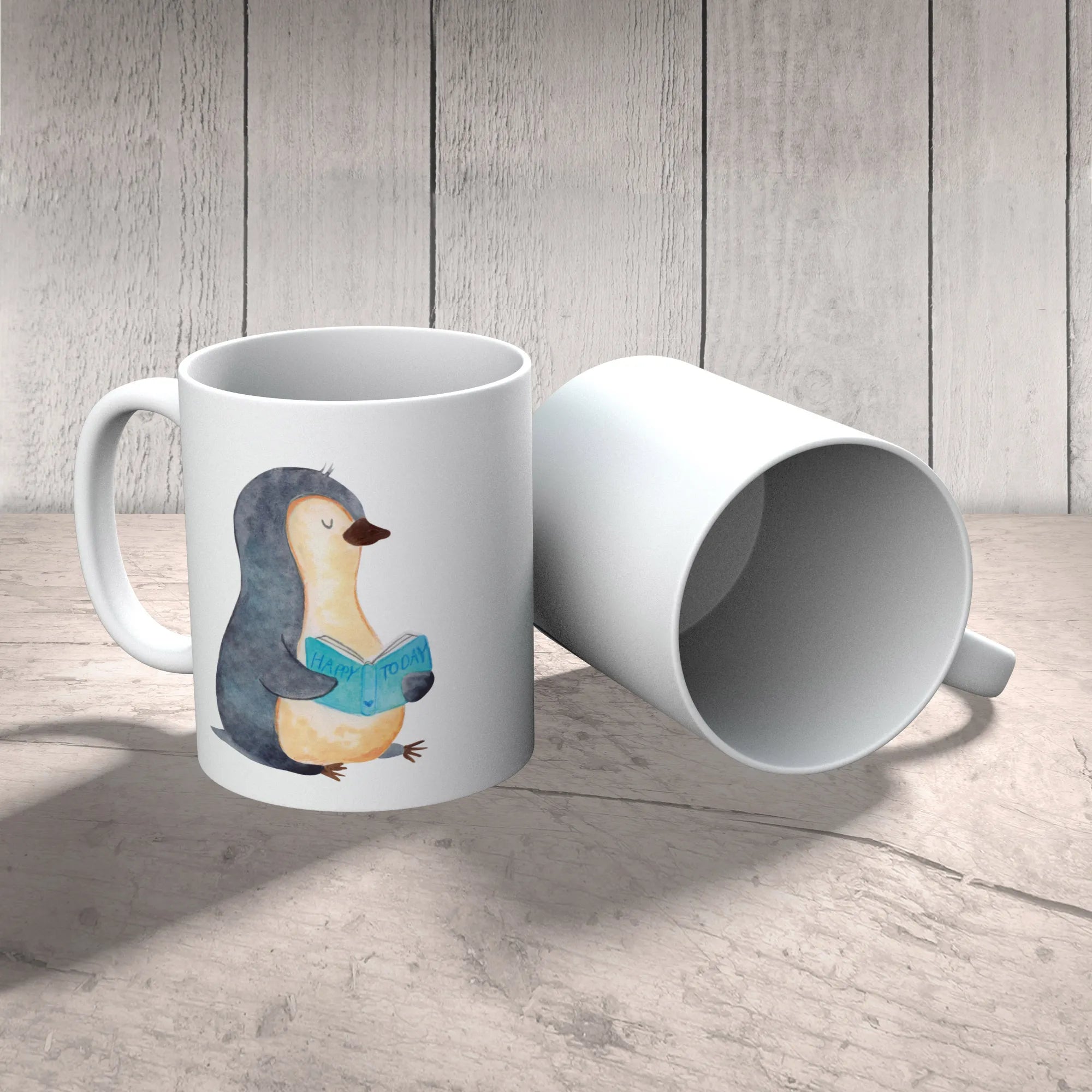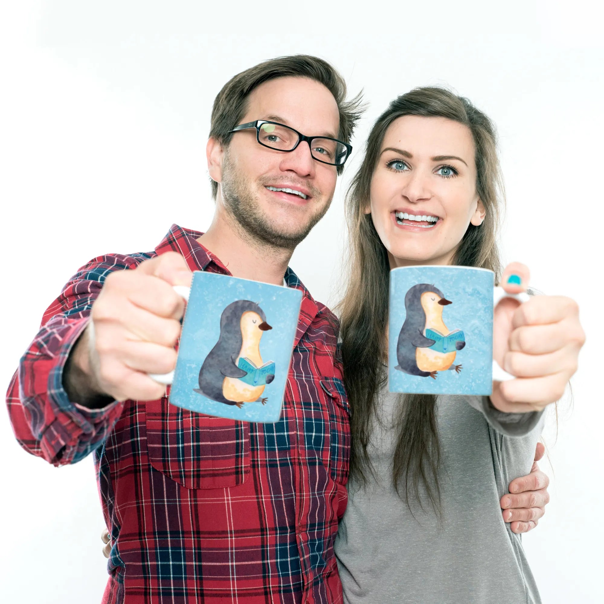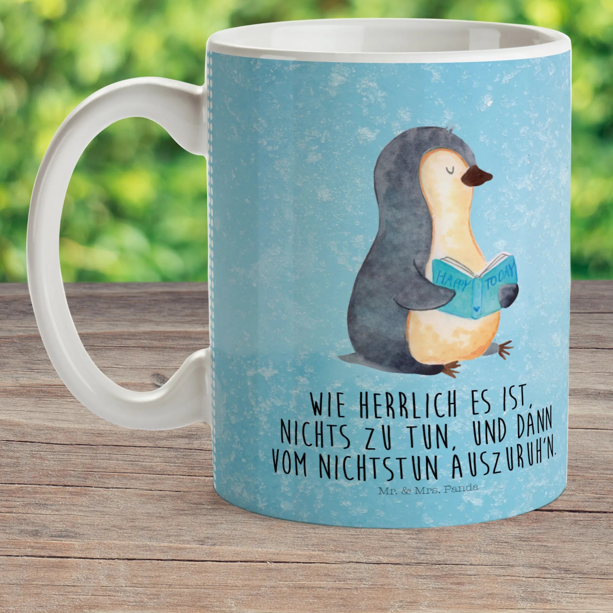 kubek dla dzieci pingwin książka - z napisem - Eisblau