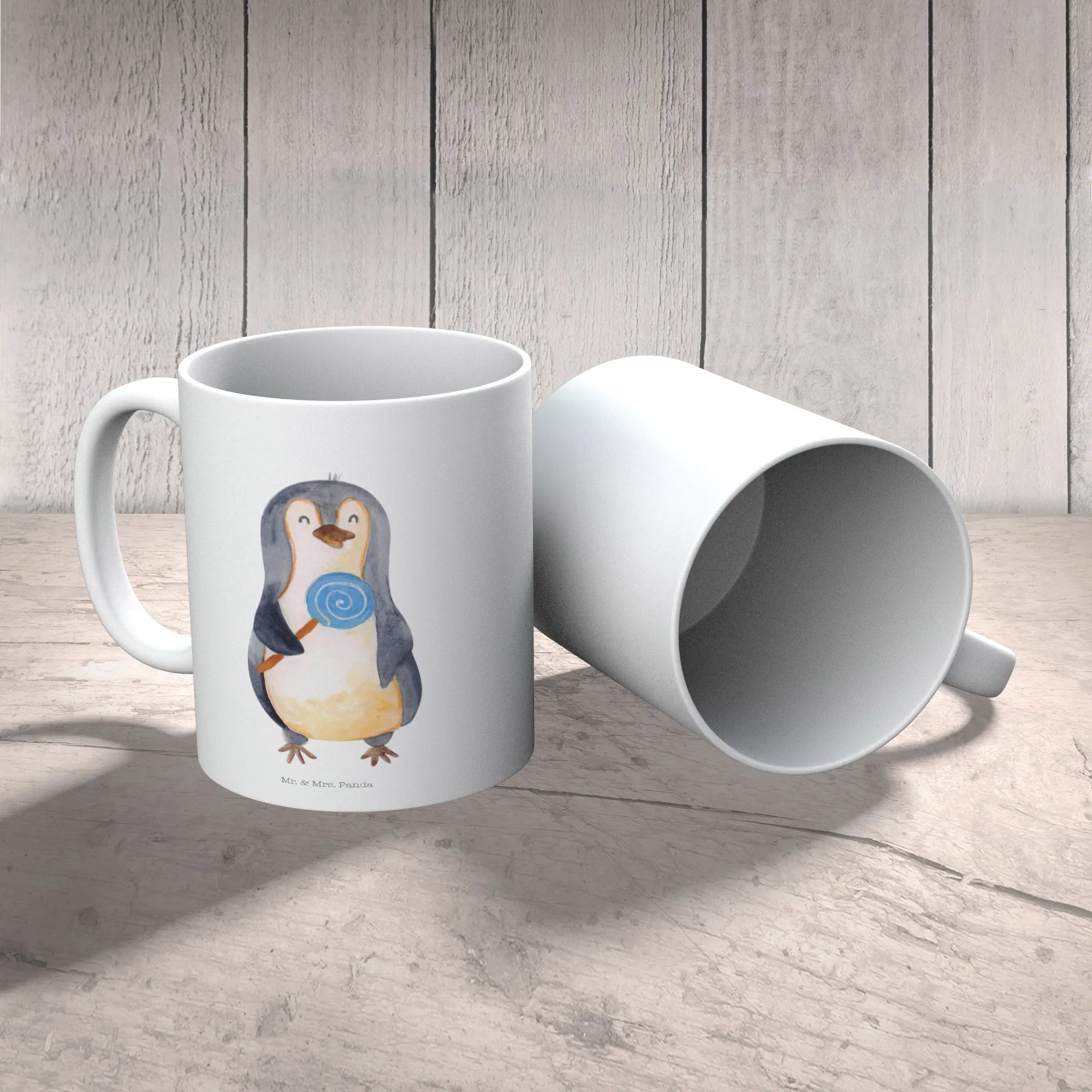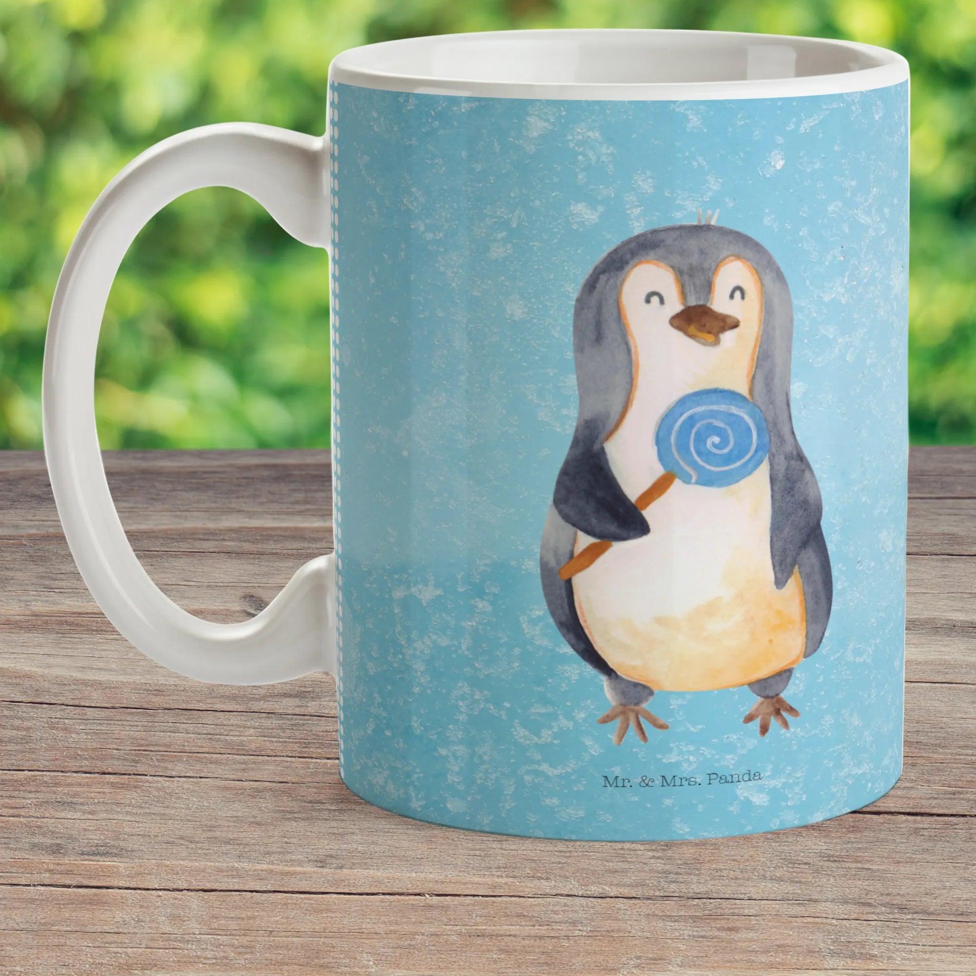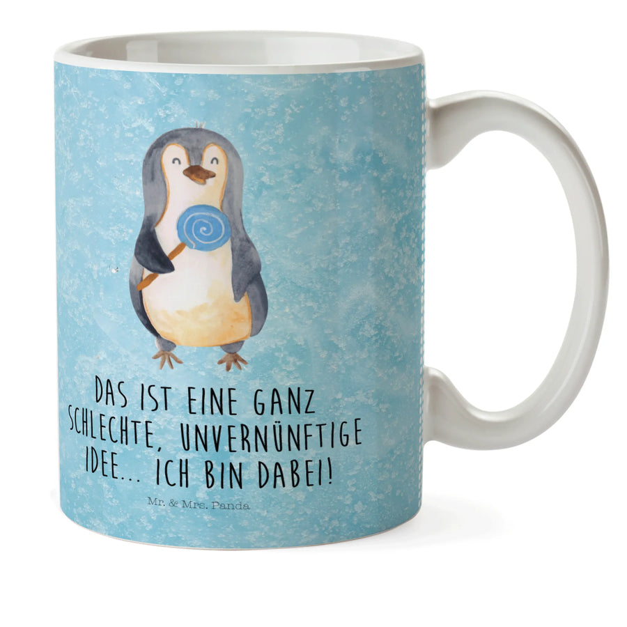 kubek dla dzieci pingwin lizak - z napisem - lodowoniebieski