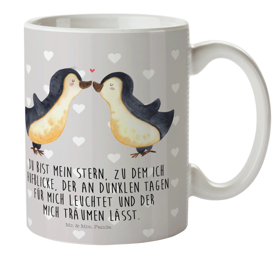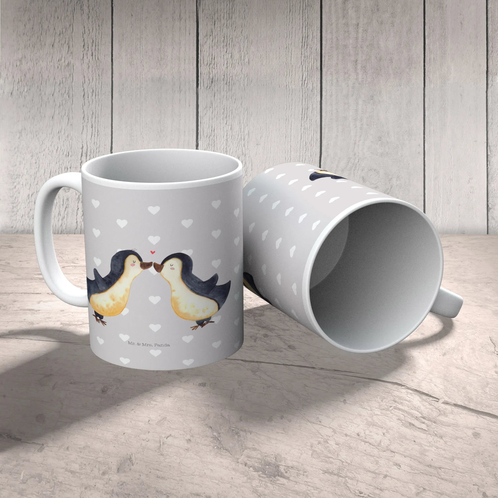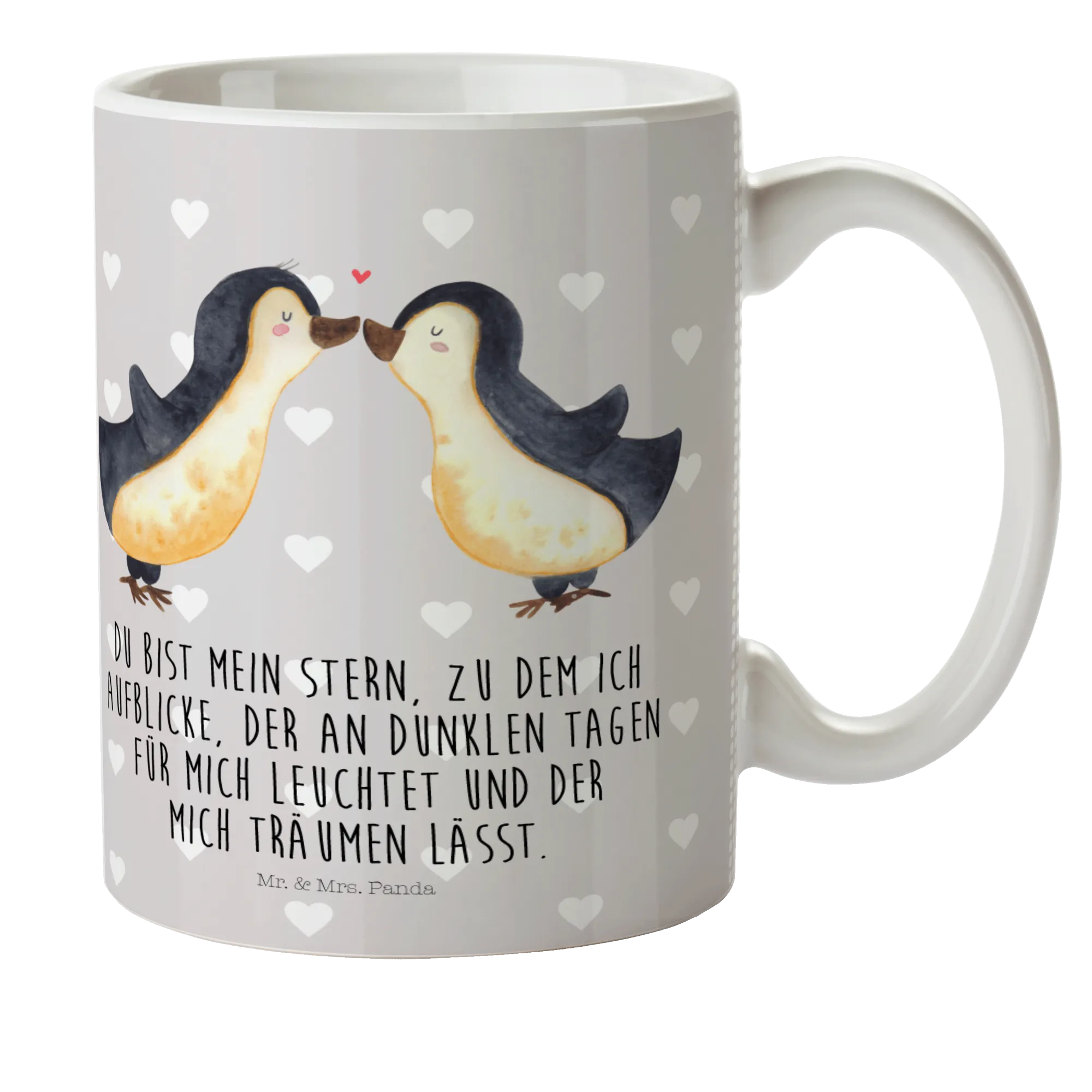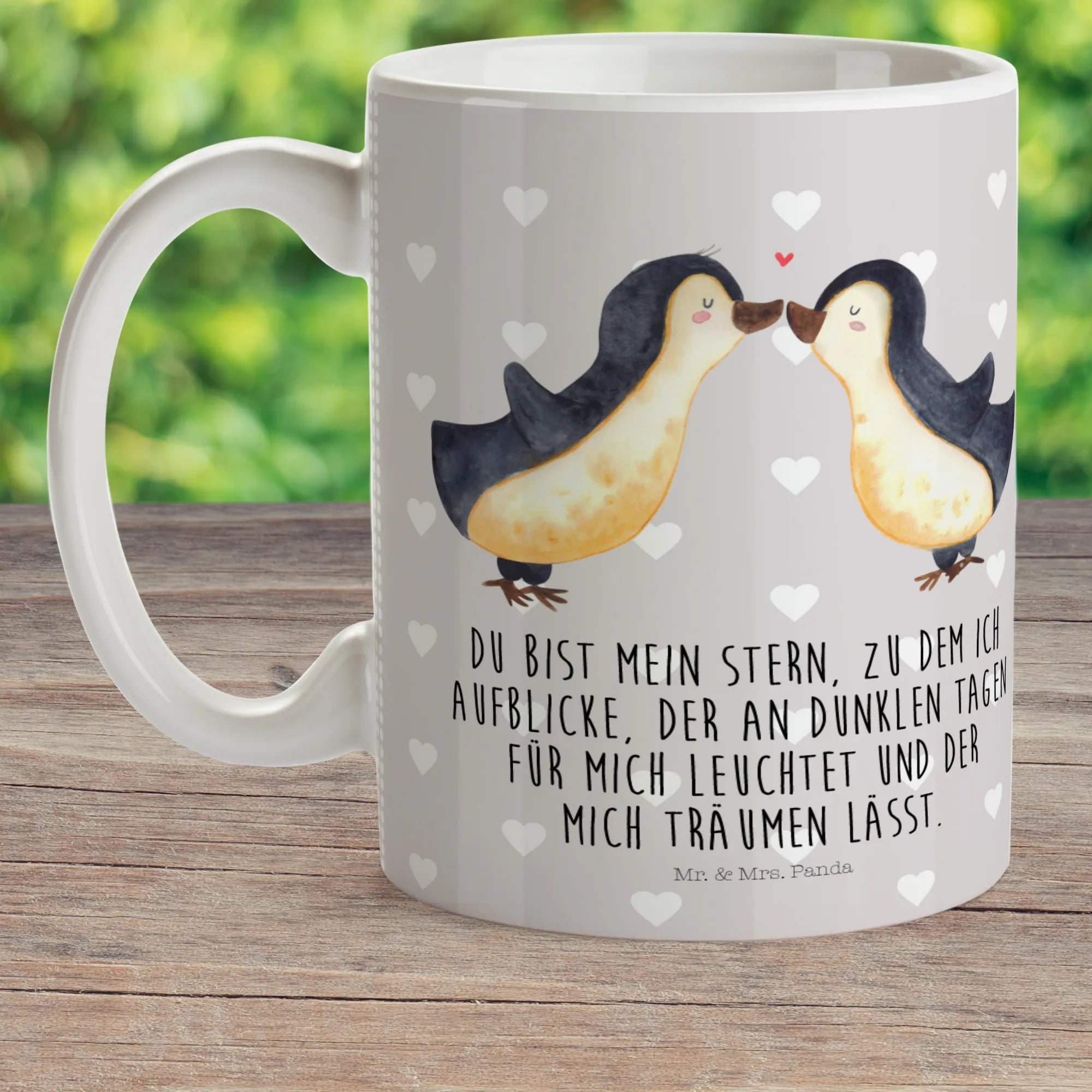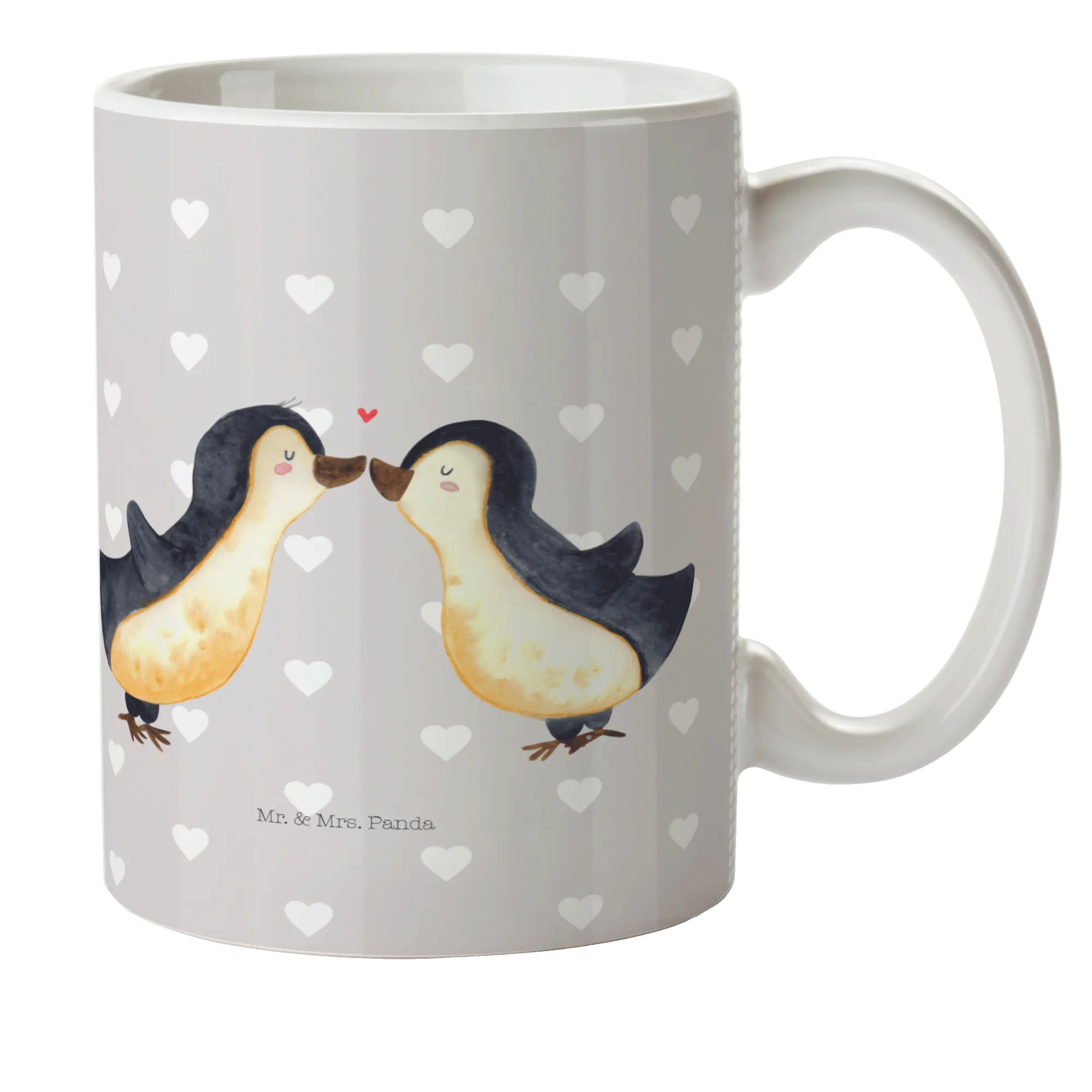 kubek dla dzieci Pingwin Miłość - z napisem - Pastelowy szary