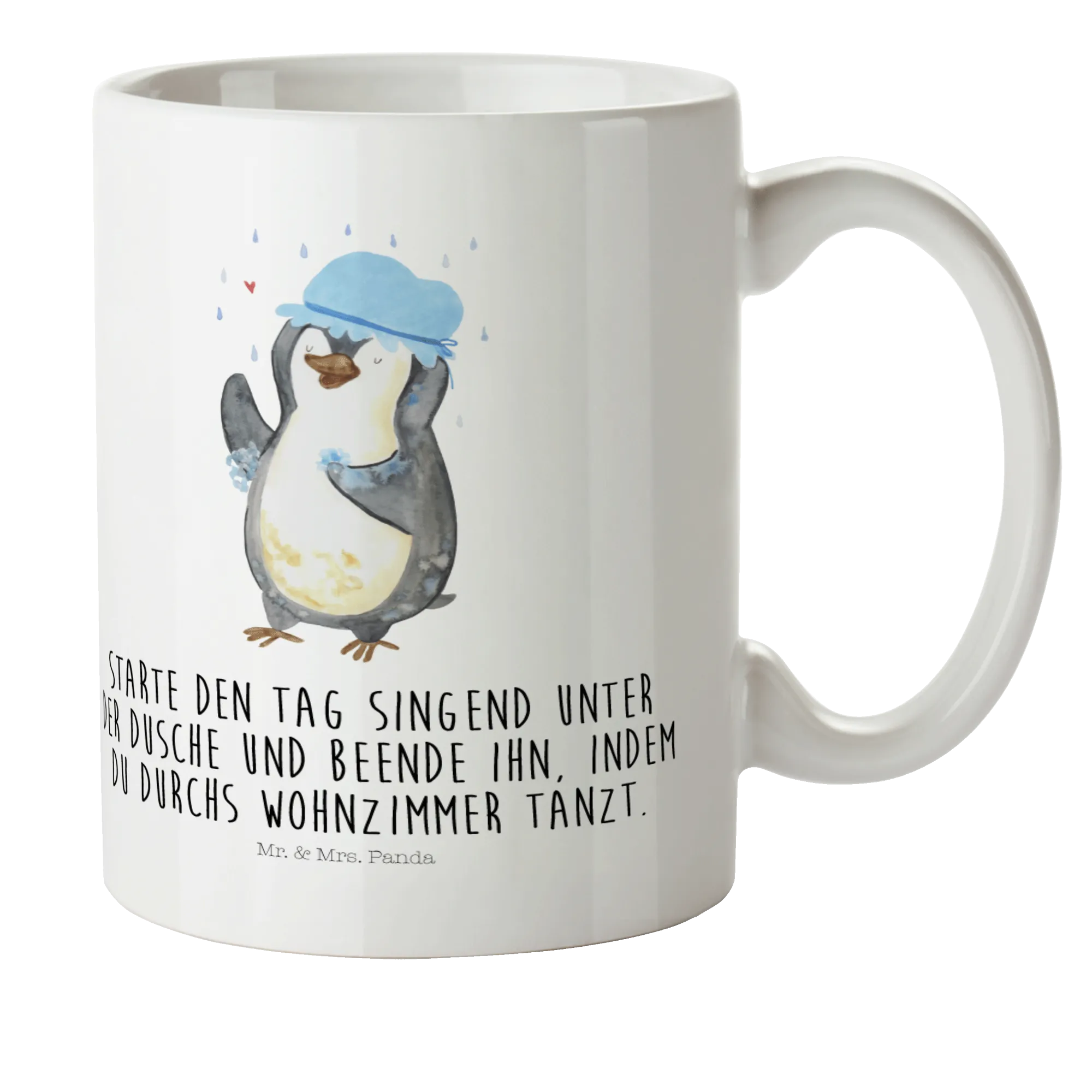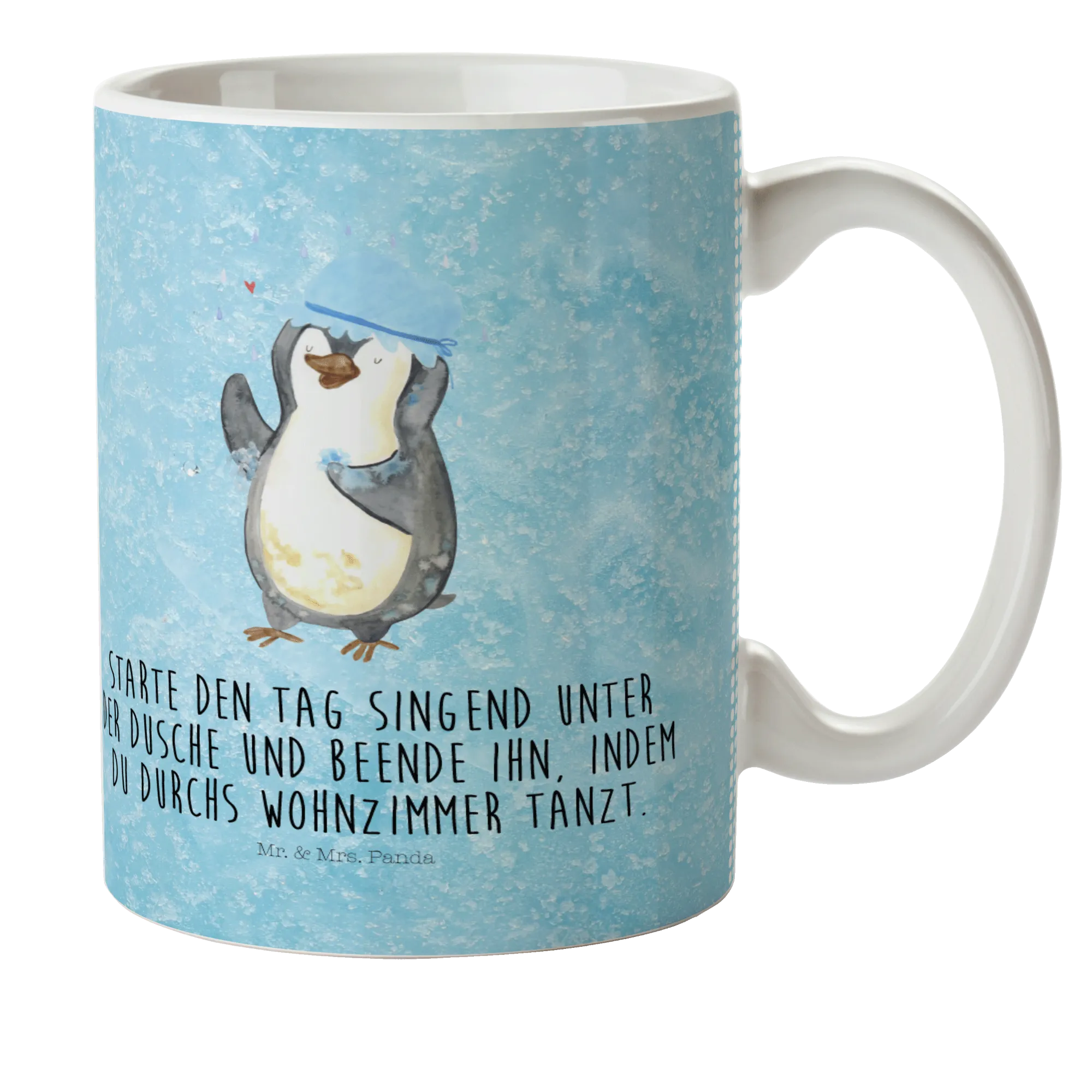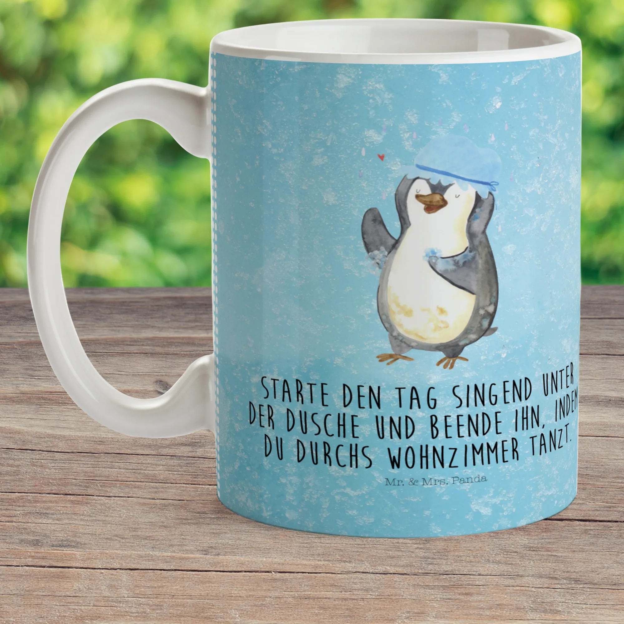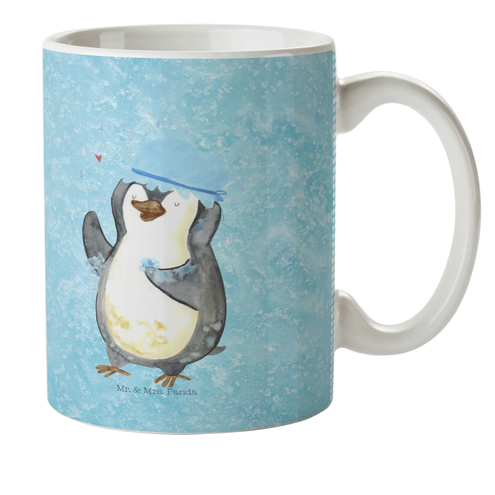 kubek dla dzieci Pingwin Prysznic - z napisem - lodowoniebieski