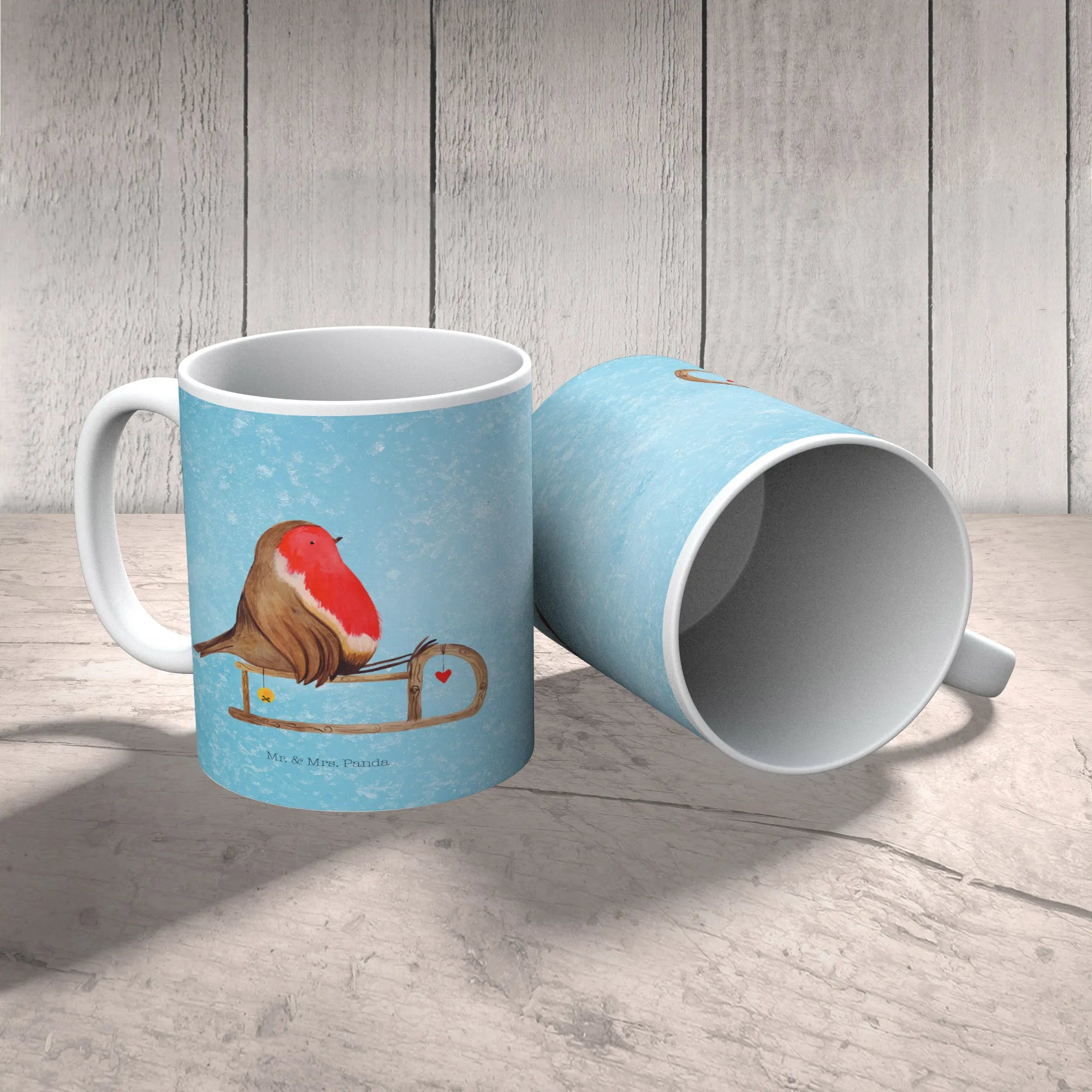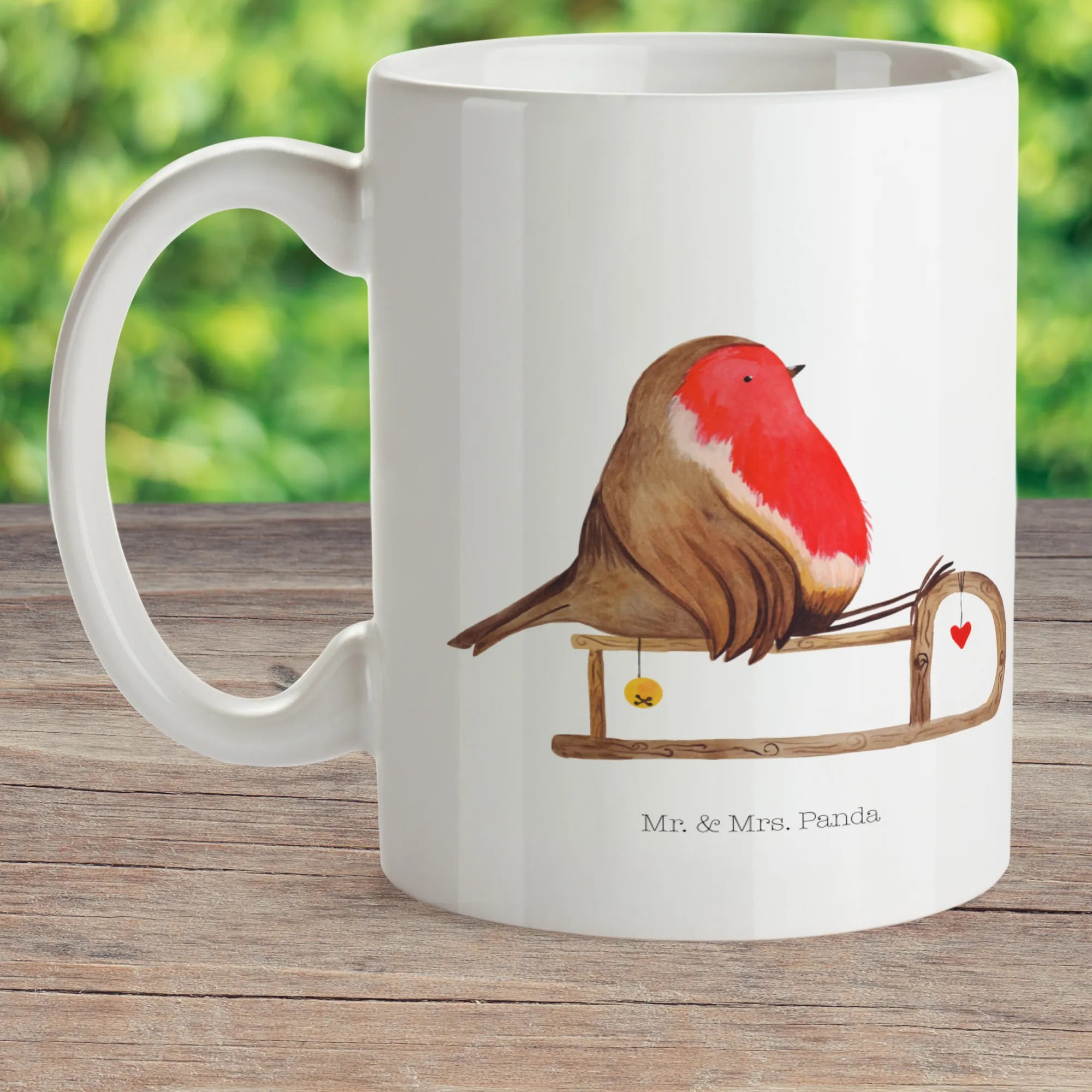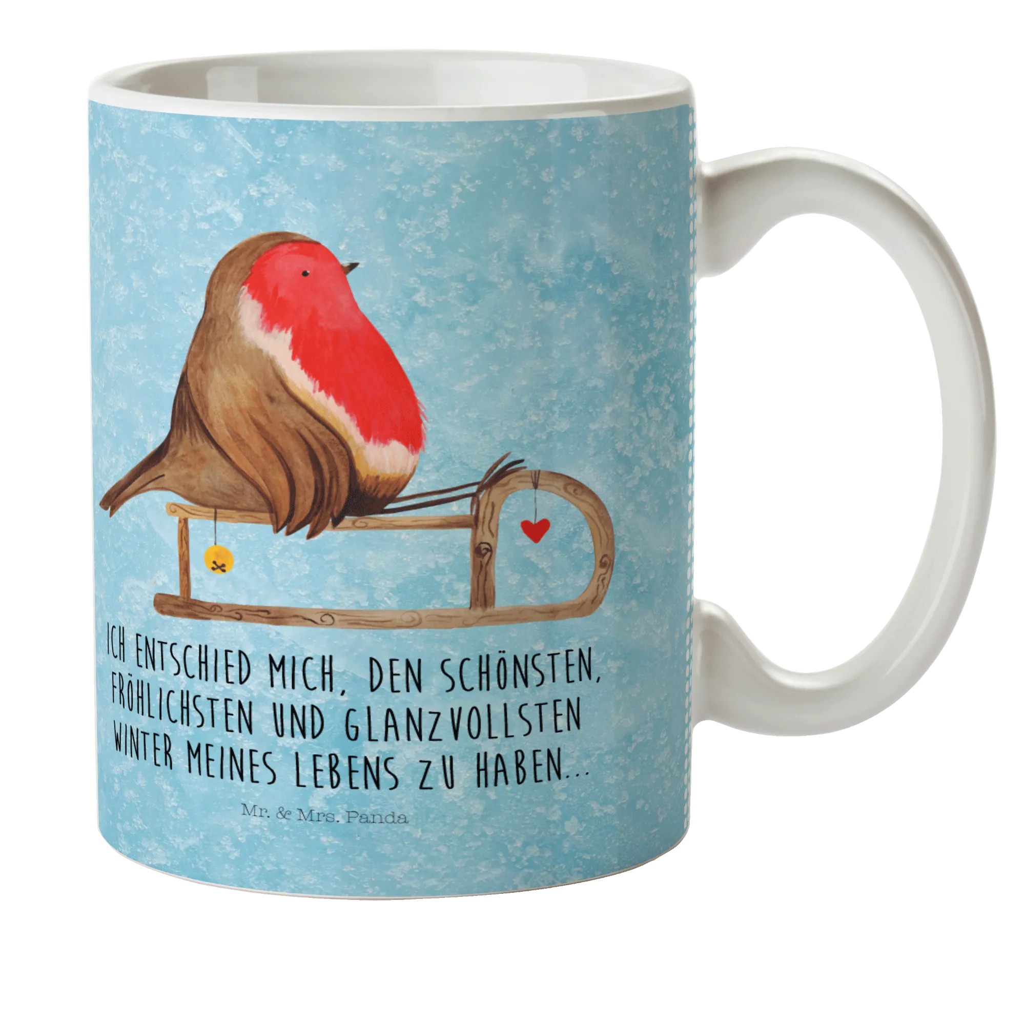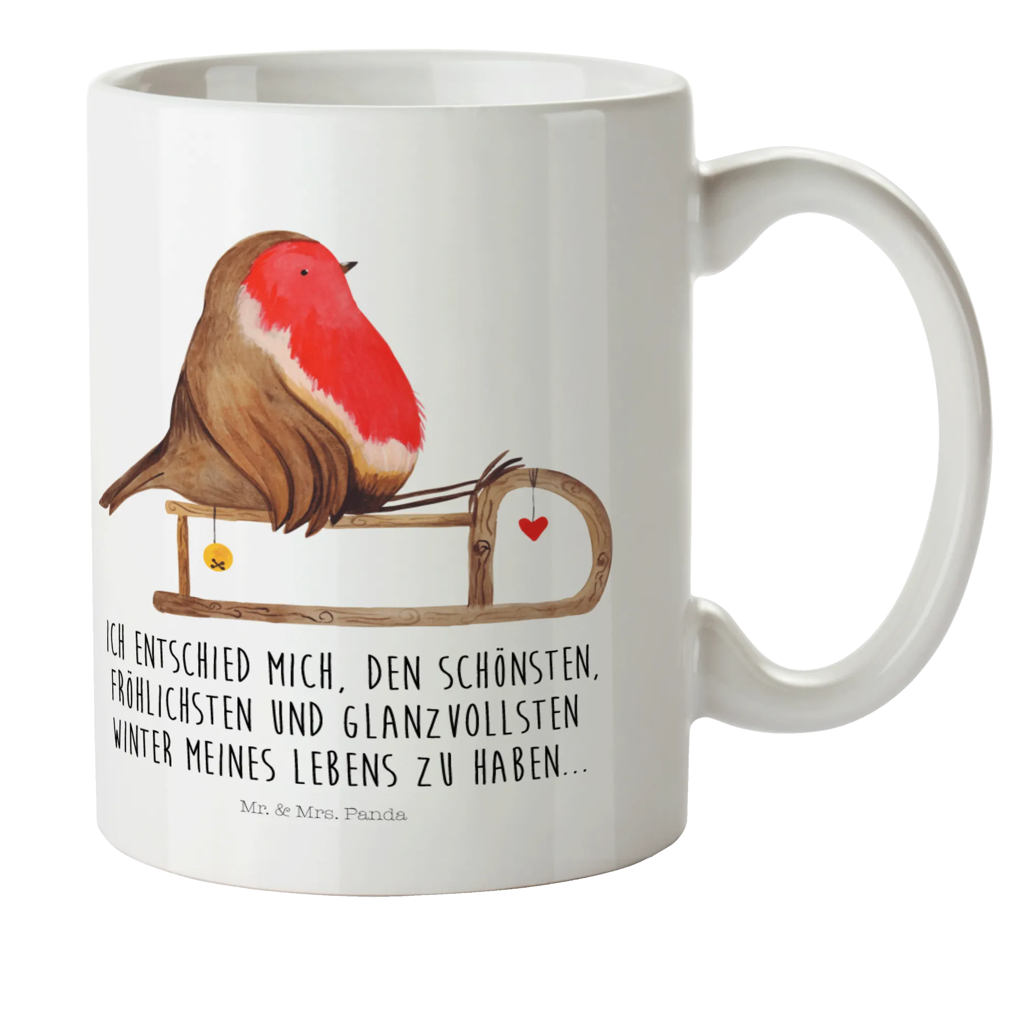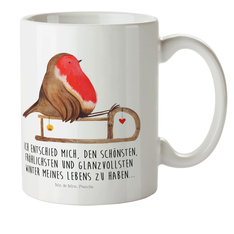 kubek dla dzieci rudzik sanki - z napisem - biały