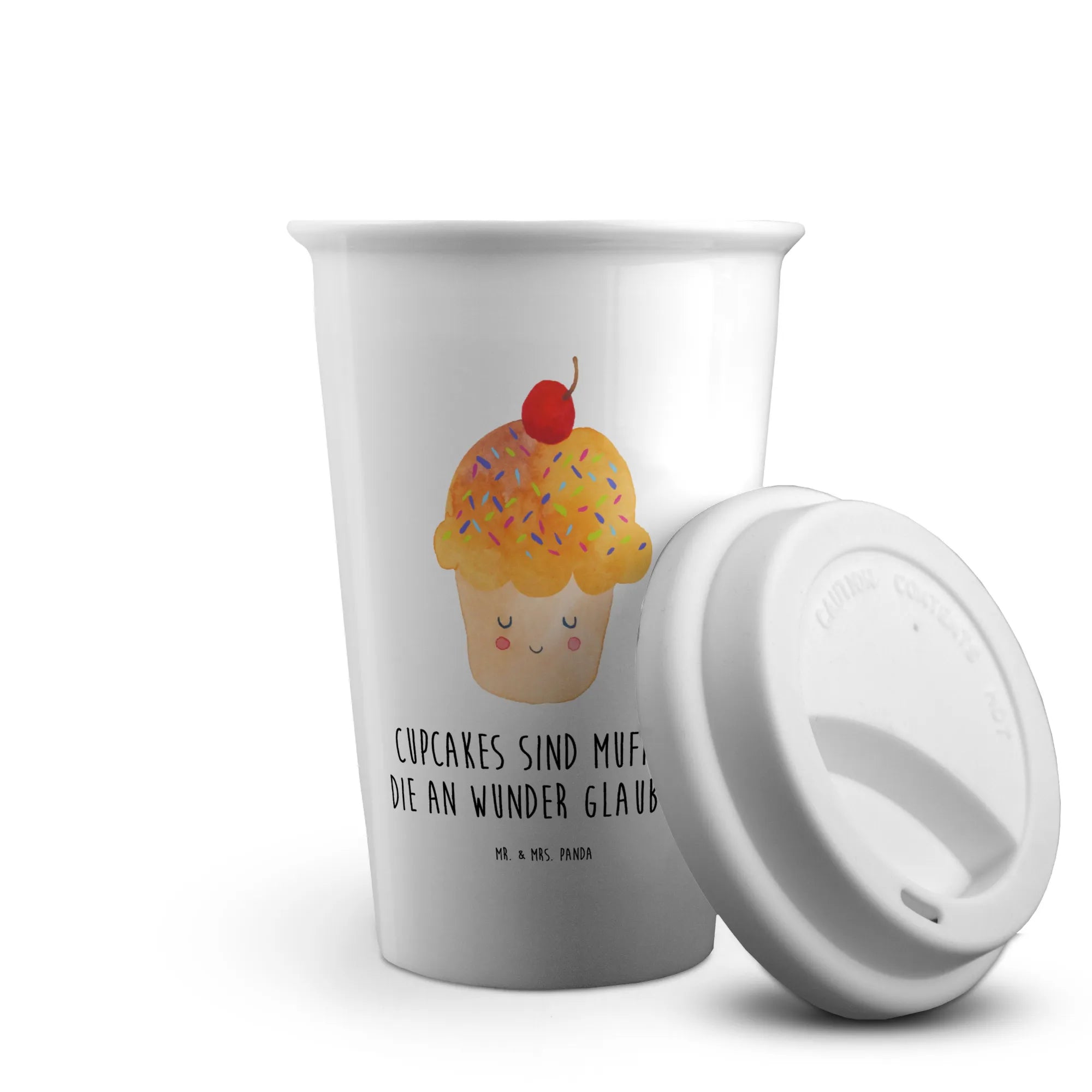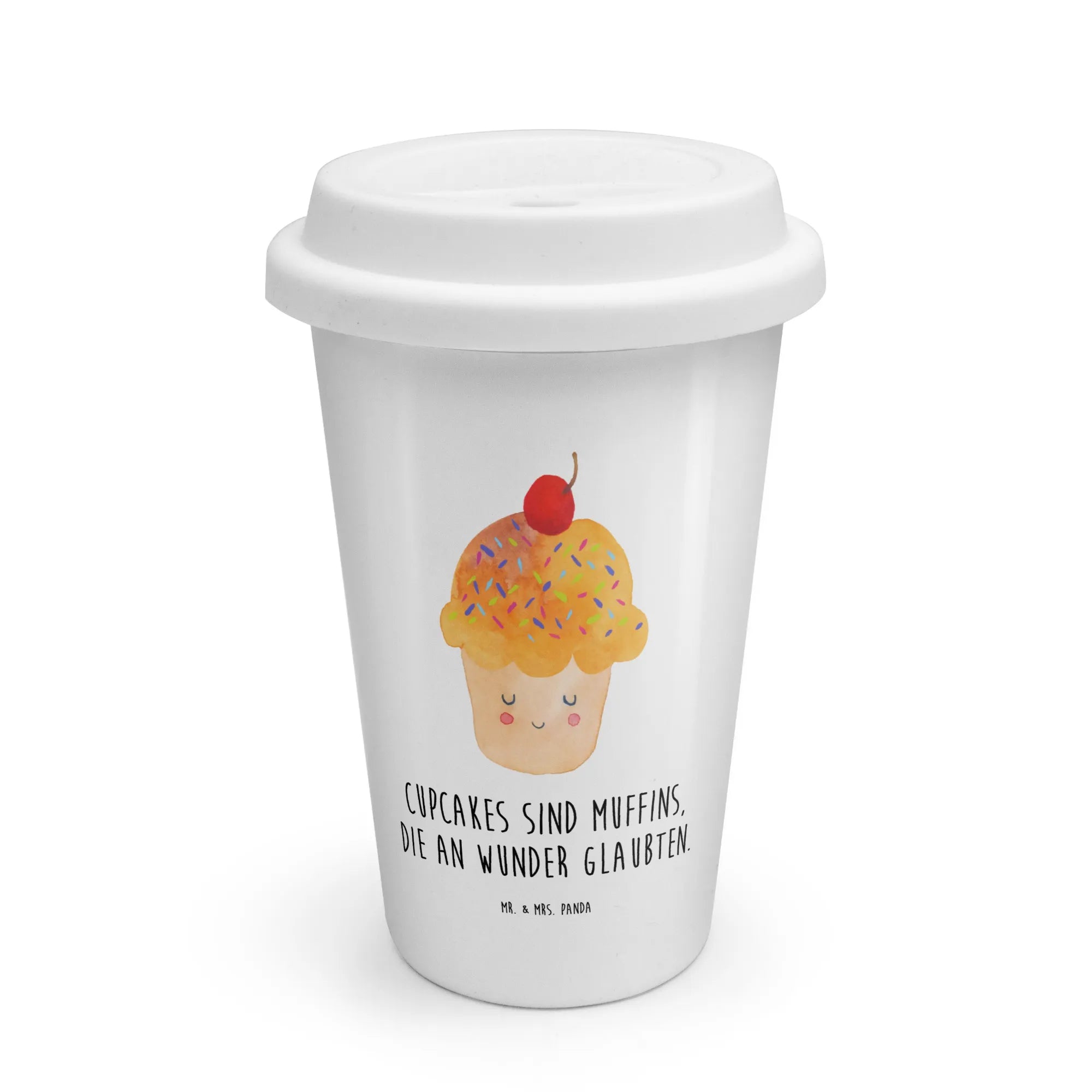 Dein täglicher Gute-Laune-Becher: Unser Coffee To Go Becher von Mr. & Mrs. Panda aus der Small World Kollektion bringt Dir mit dem süßen Cupcake-Motiv ein Lächeln in den Alltag. Der stolze Cupcake mit bunten Streuseln und Herzchen ist ein echter Hingucker und macht jeden Kaffee-Moment ein bisschen magischer. ☕🧁