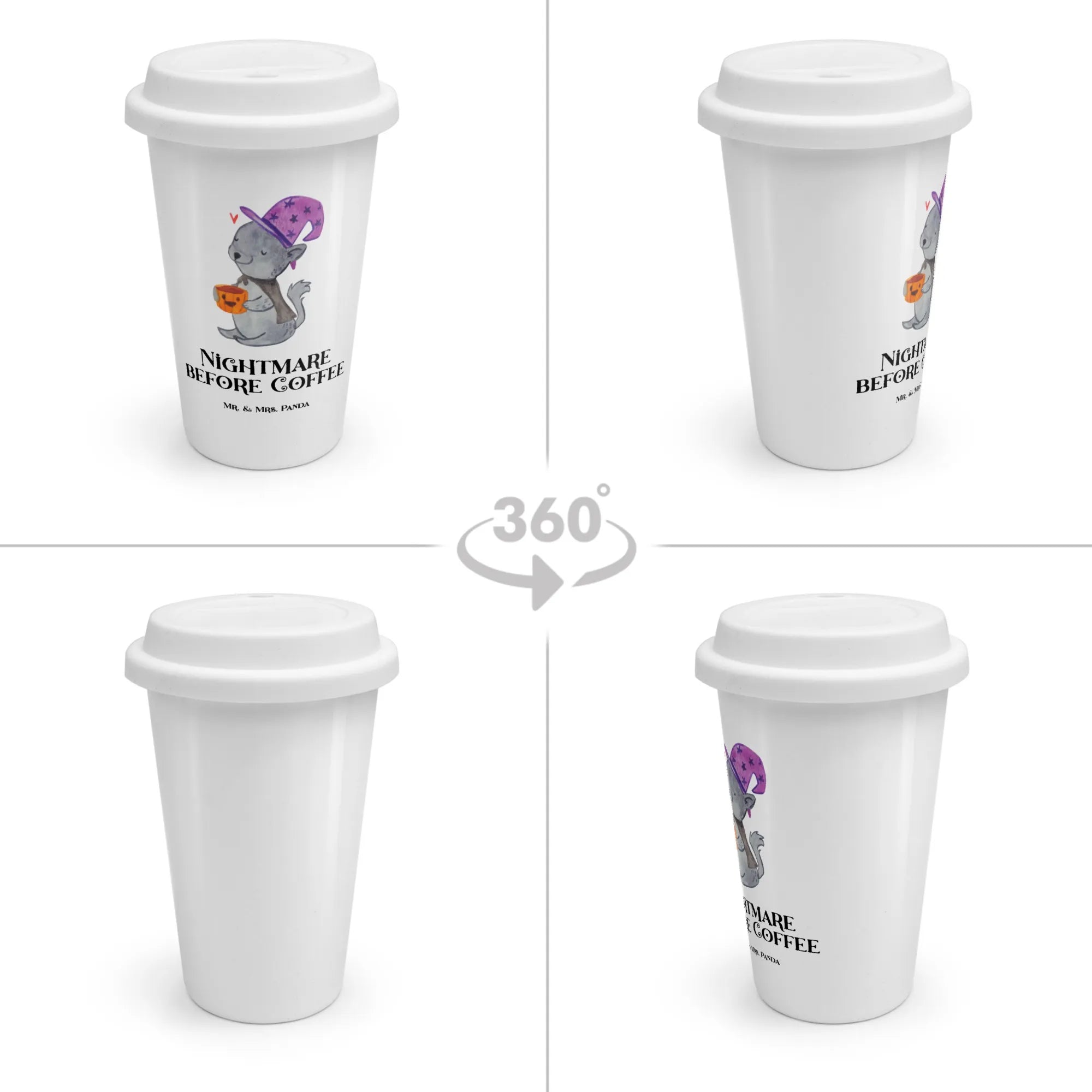 Du bist auf der Suche nach dem perfekten Geschenk für Kaffeeliebhaber und Halloween-Fans? Dann ist unser wunderschöner To Go Becher 'Kater Kaffee' von Mr. & Mrs. Panda genau das Richtige für dich! Mit einem brillanten Fotodruck, der einen frechen Hexenkater mit seinem Kürbis-Kaffeebecher zeigt, begleitet er dich auf magischen Kaffeepausen und sorgt für fröhliche Momente. Der glückliche Blick des Katers, der stolz sein Hexenkostüm trägt, zaubert ein Lächeln ins Gesicht. Deine Kaffeepause wird mit diesem einzigartigen Thermobecher zum Erlebnis, egal ob beim Spaziergang, im Büro oder zu Hause.