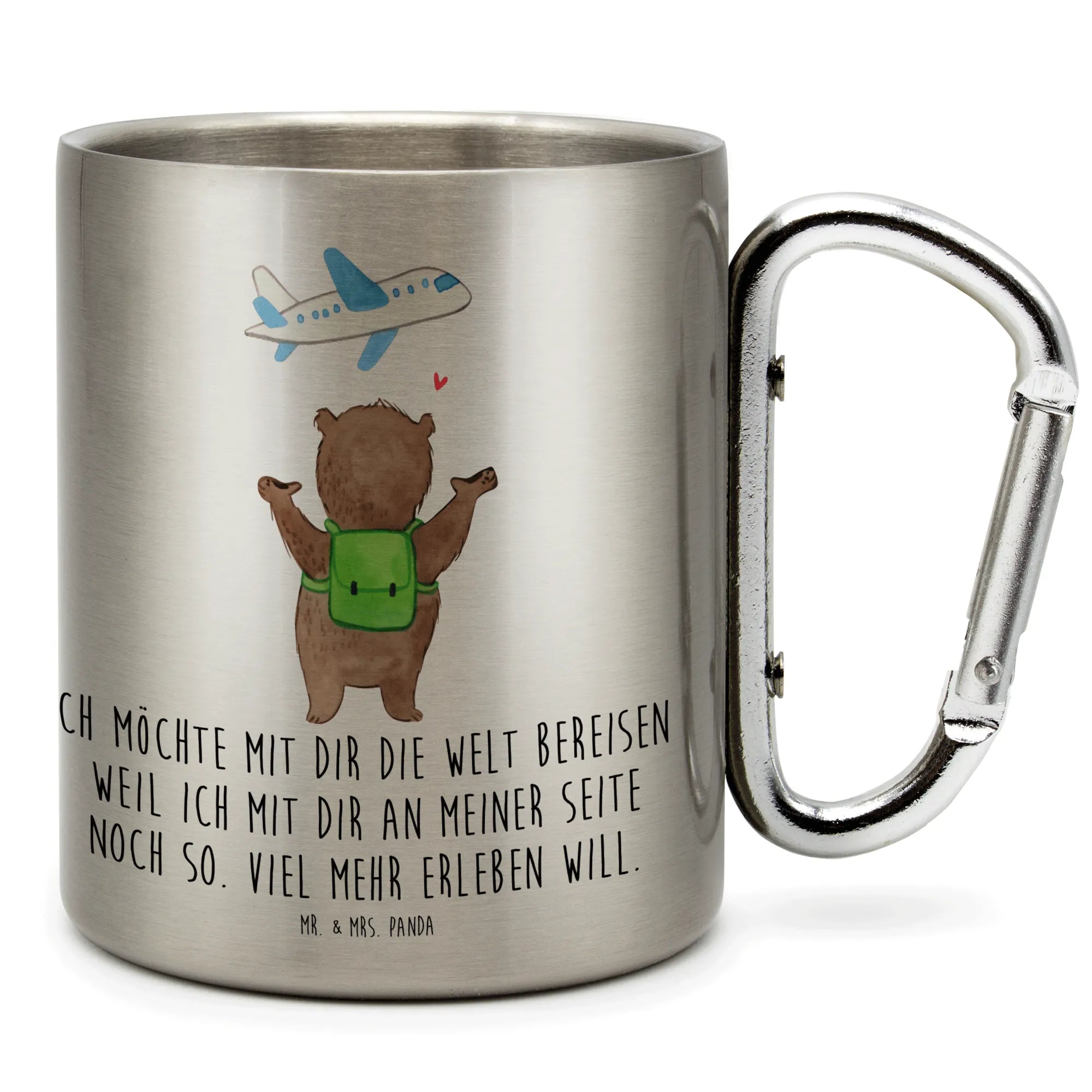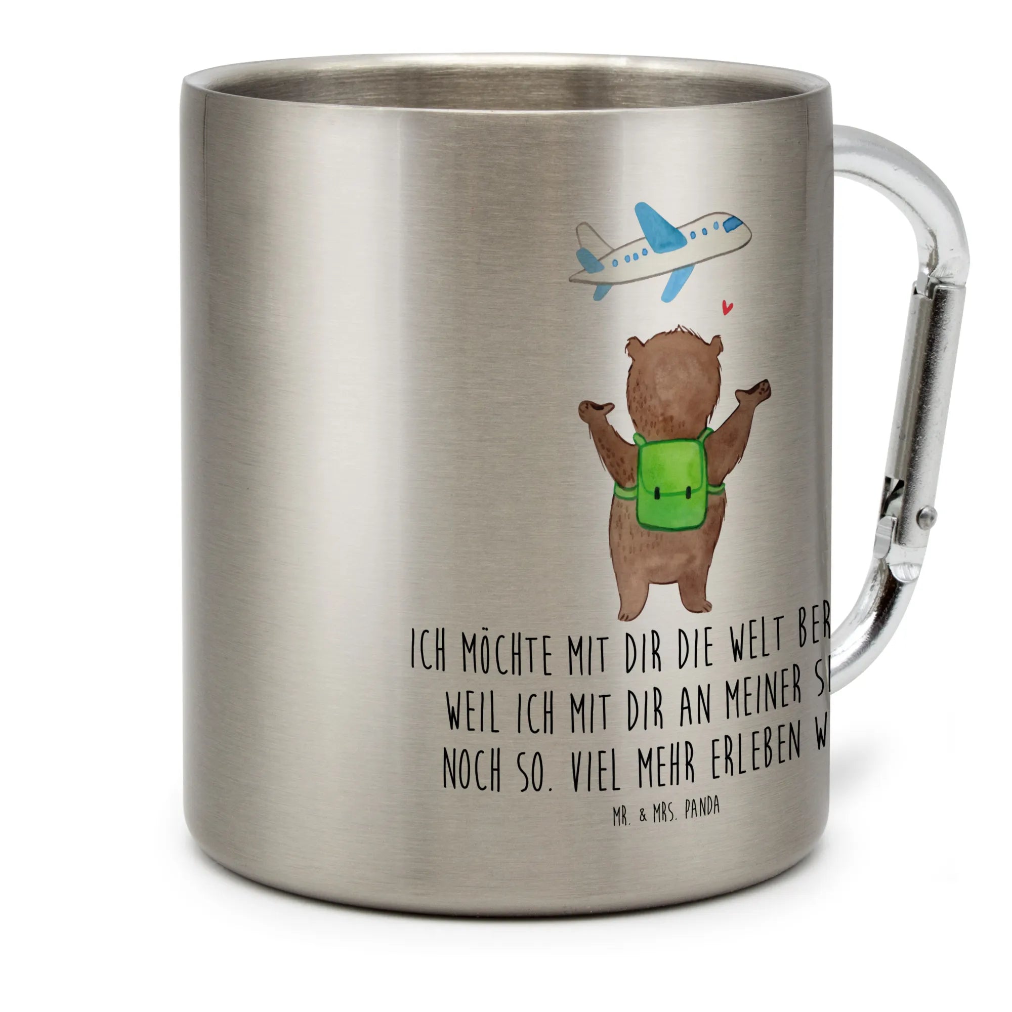 Suchst du nach dem perfekten Geschenk für deine Liebsten? Dann ist der Edelstahlbecher mit dem süßen Bär im Flugzeug-Motiv von Mr. & Mrs. Panda genau das Richtige für dich! Mit seinem einzigartigen Design und dem herzlichen Slogan "Ich möchte mit dir die Welt bereisen, weil ich mit dir an meiner Seite noch so viel mehr erleben will" bringt dieser Becher nicht nur Freude, sondern auch eine Portion Romantik in jeden Outdoor-Ausflug.