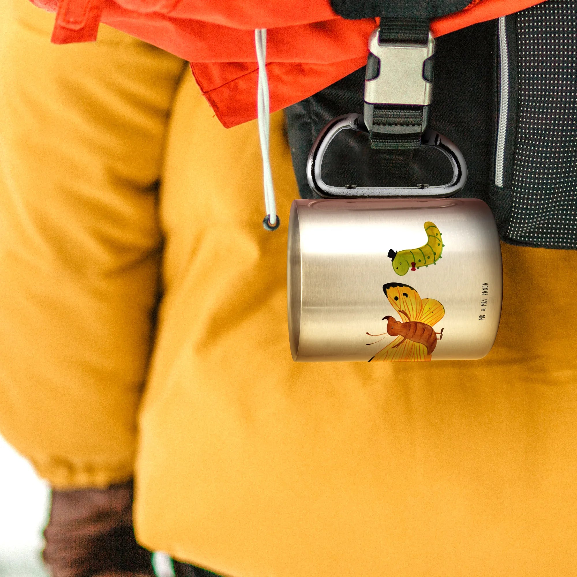 Kubek ze stali nierdzewnej gąsienica motyl - z napisem