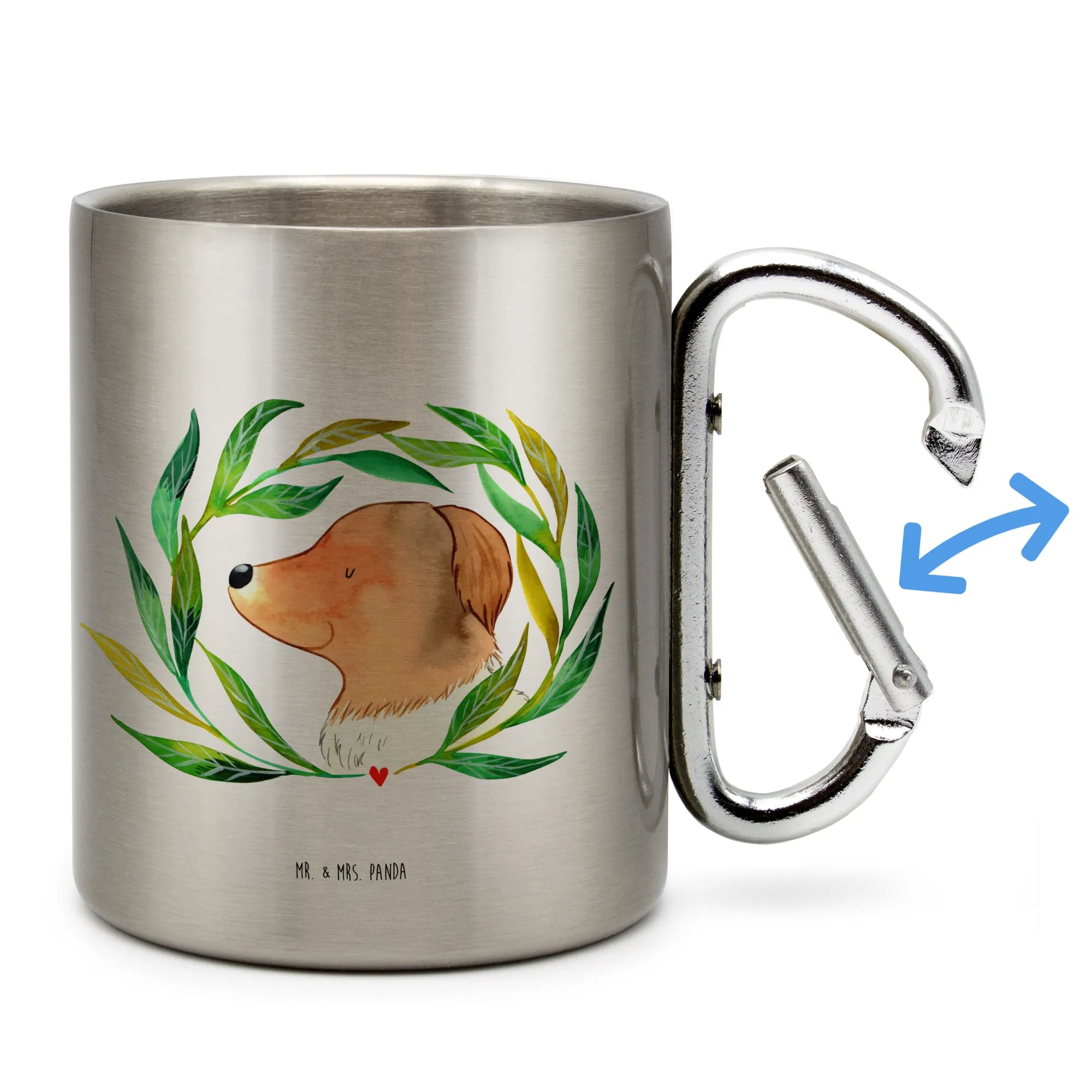 Kubek ze stali nierdzewnej pies kwiaty - z napisem
